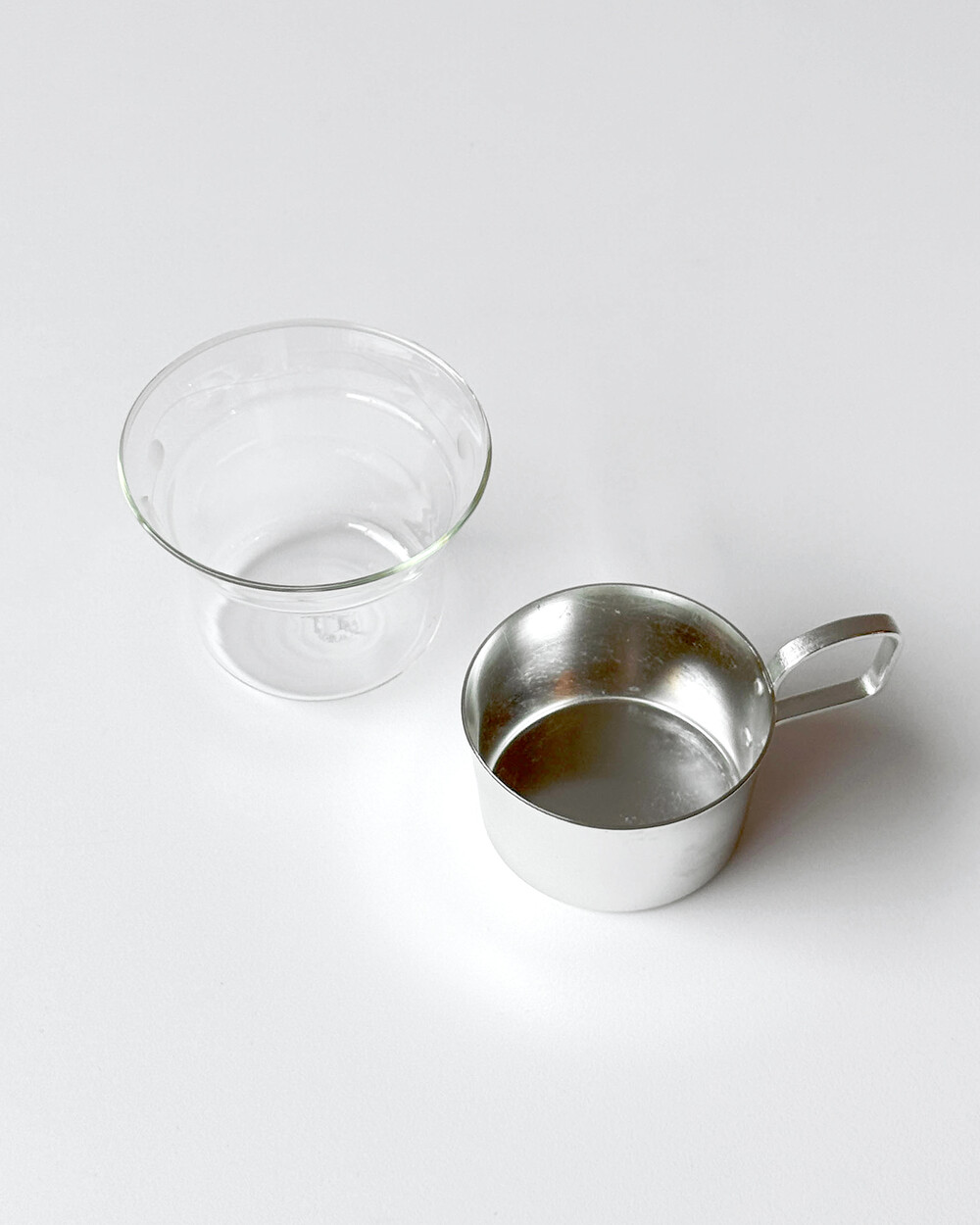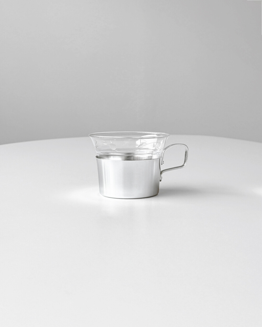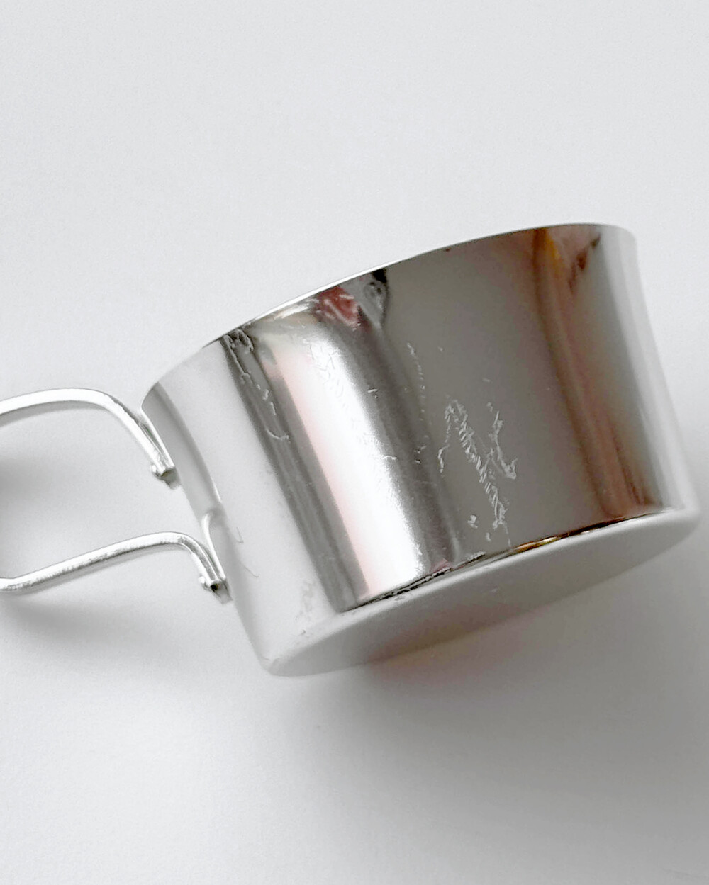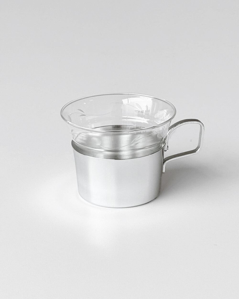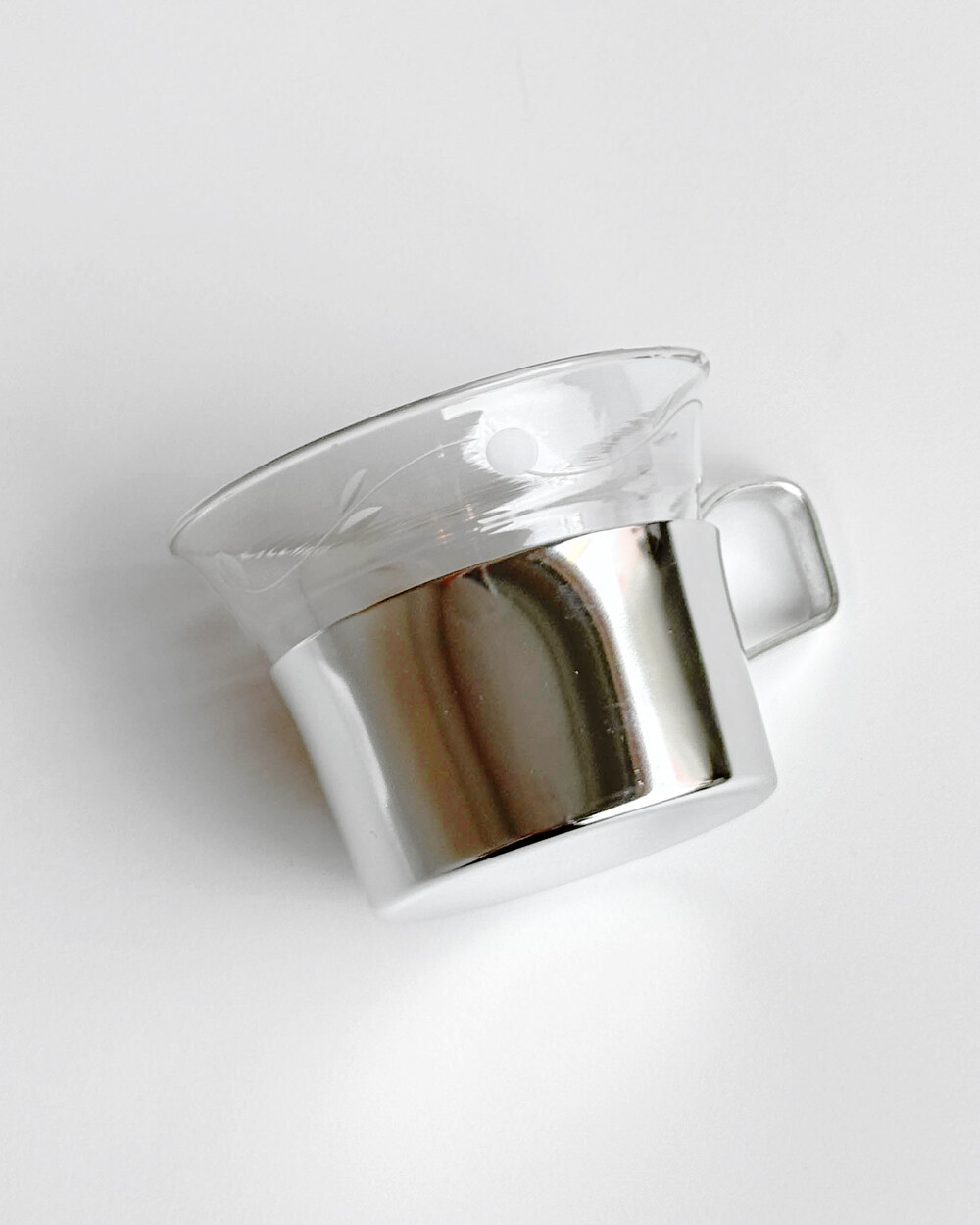 핸들이 더해진 컵 홀더는 오랜 시간 깨끗한 광택과 은빛을 유지할 수 있는 가볍고 견고한 메탈로 만들어졌습니다.