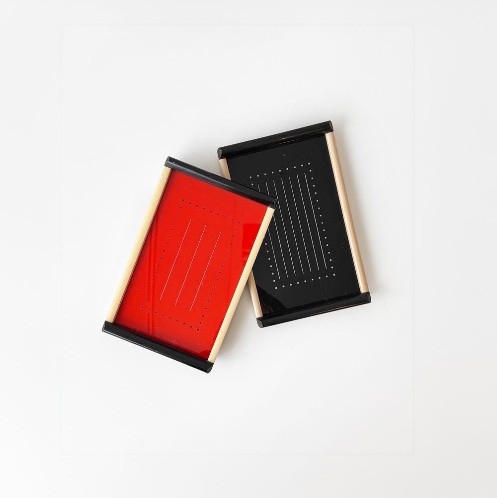 심플한 도트&라인 패턴이 실크스크린으로 장식된 서빙 트레이로 1950~60년대 서독일(DDR)의 가구회사 Rufra Wasungen에서 제작 되었습니다.