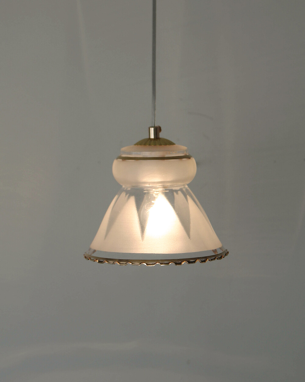1960s French Frosted Glass & Gold Ruffle Pendant Lamp