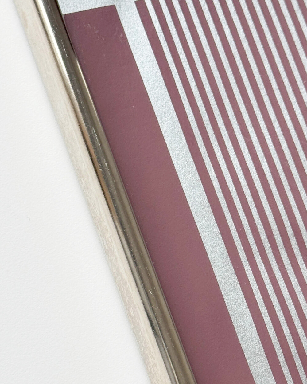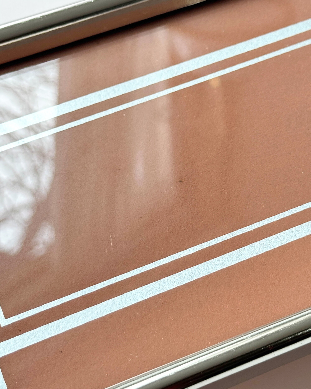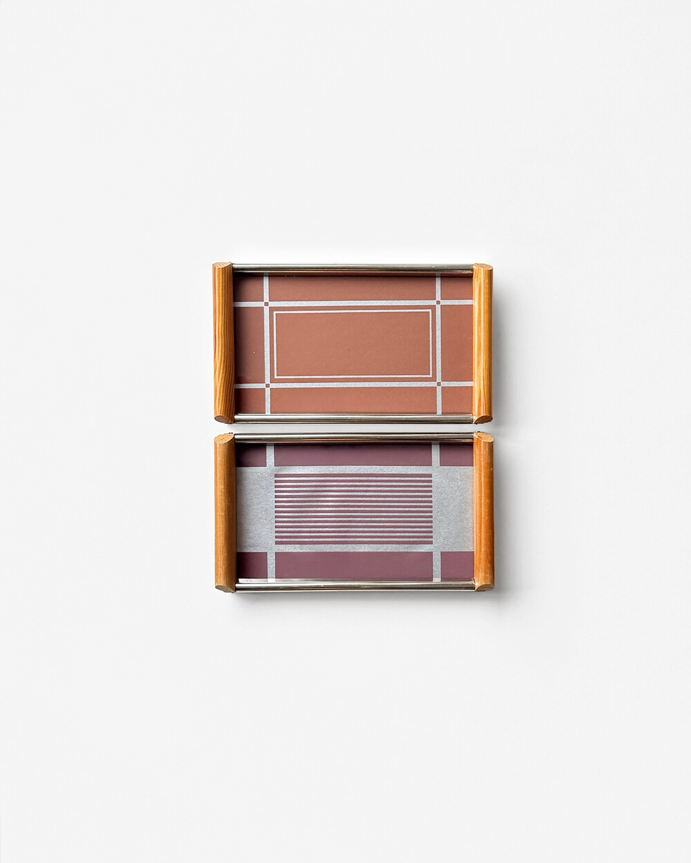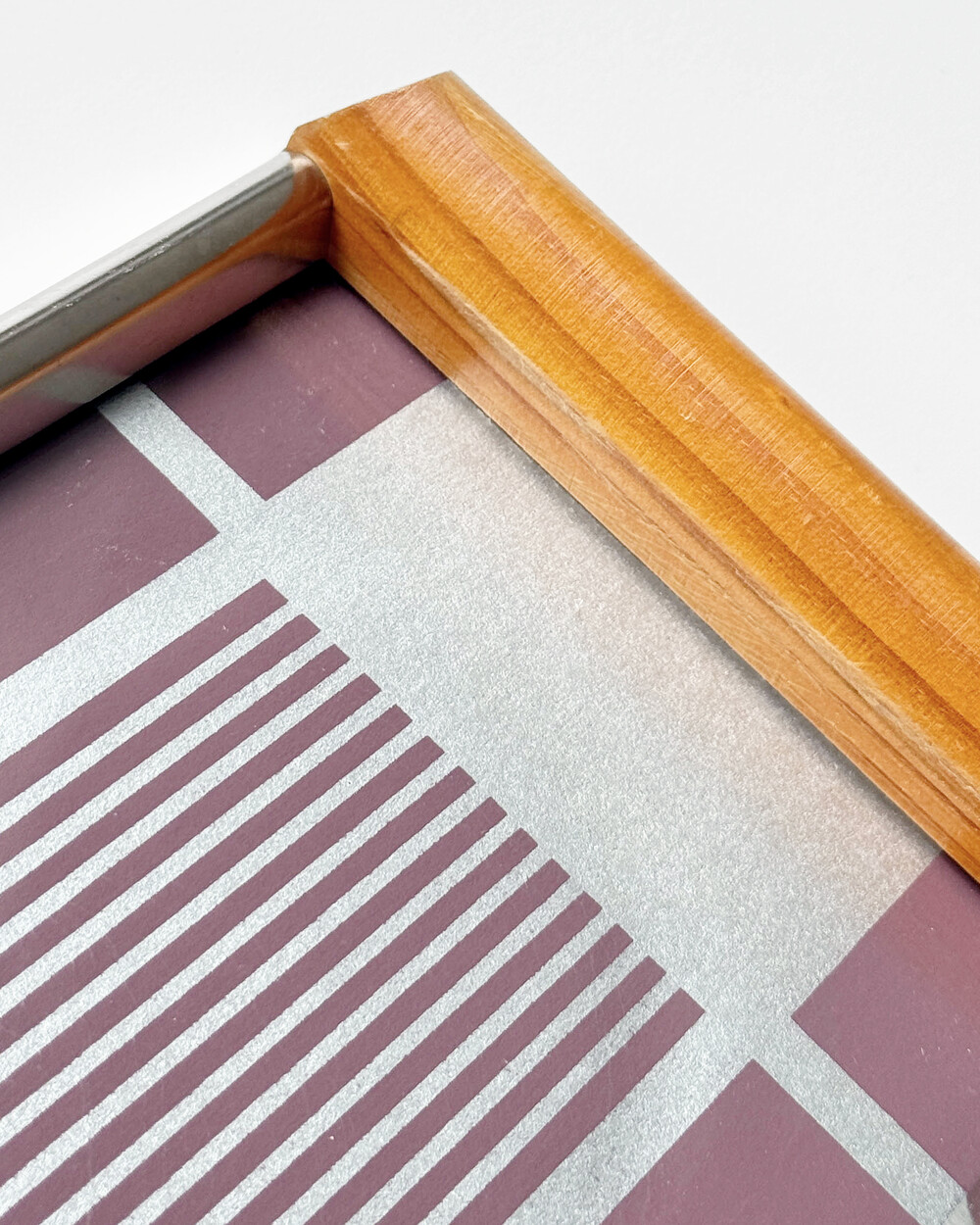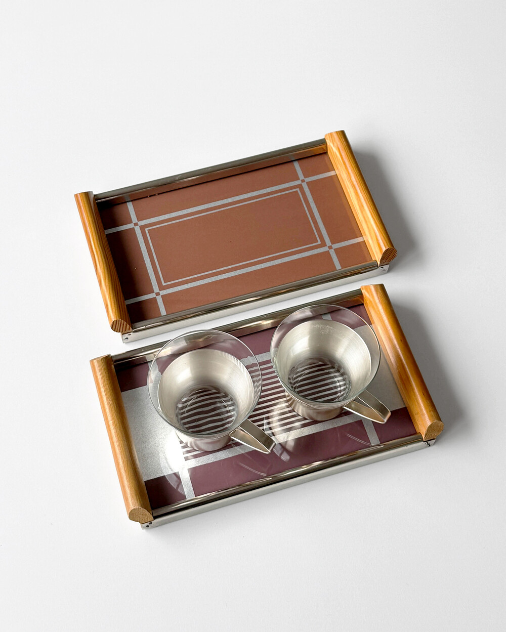 심플한 격자 패턴이 실크스크린 기법으로 장식된 서빙 트레이입니다. 1960년대 동독의 국영 가구 회사 VEB Bürstenwerke Schönheide에서 제작되었으며, 기능적인 구조와 절제된 장식성이 균형 있게 조화되어 있습니다.