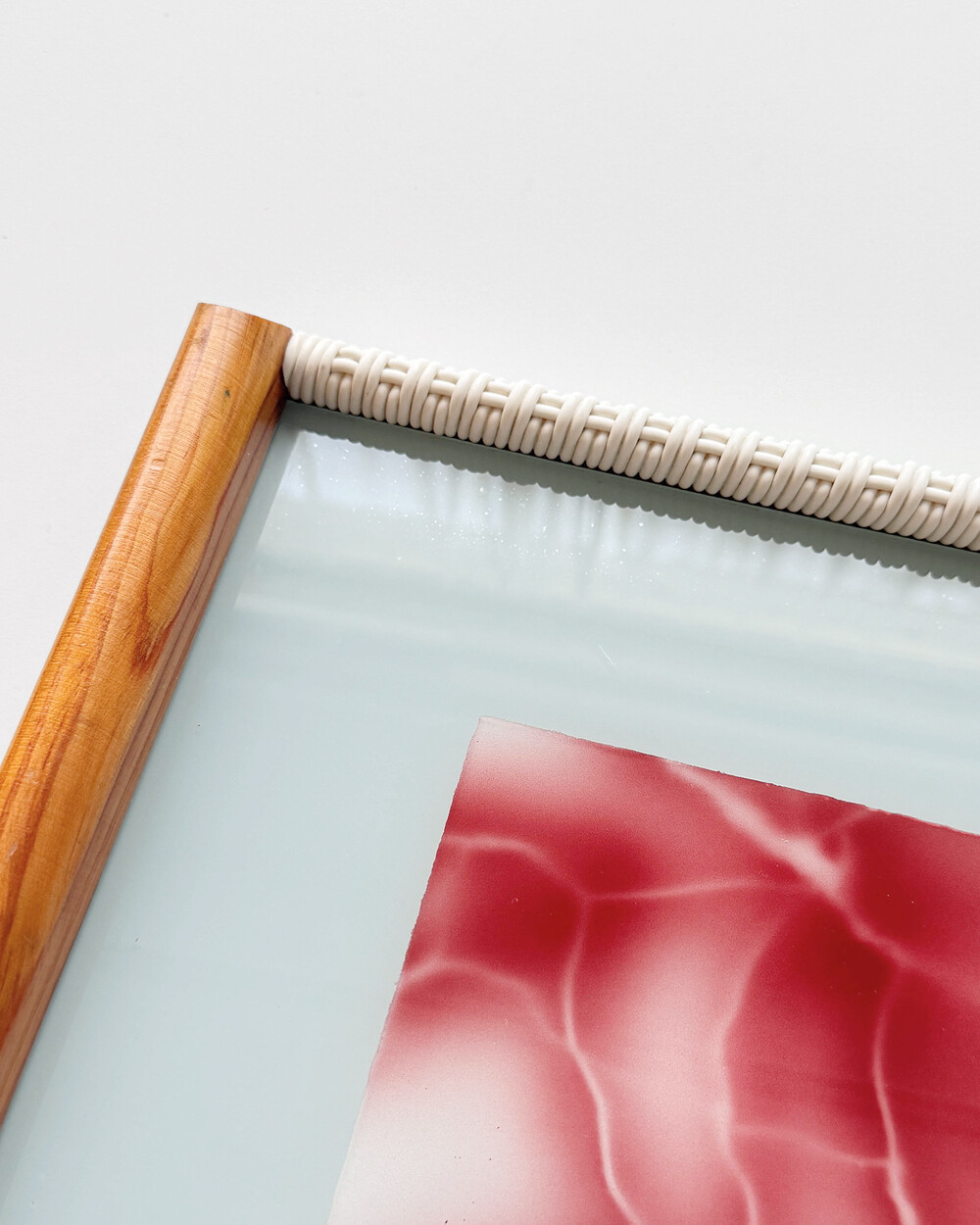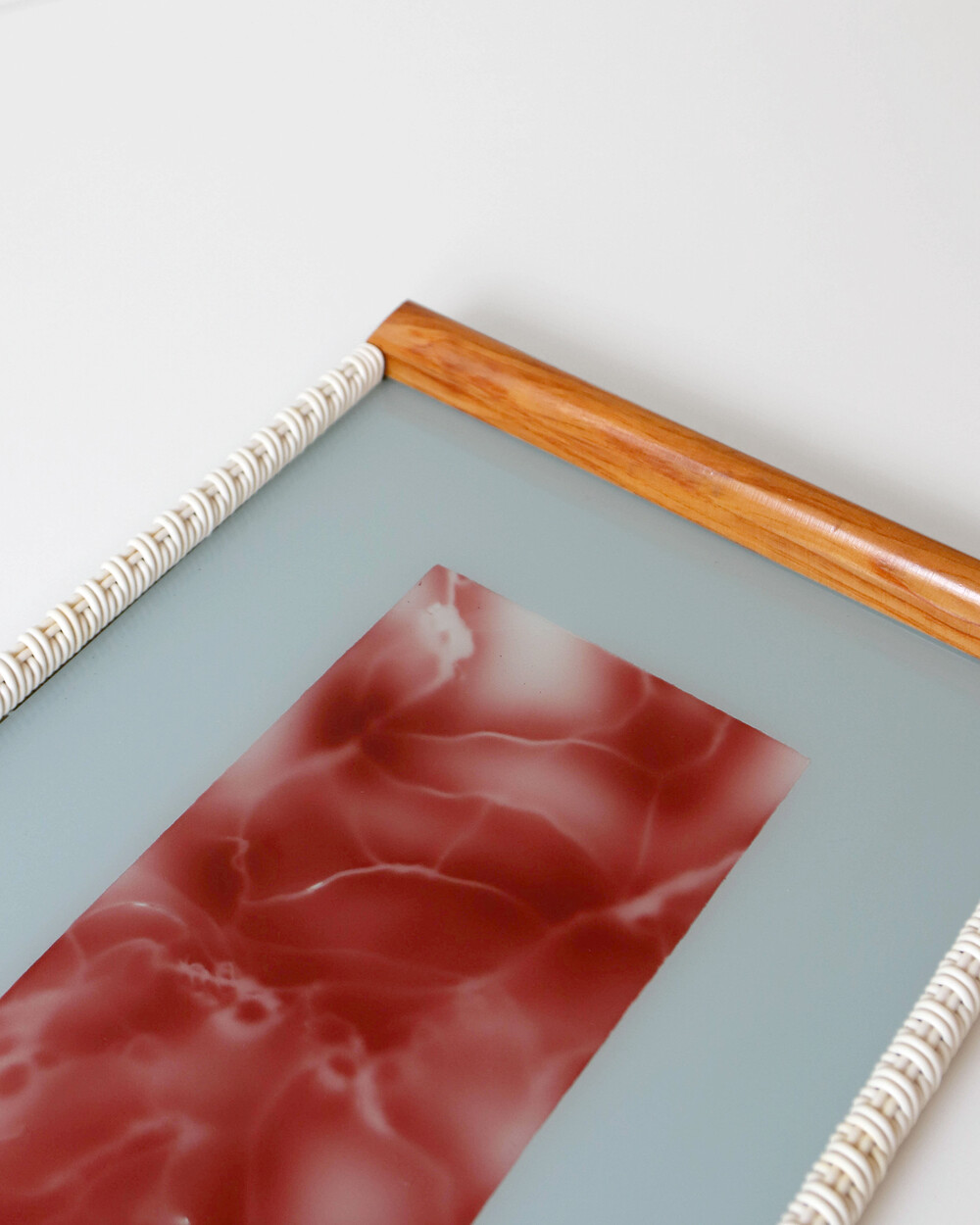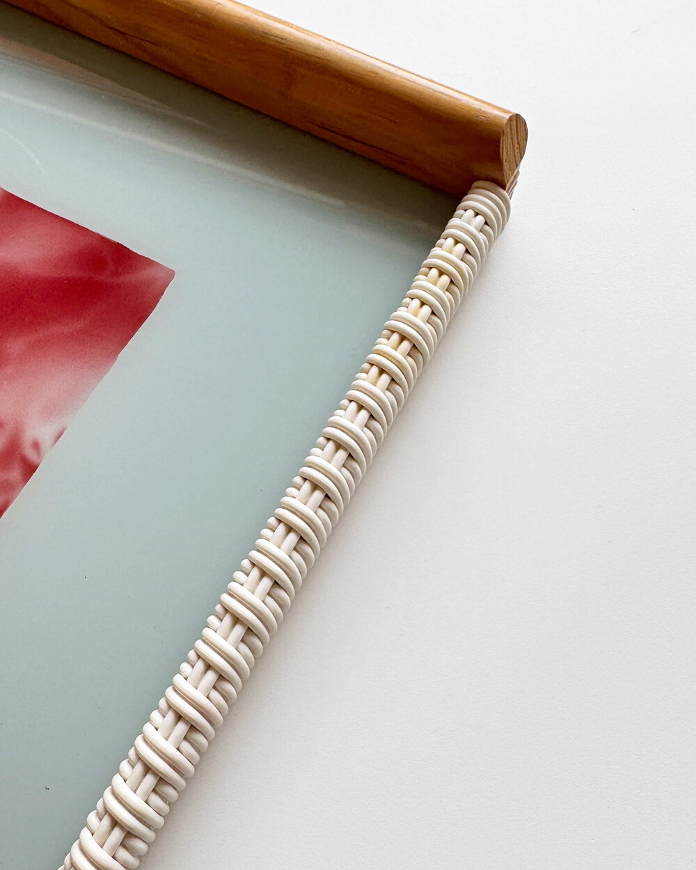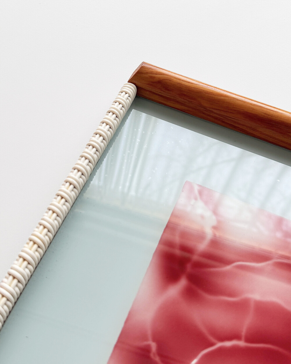위빙 장식이 더해진 우드 프레임과 글라스가 조화를 이루고 있으며, 여유로운 크기로 다양한 오브제와 함께 활용할 수 있습니다.