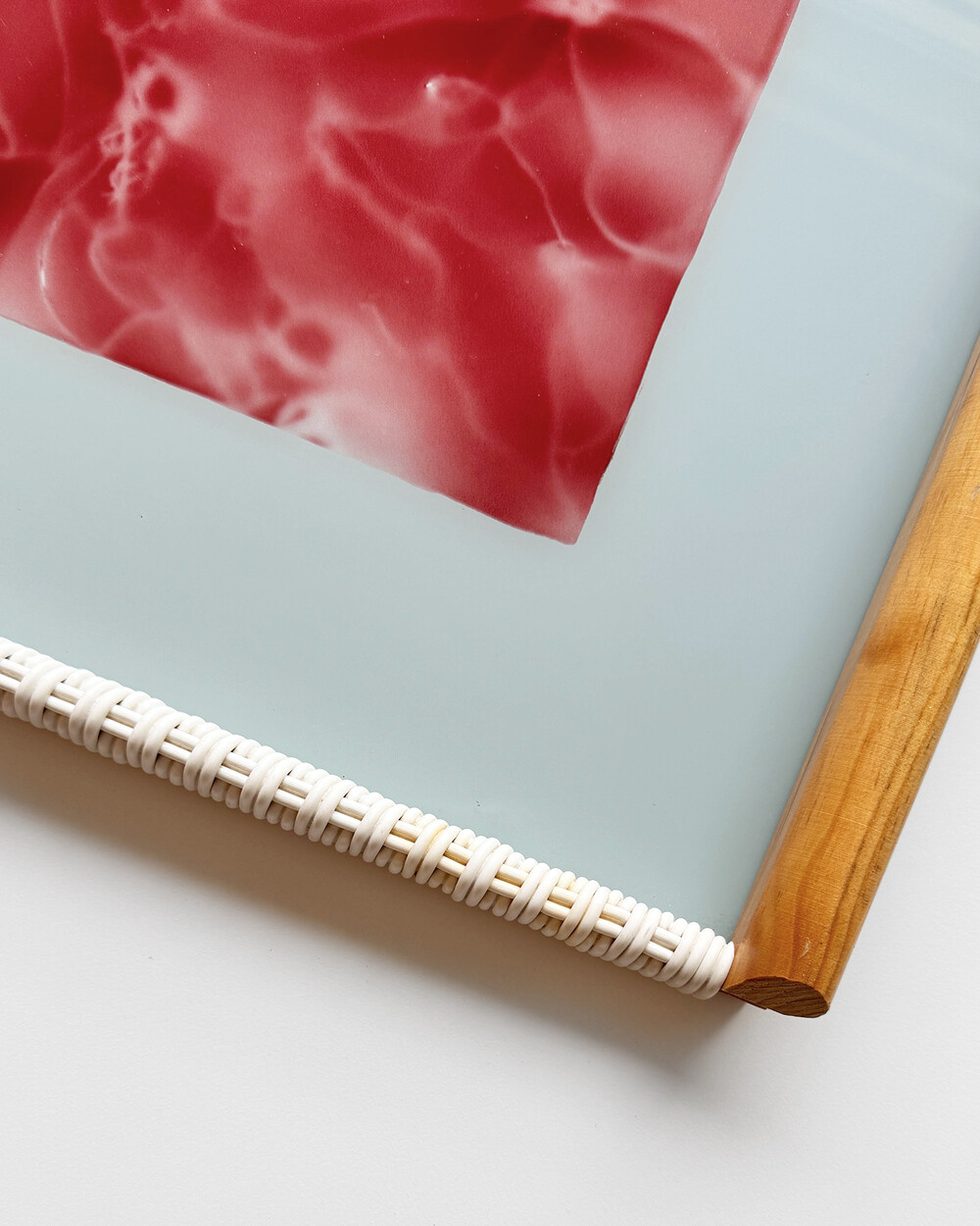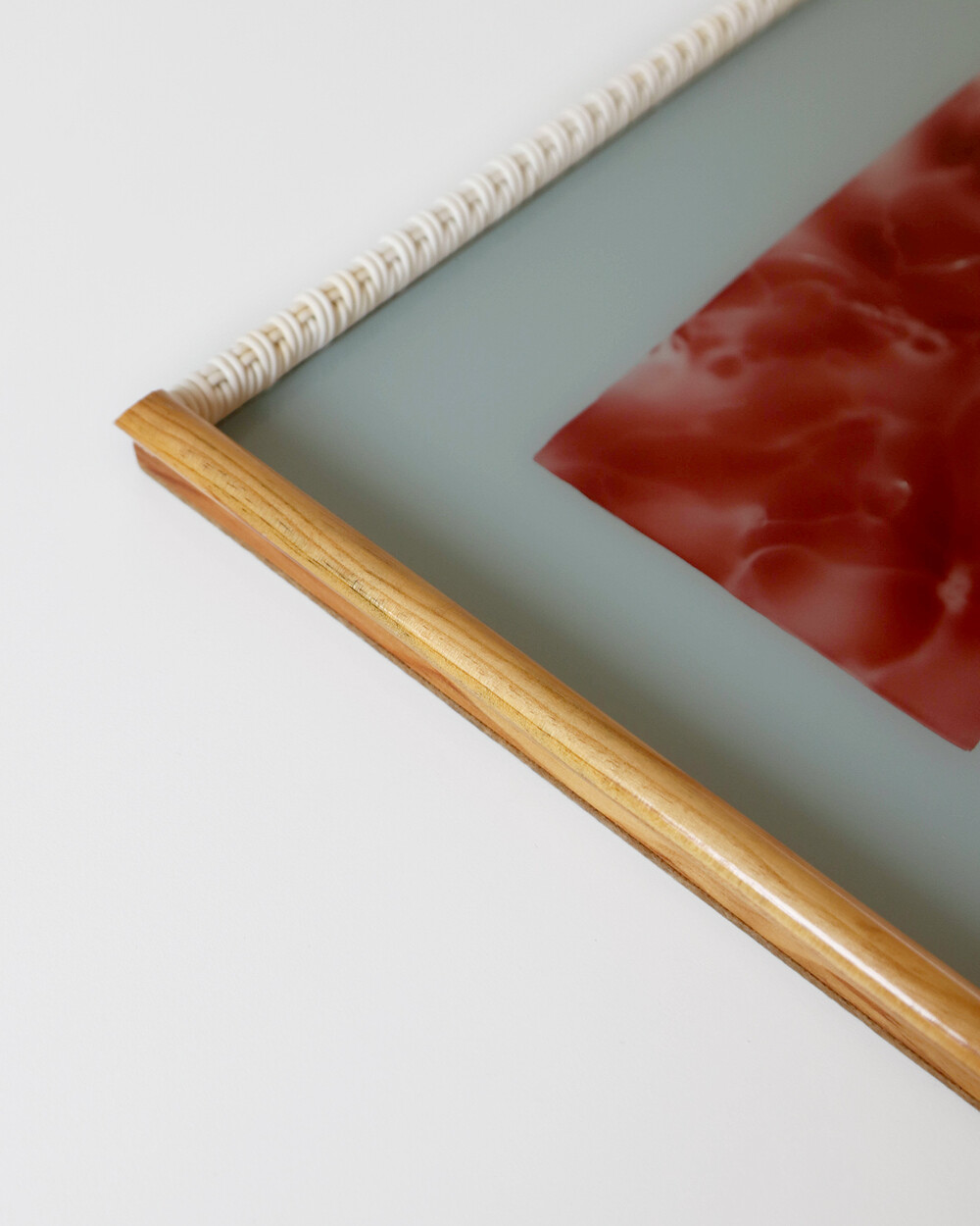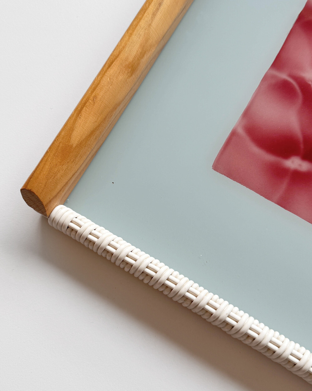 위빙 장식이 더해진 우드 프레임과 글라스가 조화를 이루고 있으며, 여유로운 크기로 다양한 오브제와 함께 활용할 수 있습니다.