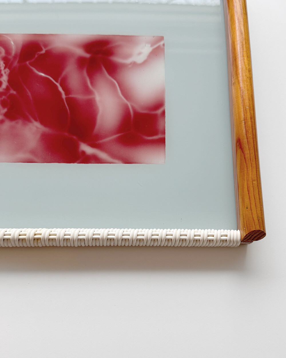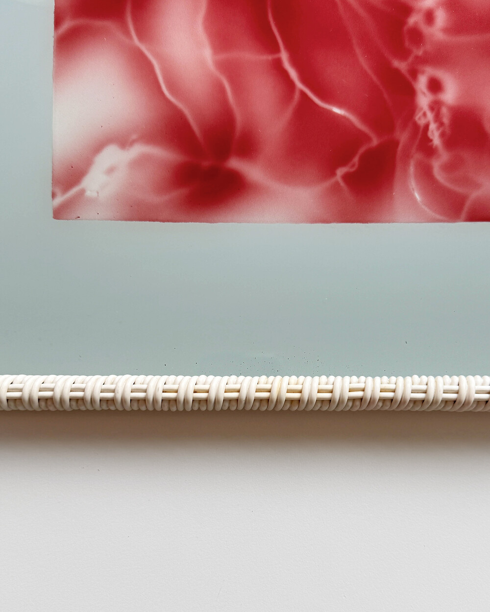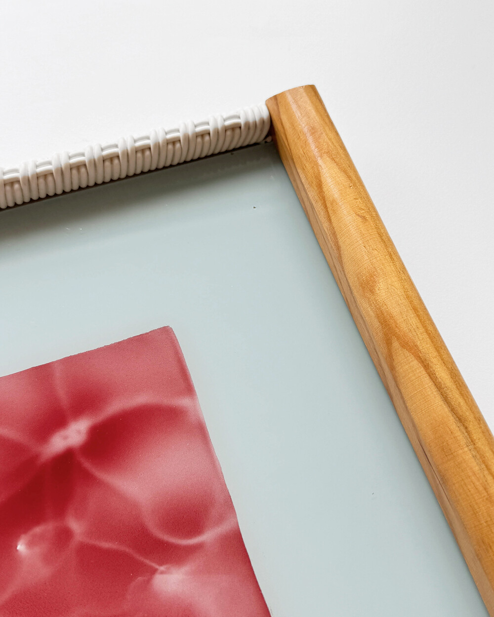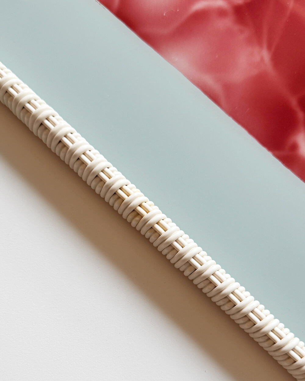 위빙 장식이 더해진 우드 프레임과 글라스가 조화를 이루고 있으며, 여유로운 크기로 다양한 오브제와 함께 활용할 수 있습니다.