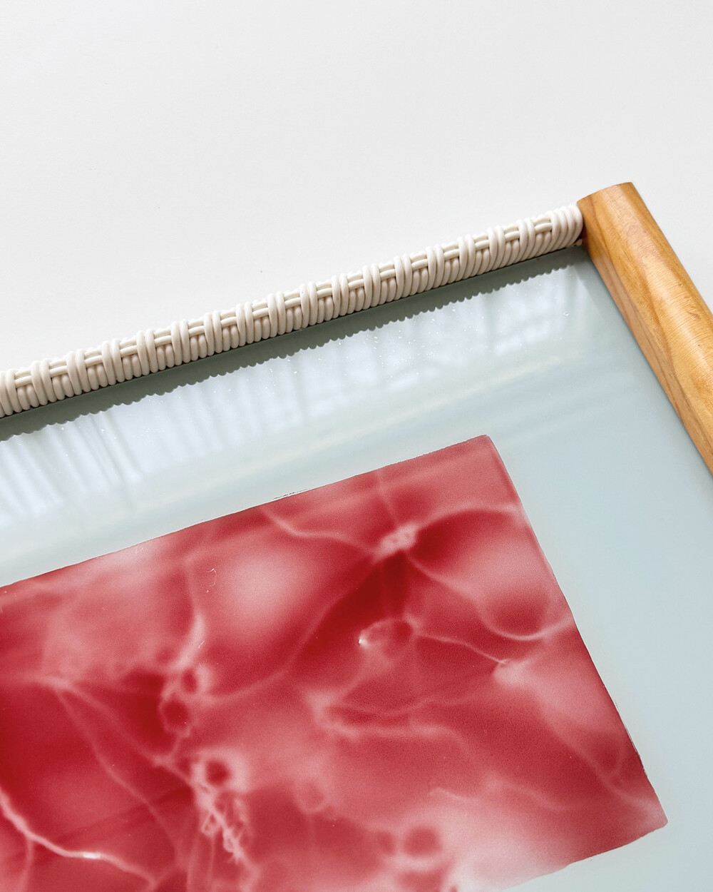 소개 드렸던 트레이 중 가장 큰 크기로 찻잔 세트 2-3개를 함께 놓을 수 있습니다.