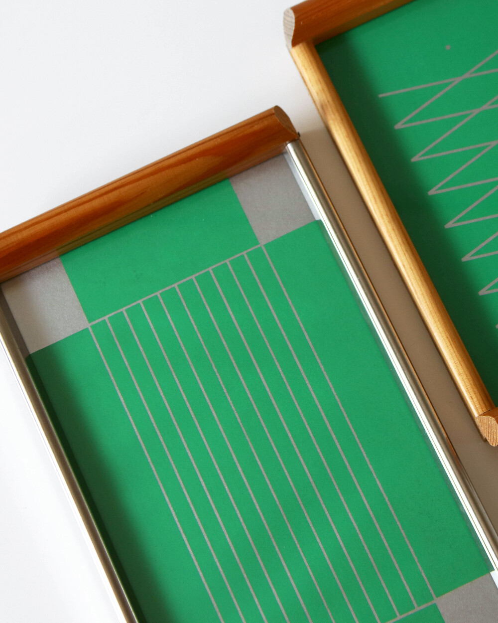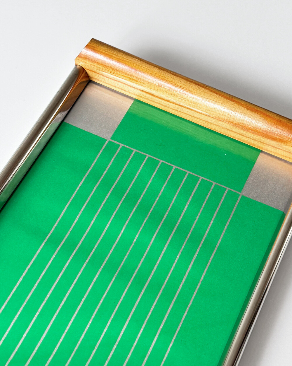 글라스 패널 아래의 실크스크린 판화 장식은 종이 소재로 만들어졌으며, 오랜 시간을 지나며 미세한 굴곡을 가지고 있습니다.