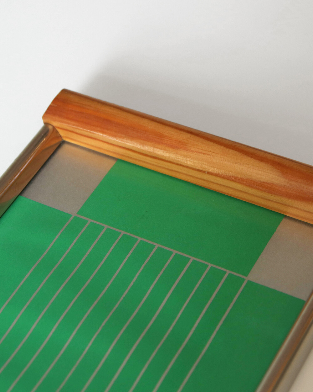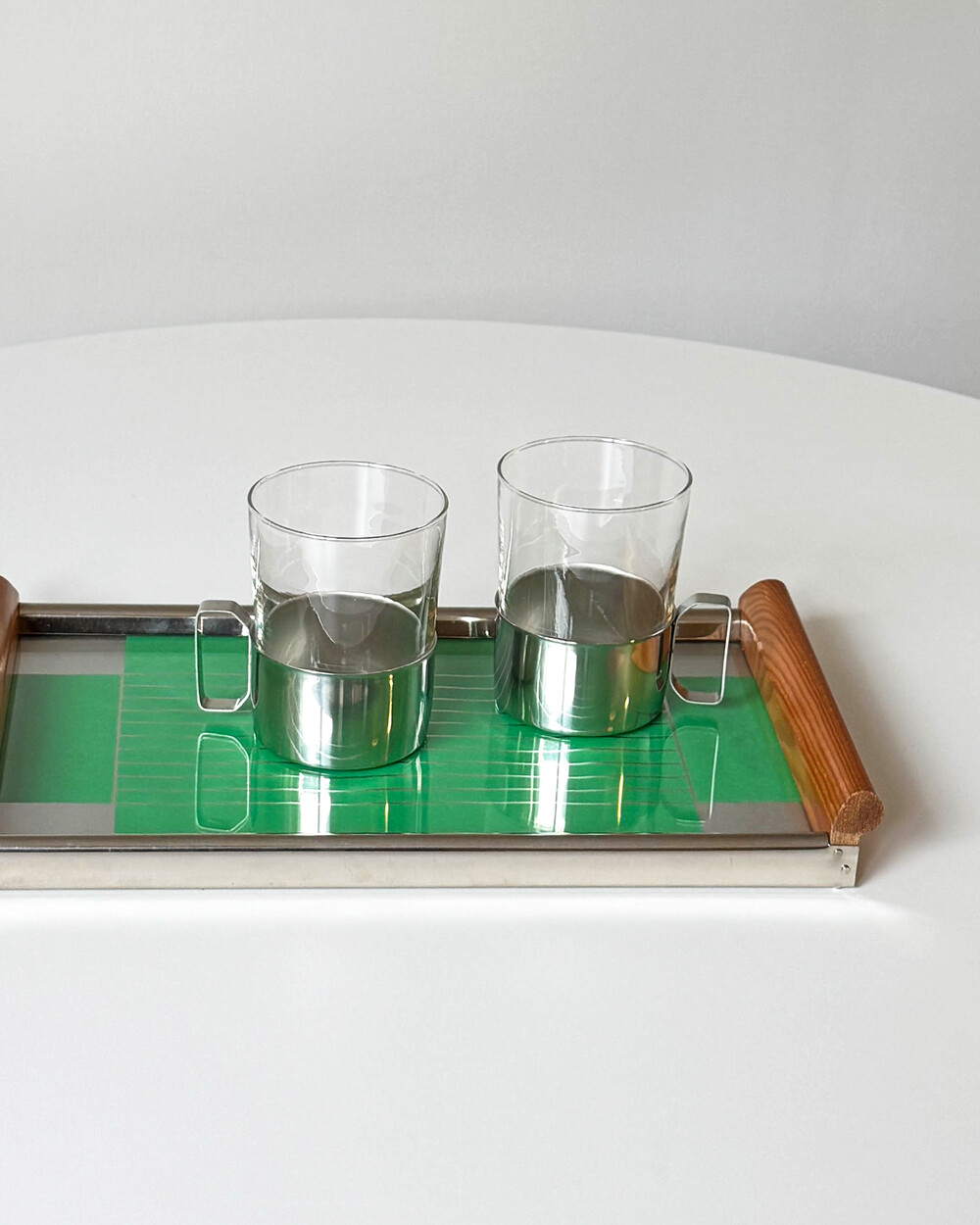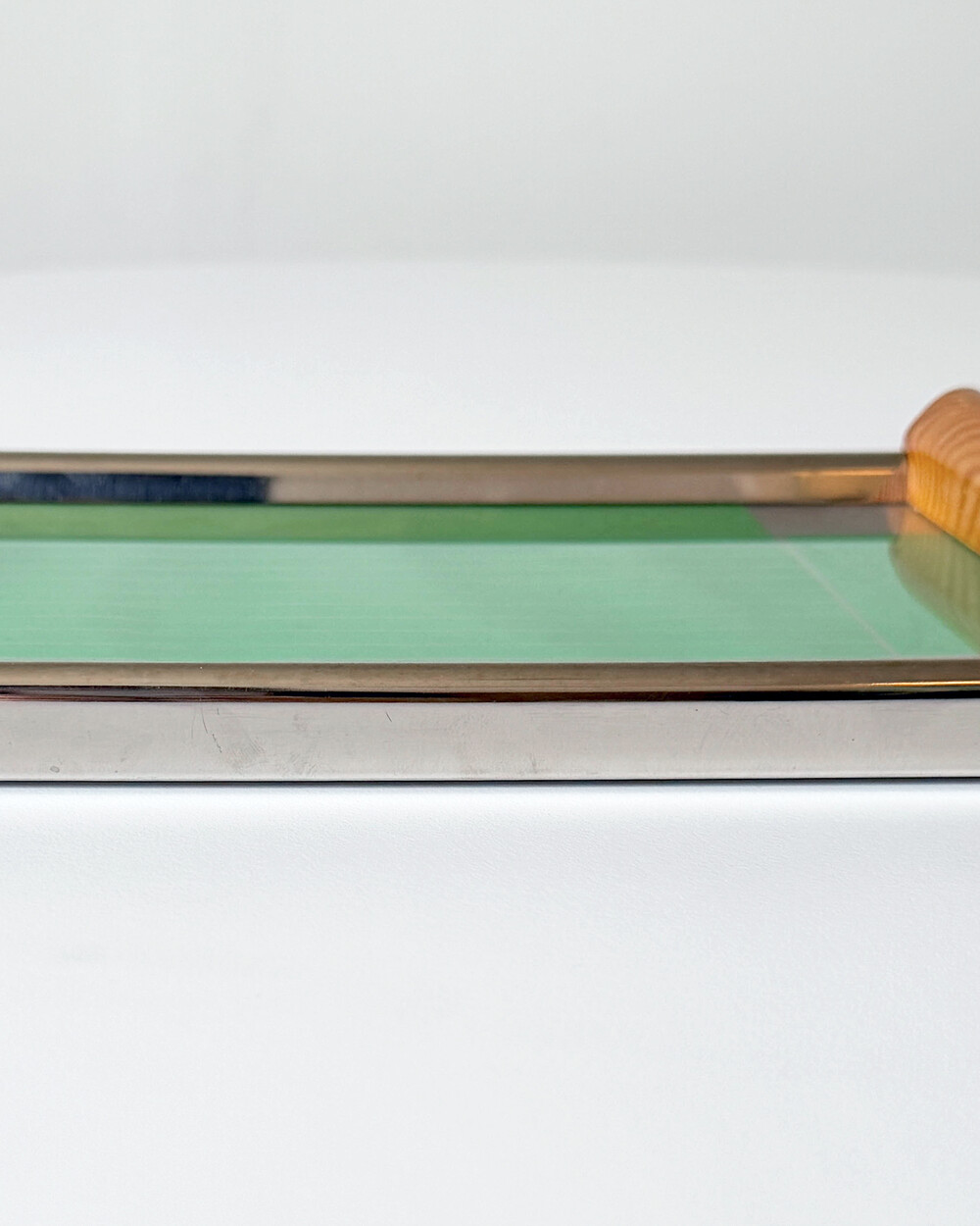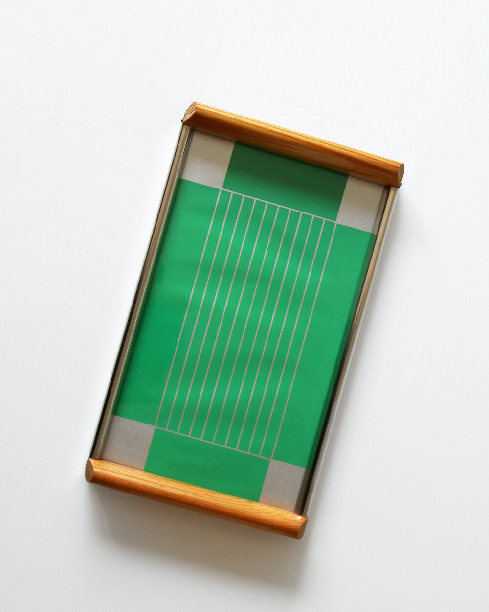 실버&그린 컬러에 심플한 라인 패턴이 포인트로 더해진 장식용 트레이로 1950~60년대 서독일(DDR)의 가구회사 Holzsieb BT Wasungen에서 제작 되었습니다.