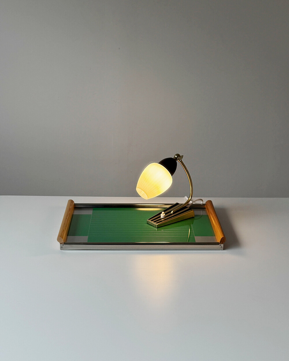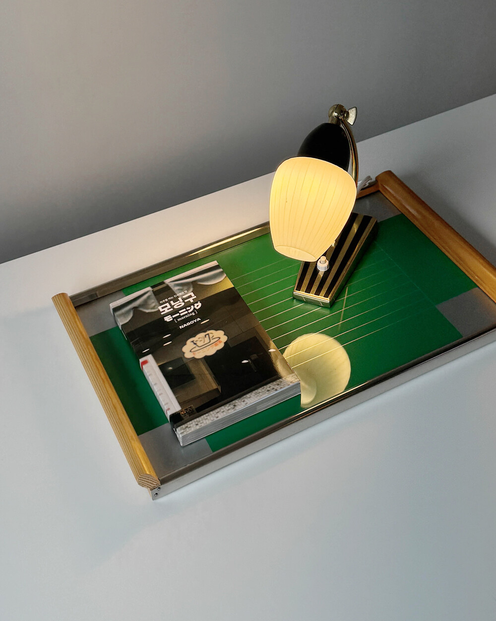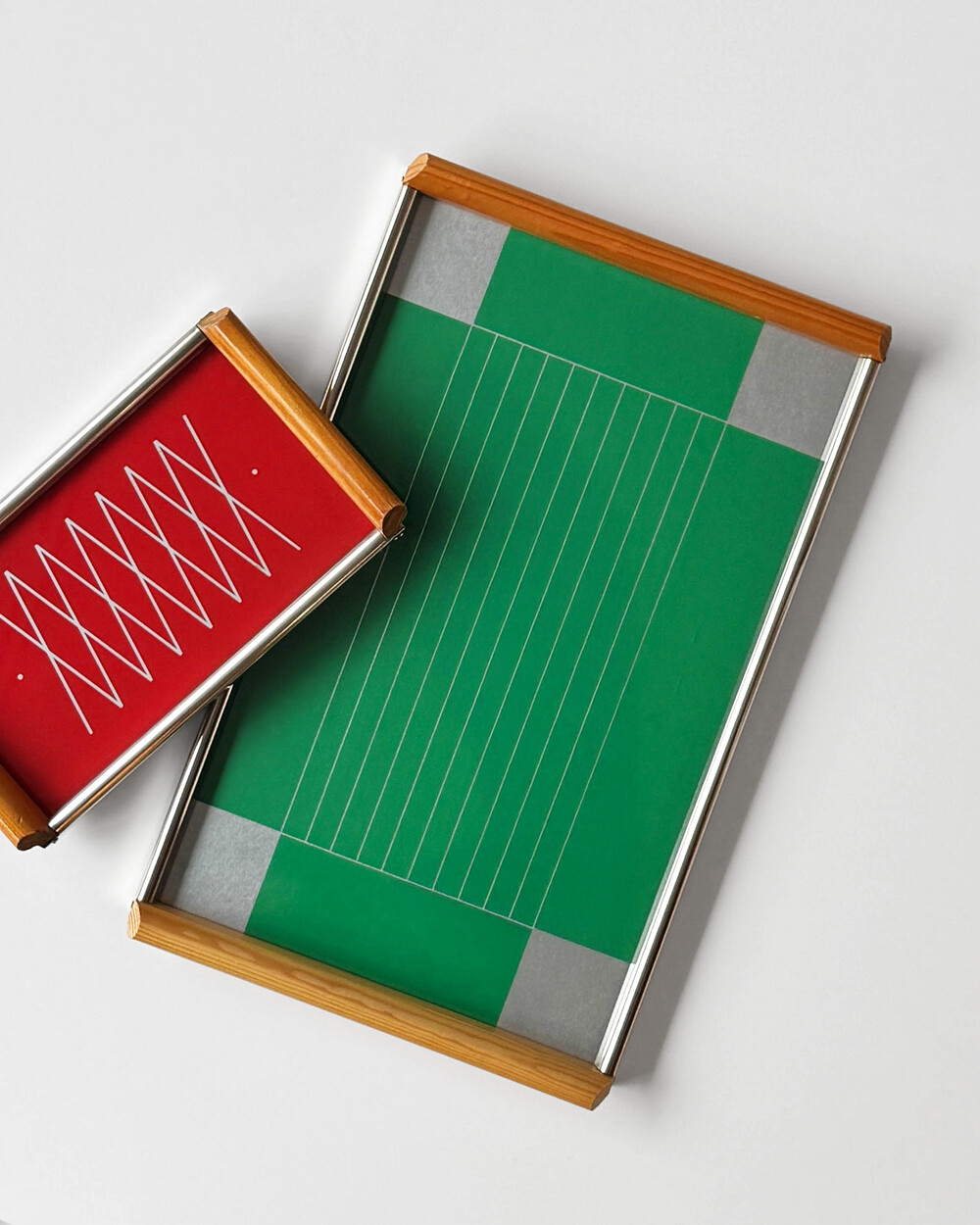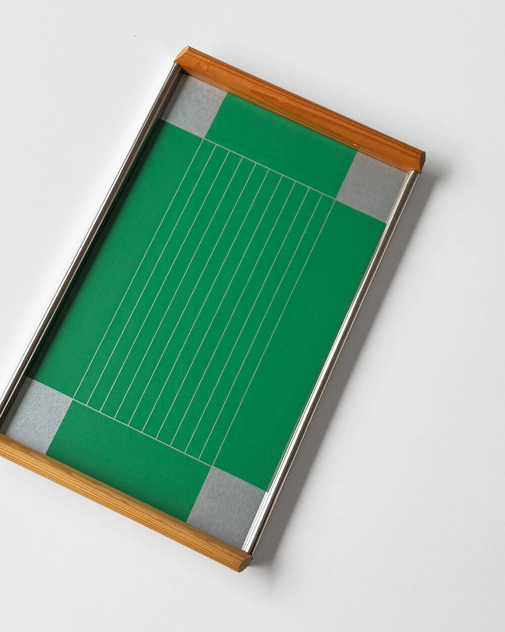 실버&그린 컬러에 심플한 라인 패턴이 더해진 장식용 트레이로 1960년대 서독일(DDR)의 가구회사에서 제작 되었습니다.