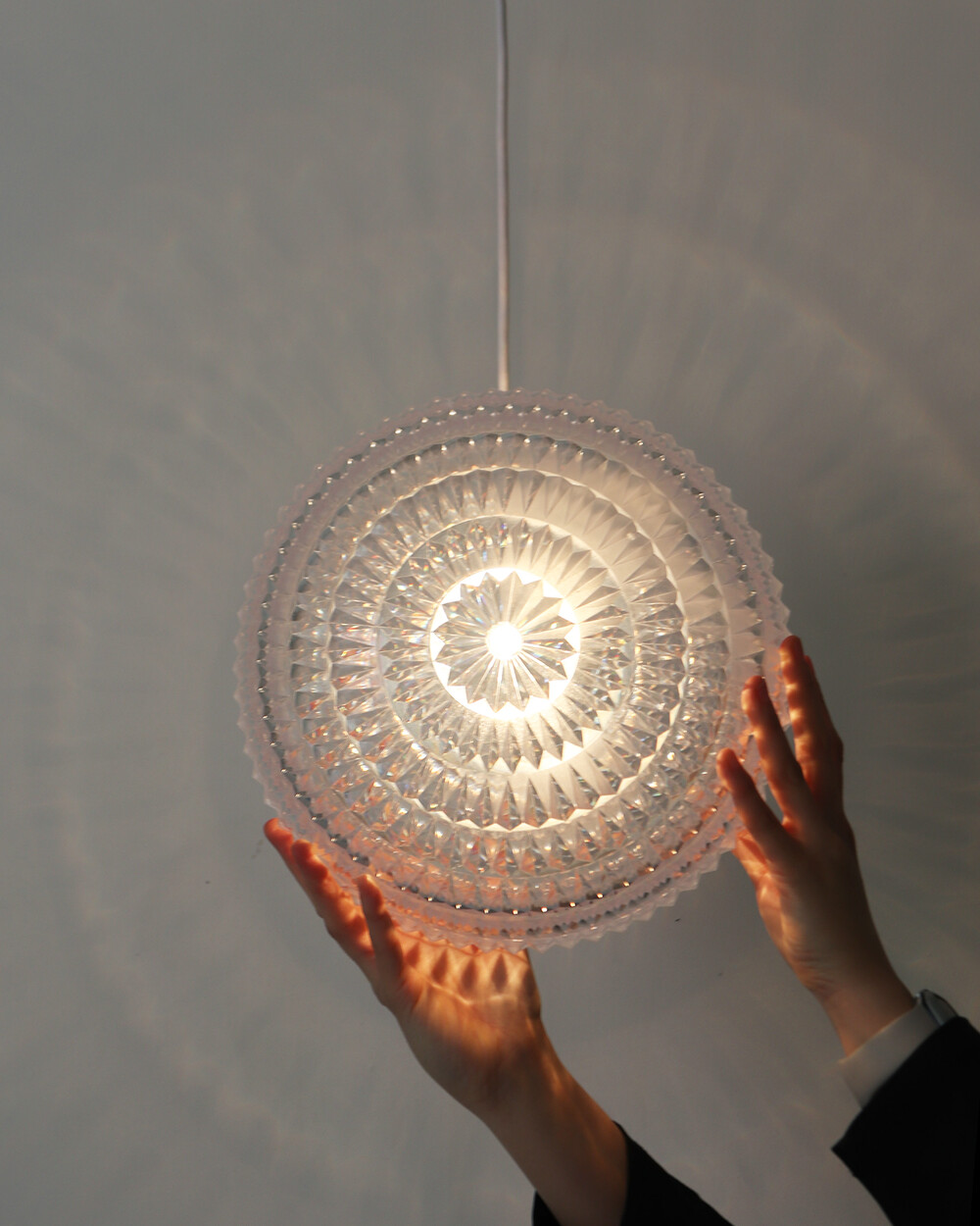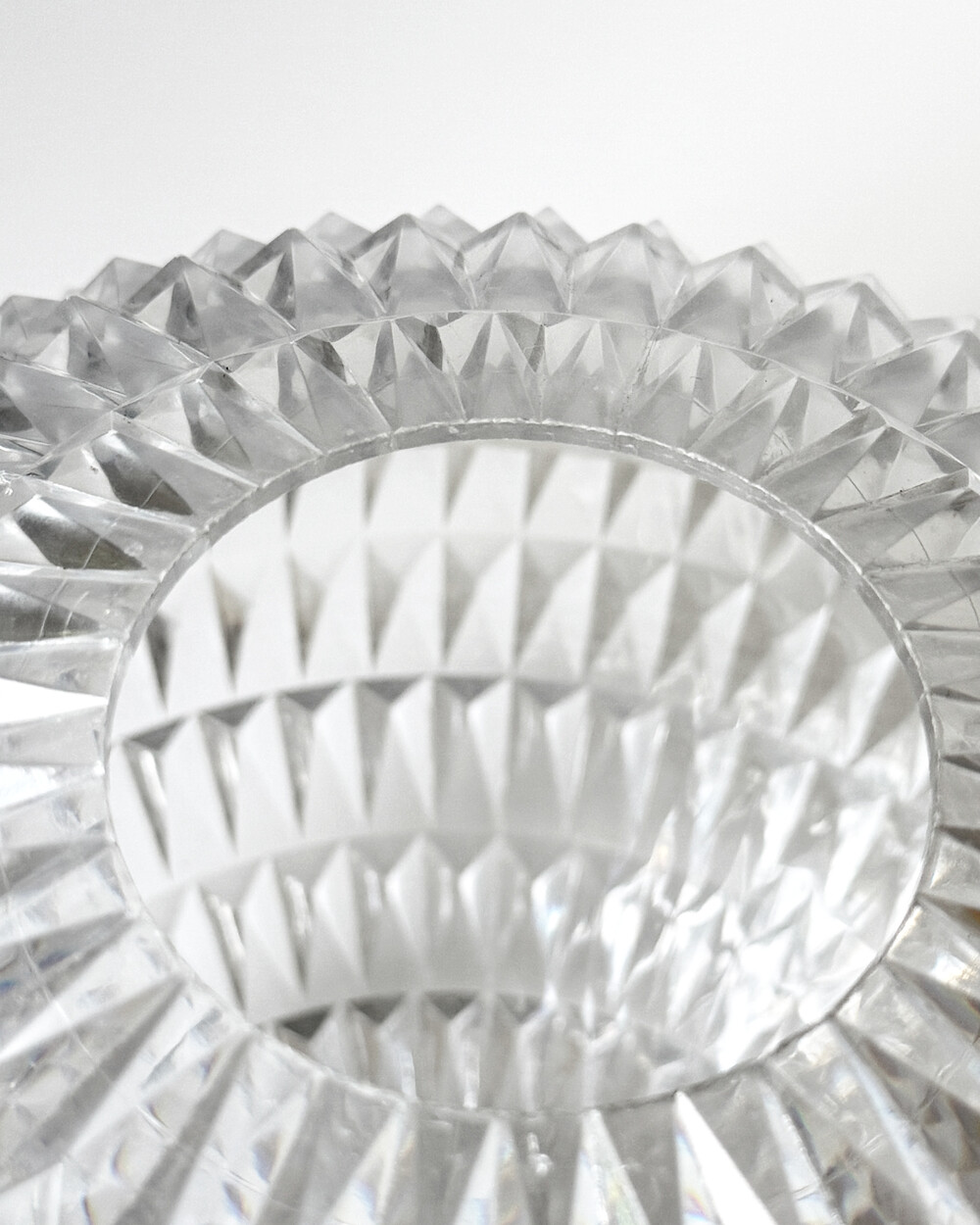 투명한 Plexiglas(Acryl) 소재로 프리즘이 연상되는 입체 패턴의 상, 하 피스가 연결된 구조입니다.