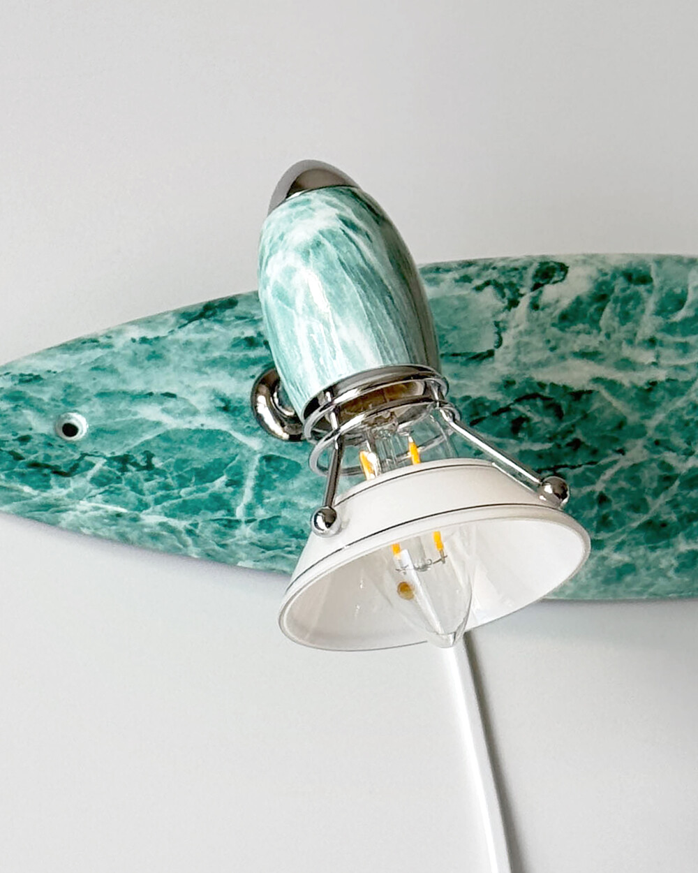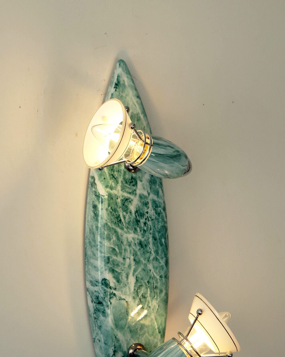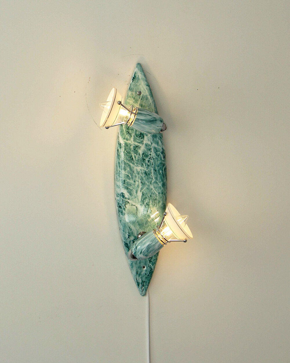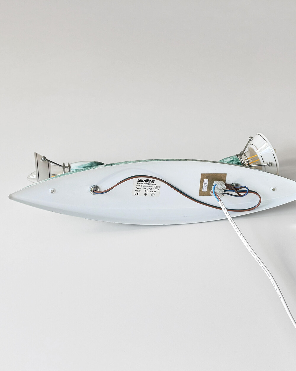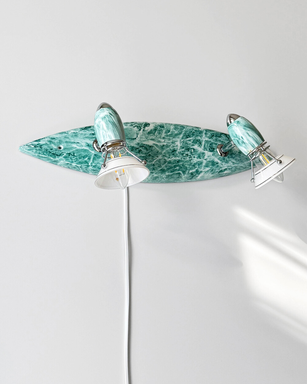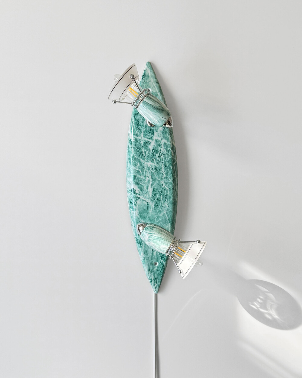 물결처럼 흐르는 푸른색 마블 패턴이 장식된 메탈 조명입니다.1980–90년대 독일 조명 브랜드 Variant에서 제작된 제품으로, 기능적인 면이 강조된 디자인에 과감한 컬러와 실험적인 패턴이 더해진 것이 특징입니다. 천장과 벽 겸용으로 설치할 수 있으며, 양쪽의 라이트는 각각 각도 조절이 가능해 벽면을 강조하는 간접 조명부터 집중 조명까지 연출할 수 있습니다.