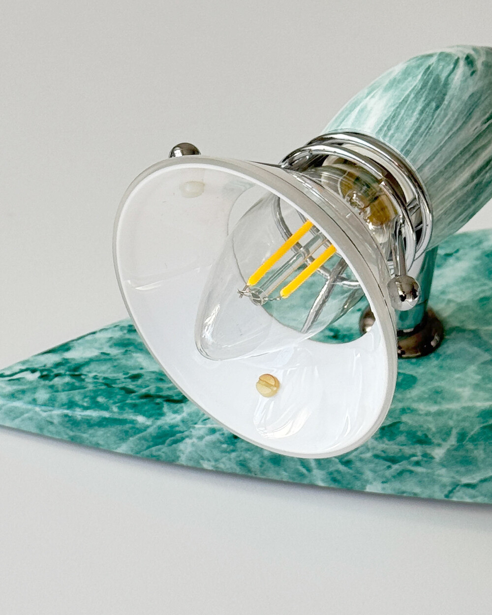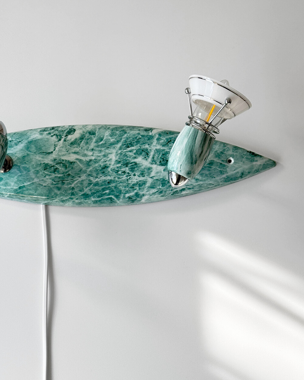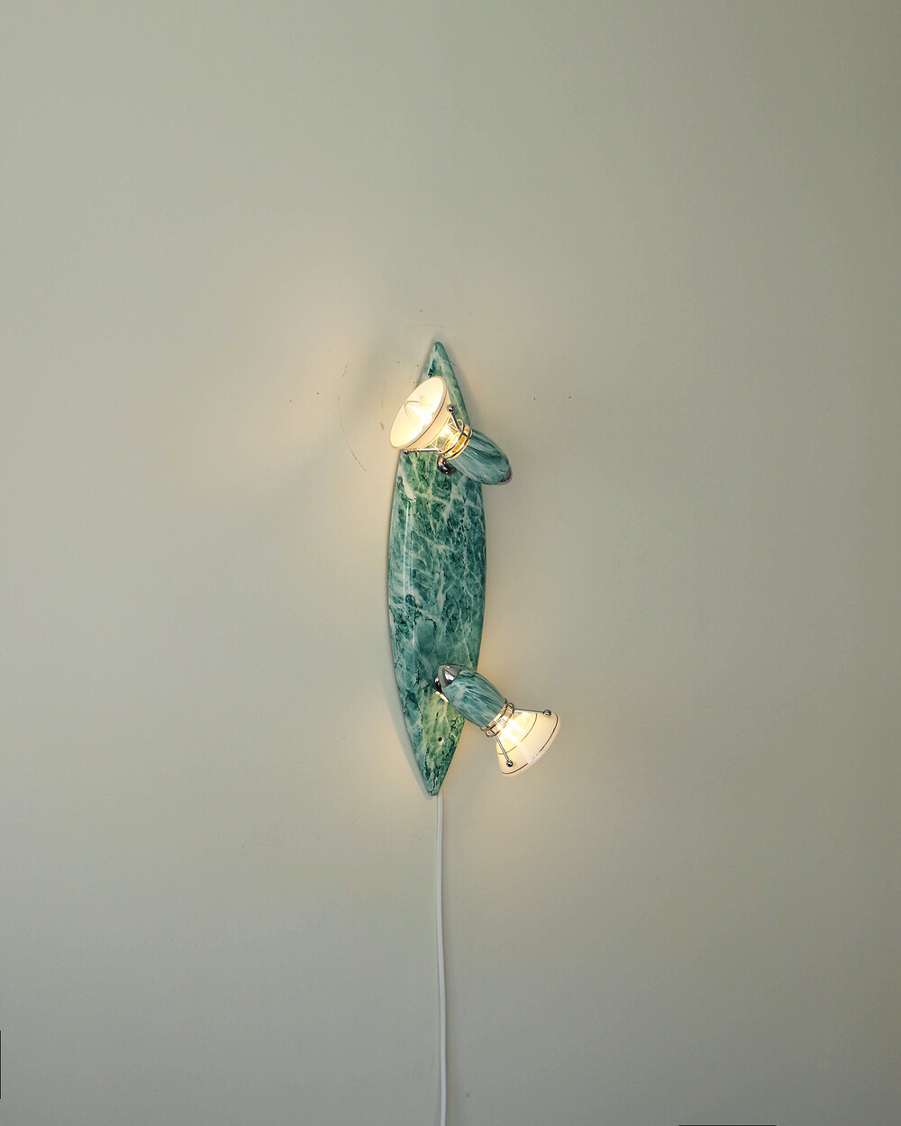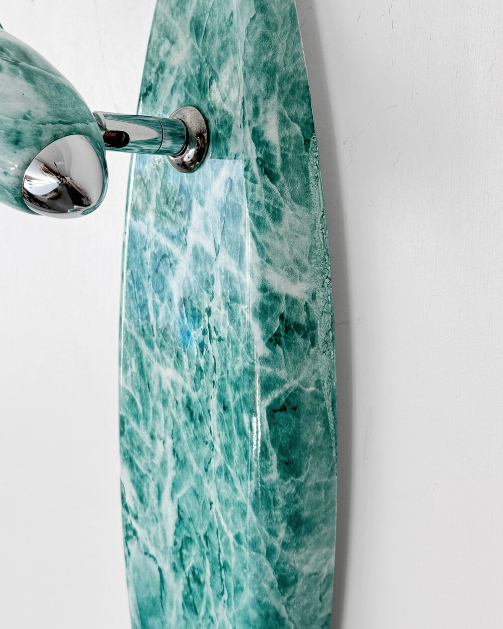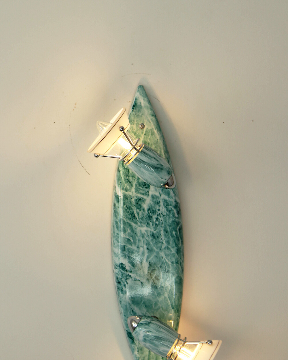 물결처럼 흐르는 푸른색 마블 패턴이 장식된 메탈 조명입니다.1980–90년대 독일 조명 브랜드 Variant에서 제작된 제품으로, 기능적인 면이 강조된 디자인에 과감한 컬러와 실험적인 패턴이 더해진 것이 특징입니다. 천장과 벽 겸용으로 설치할 수 있으며, 양쪽의 라이트는 각각 각도 조절이 가능해 벽면을 강조하는 간접 조명부터 집중 조명까지 연출할 수 있습니다.