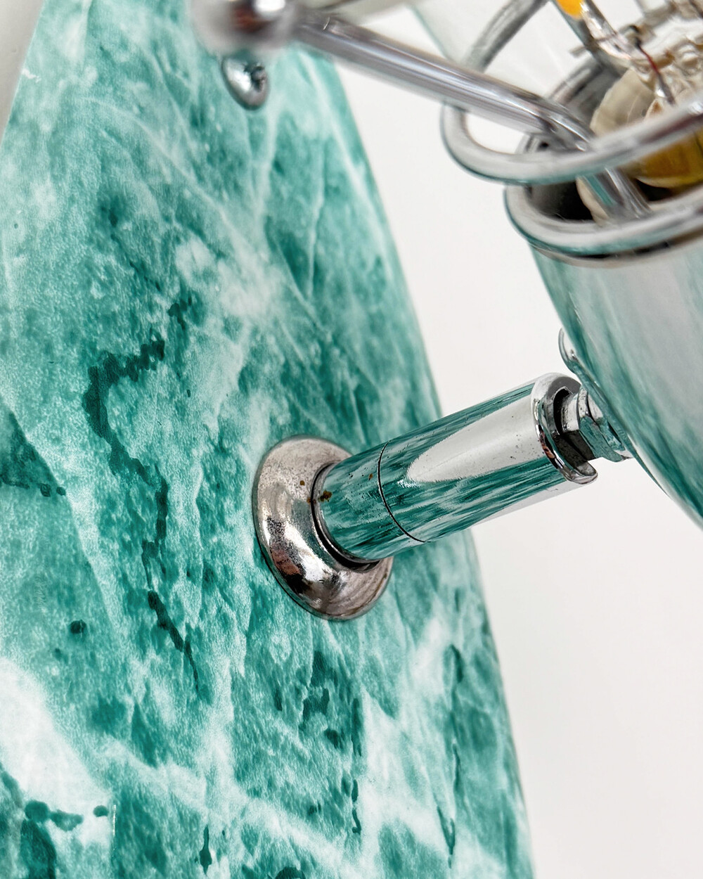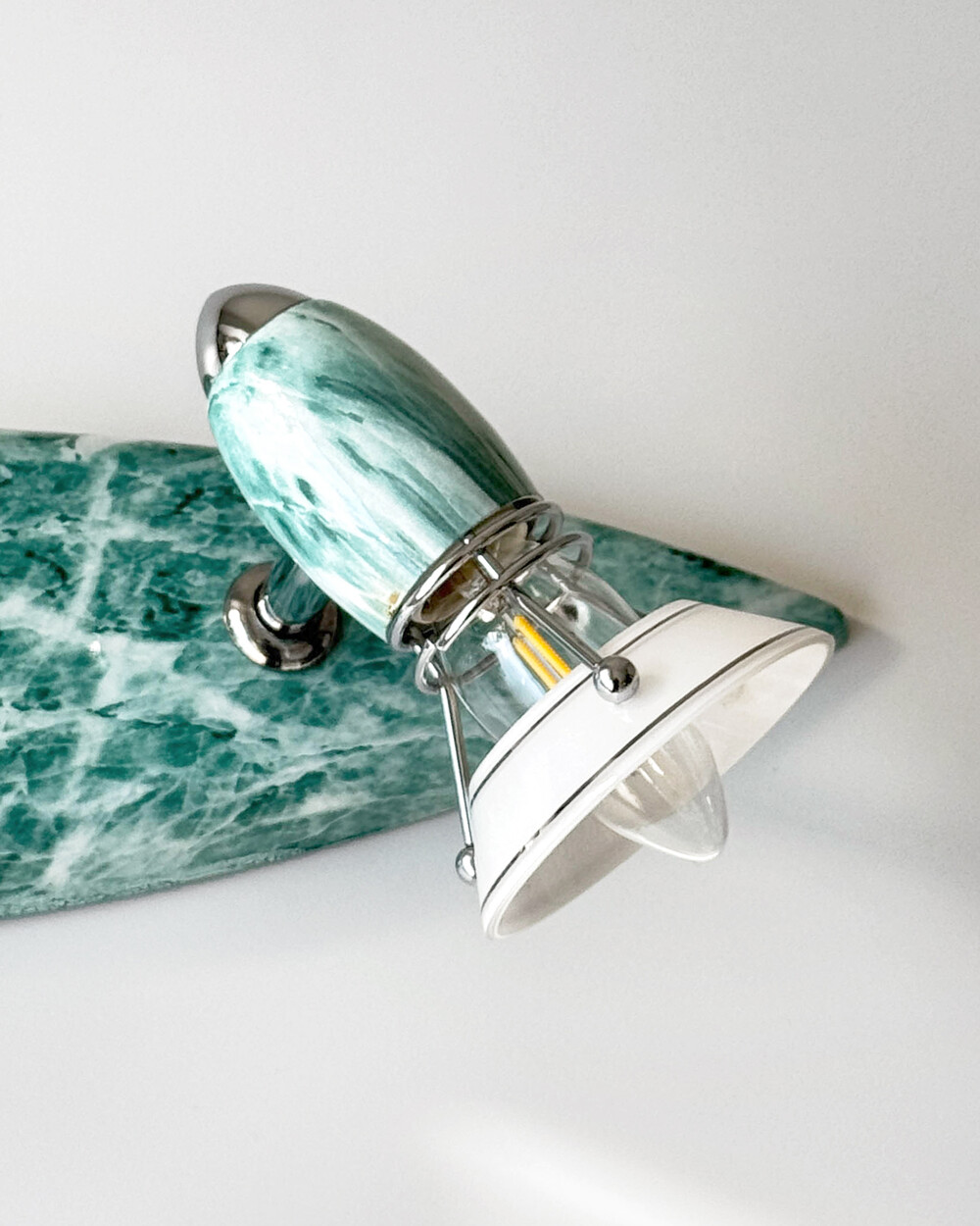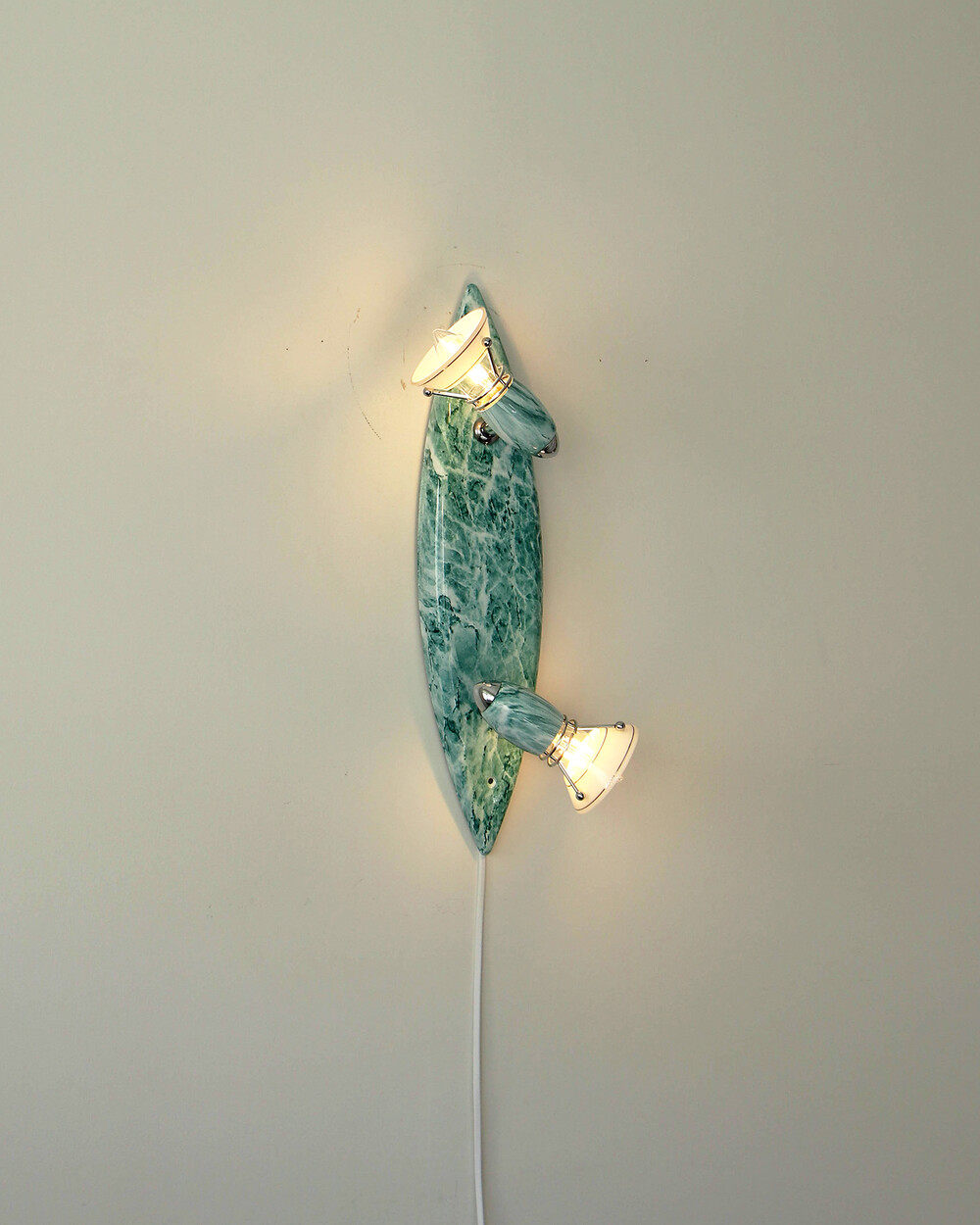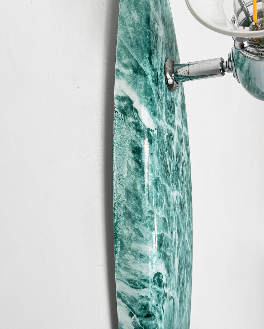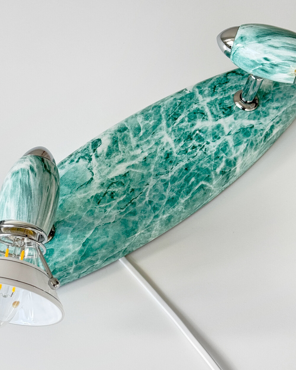 물결처럼 흐르는 푸른색 마블 패턴이 장식된 메탈 조명입니다.1980–90년대 독일 조명 브랜드 Variant에서 제작된 제품으로, 기능적인 면이 강조된 디자인에 과감한 컬러와 실험적인 패턴이 더해진 것이 특징입니다. 천장과 벽 겸용으로 설치할 수 있으며, 양쪽의 라이트는 각각 각도 조절이 가능해 벽면을 강조하는 간접 조명부터 집중 조명까지 연출할 수 있습니다.