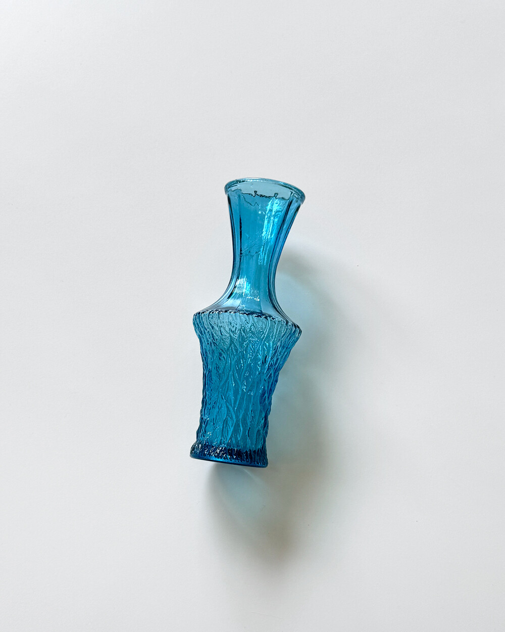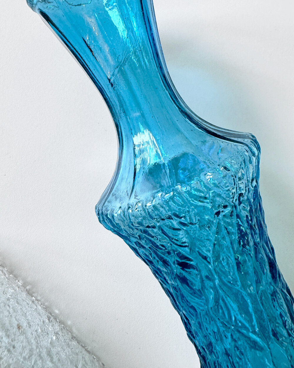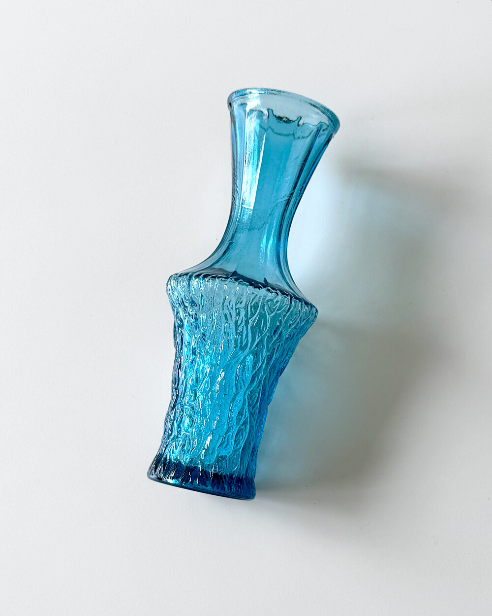 17세기 런던에서 설립된 유리공방 Whitefriars Glass에서 1967년도부터 전개한 Textured Glass 시리즈로 흔히 쓰이지 않던 나무껍질, 철망, 촛농 등 일상적인 오브제를 이용한 형태와 블루, 딥그린, 퍼플 등의 존재감이 강한 컬러가 특징입니다.
