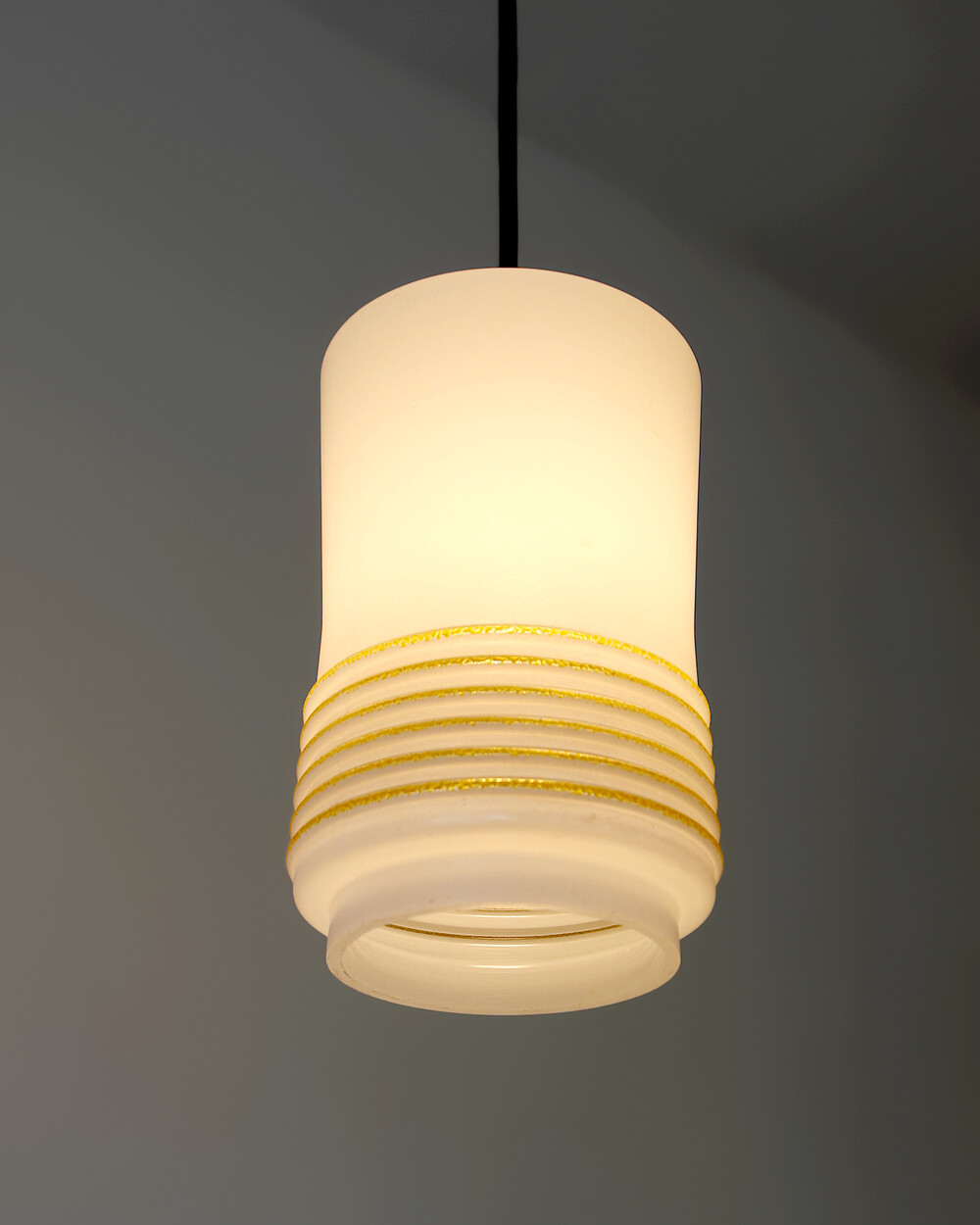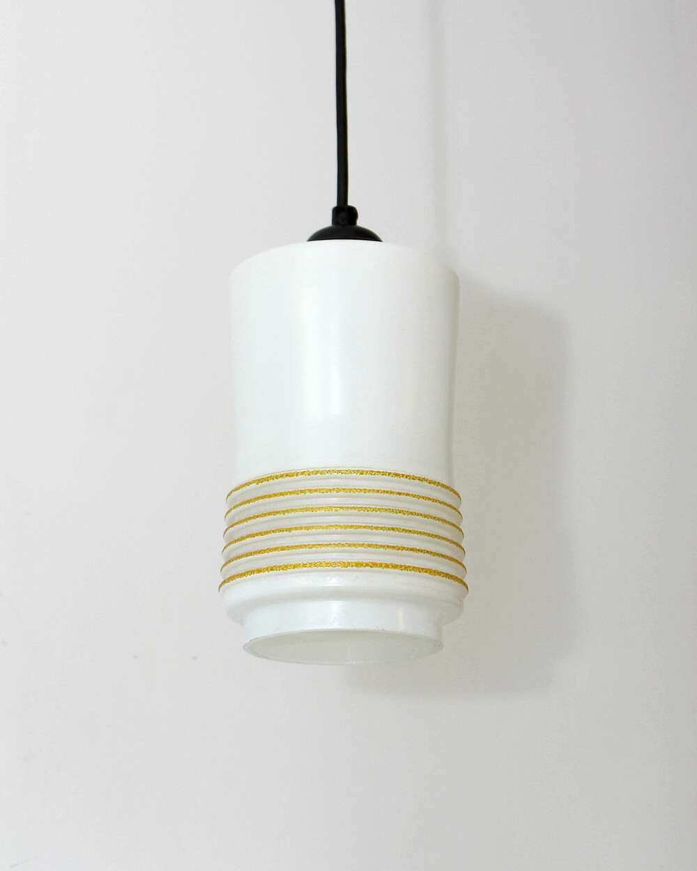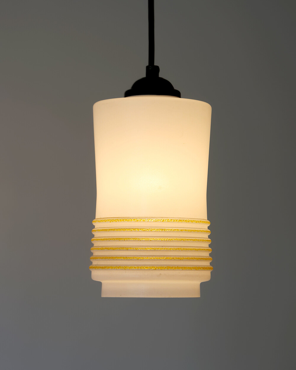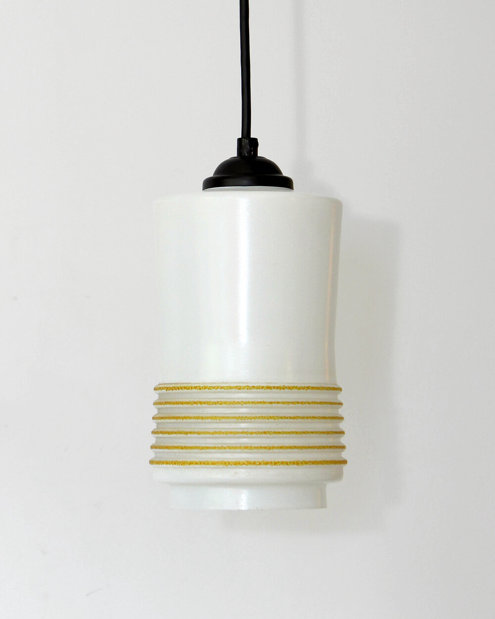 1960s Glass Cylinder Pendant Lamp With Yellow Stripe