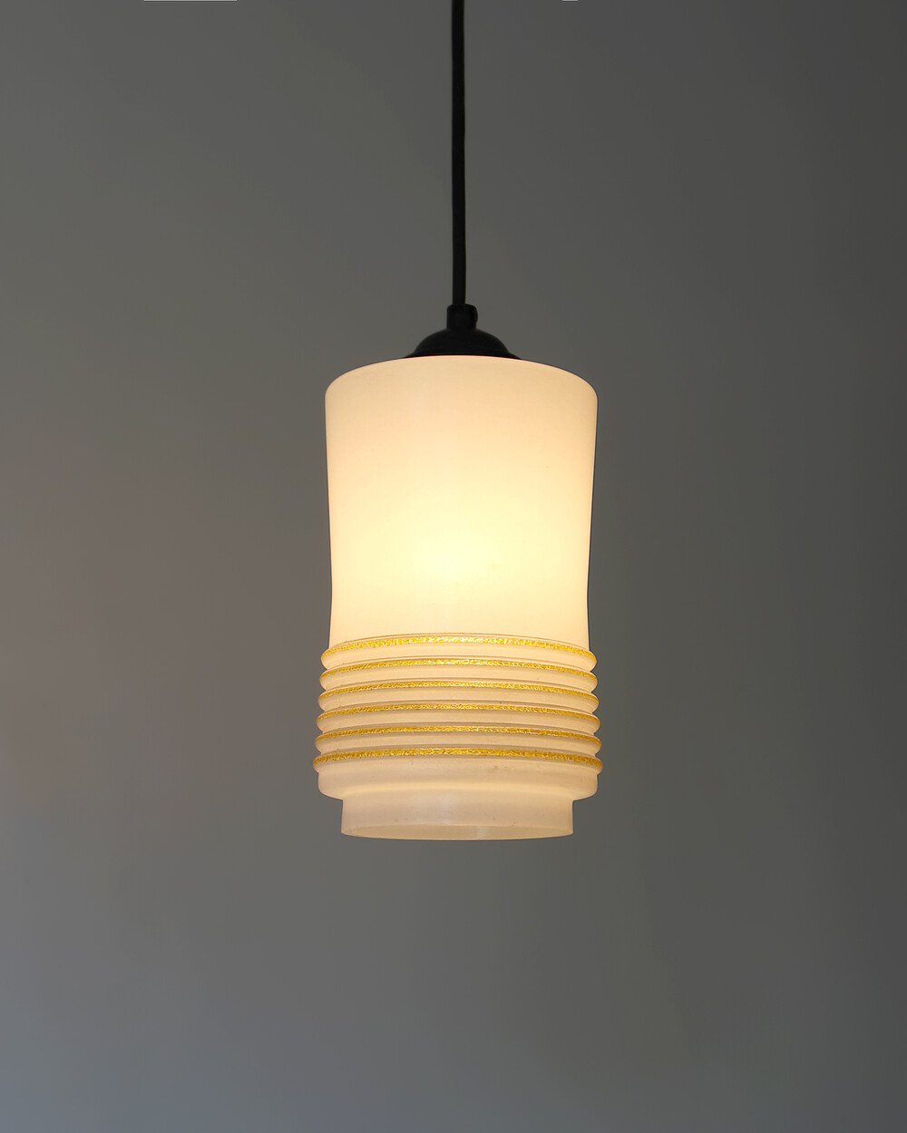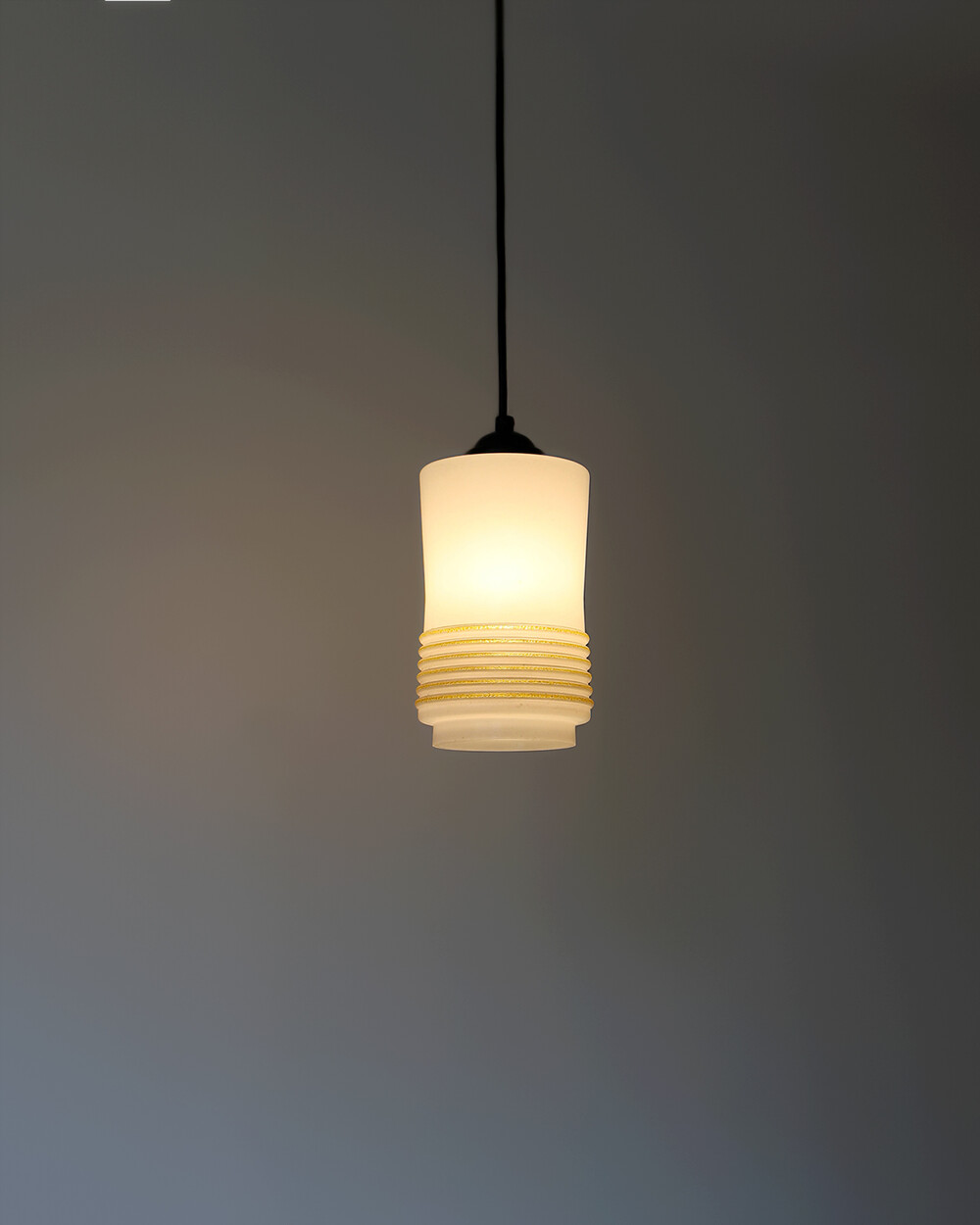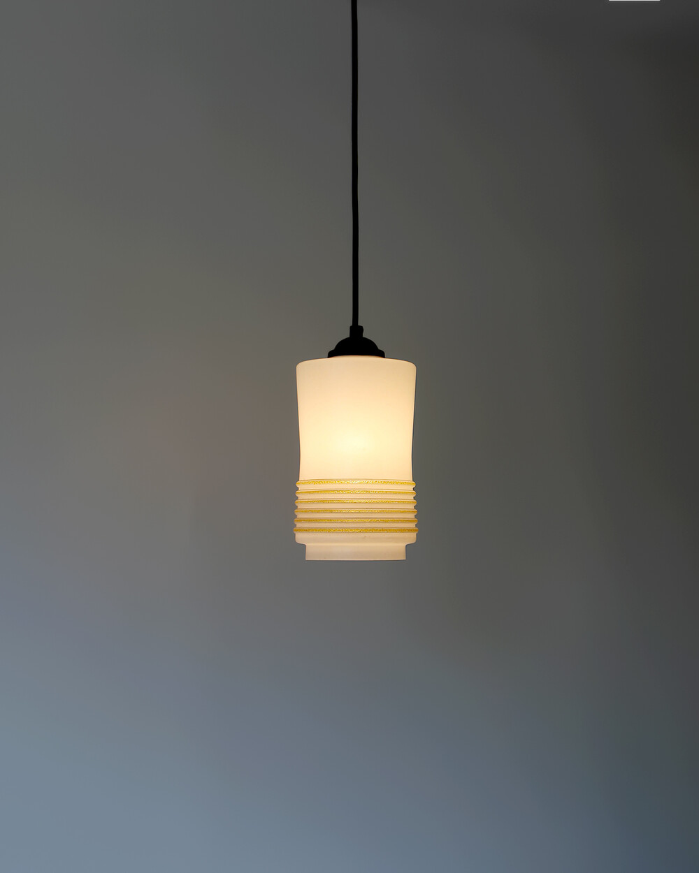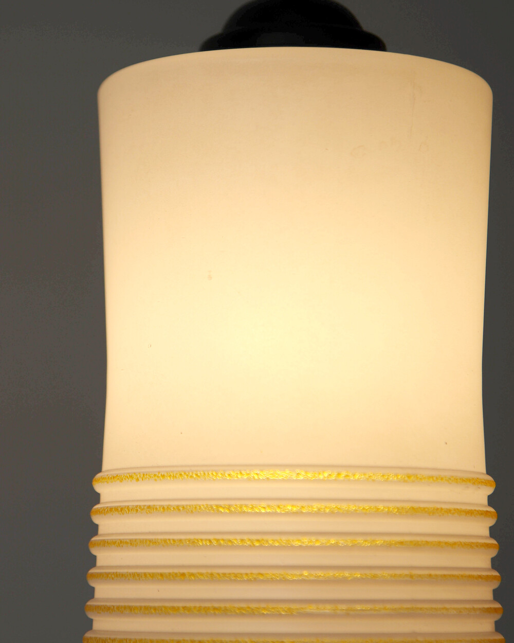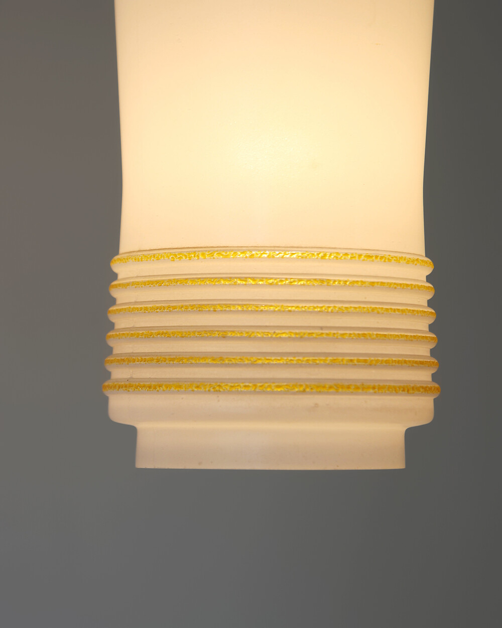 1960s Glass Cylinder Pendant Lamp With Yellow Stripe