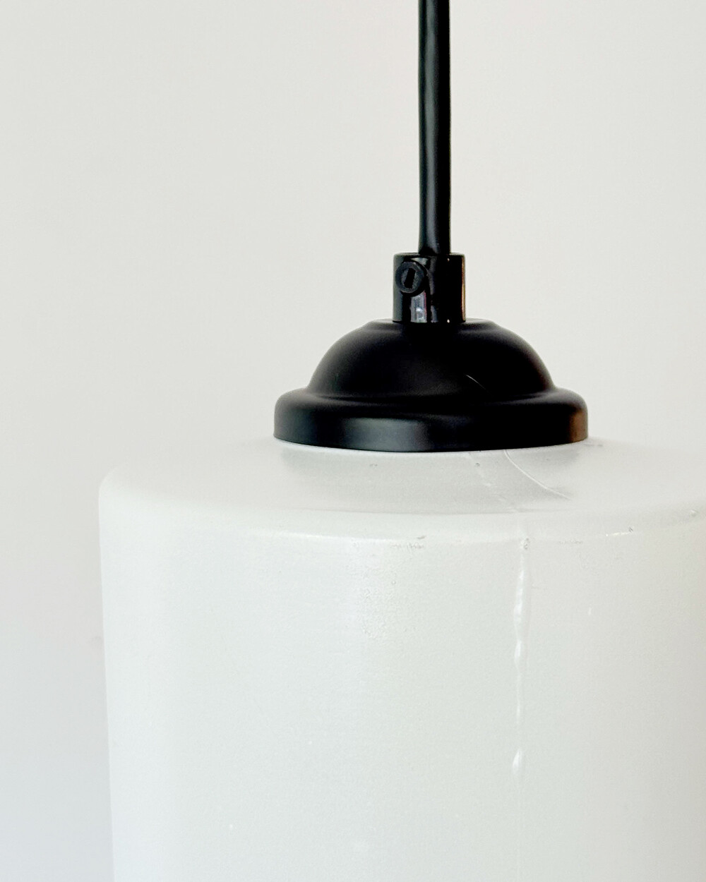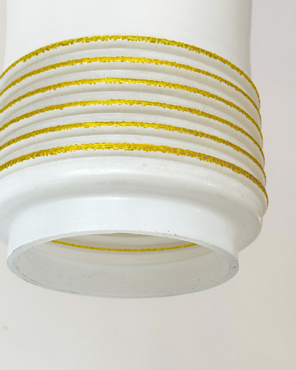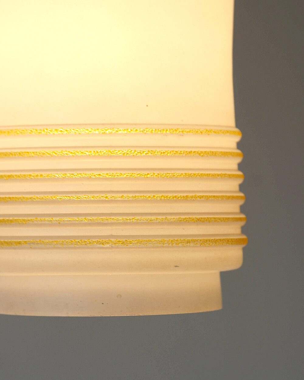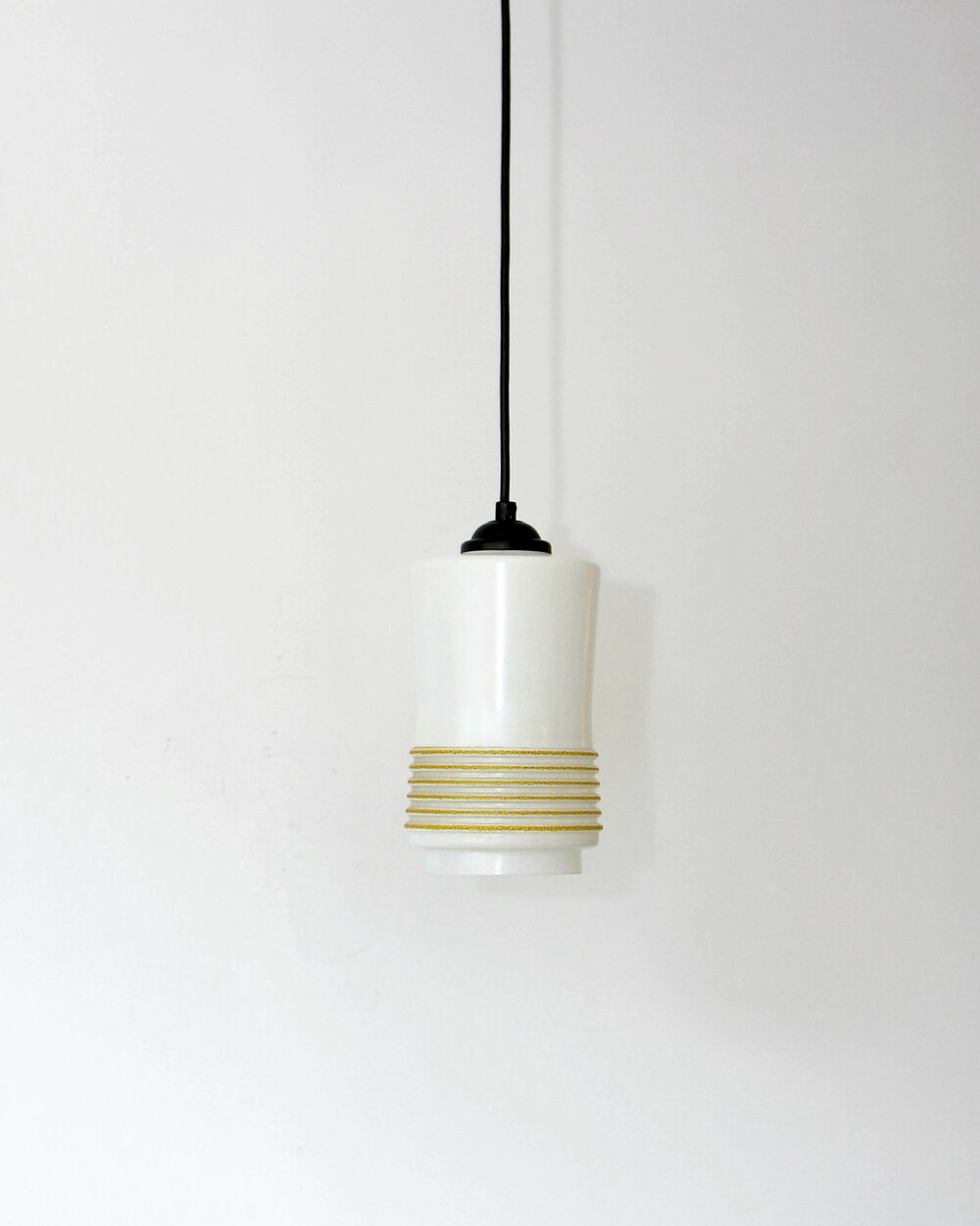 1960s Glass Cylinder Pendant Lamp With Yellow Stripe