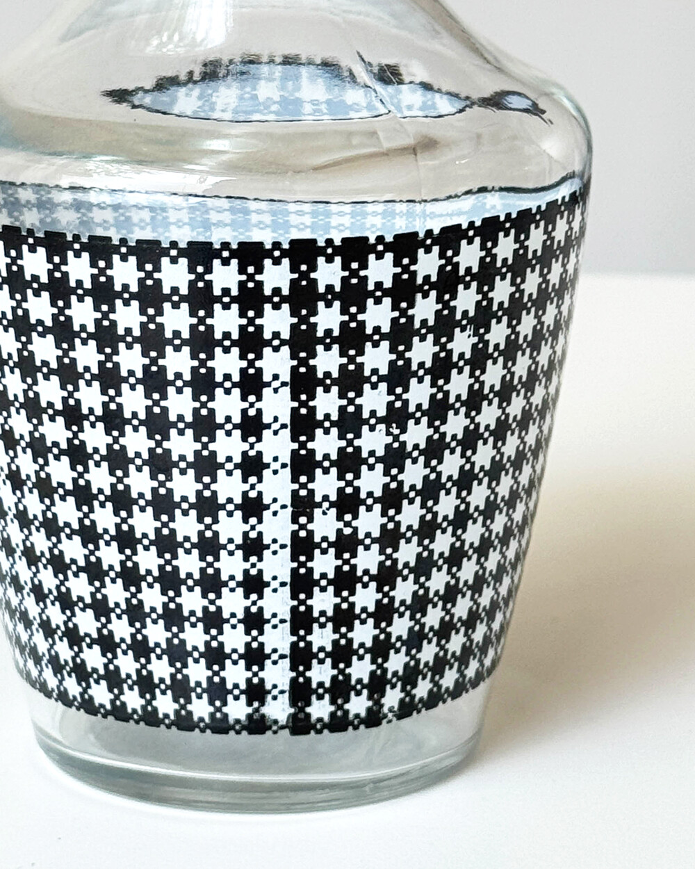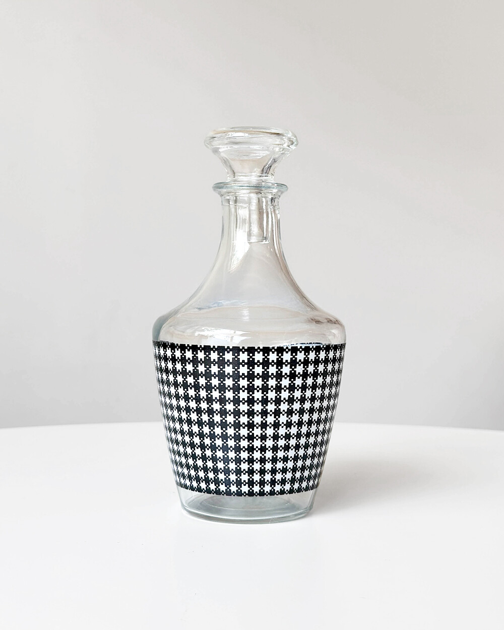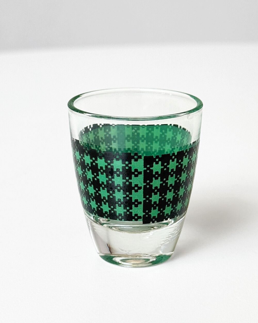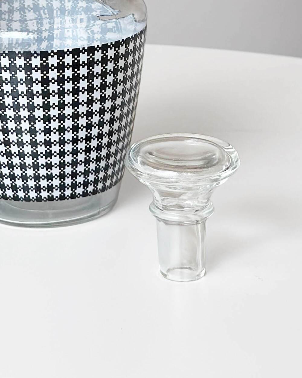 선명한 컬러 글라스와 블랙 진저햄 패턴이 조합된 1960년대 프랑스 Crystal d'Arques 리큐어 서비스 세트입니다. 옐로우, 그린, 블루, 레드 컬러가 각각 두 점씩 구성된 글라스와 디켄터로 이루어져 있습니다.