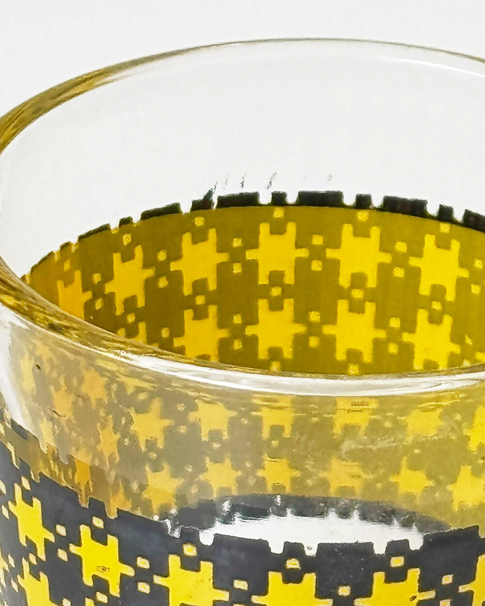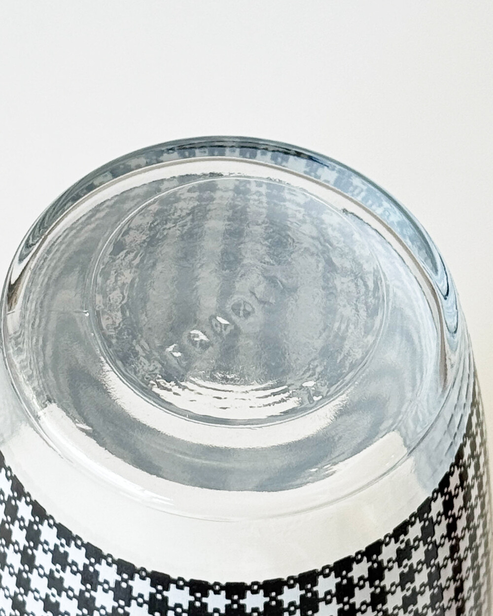 투명한 글라스 위에 반복되는 패턴과 컬러가 더해져, 테이블 위에 경쾌한 포인트가 됩니다. 미사용 컨디션으로 입고되었습니다.