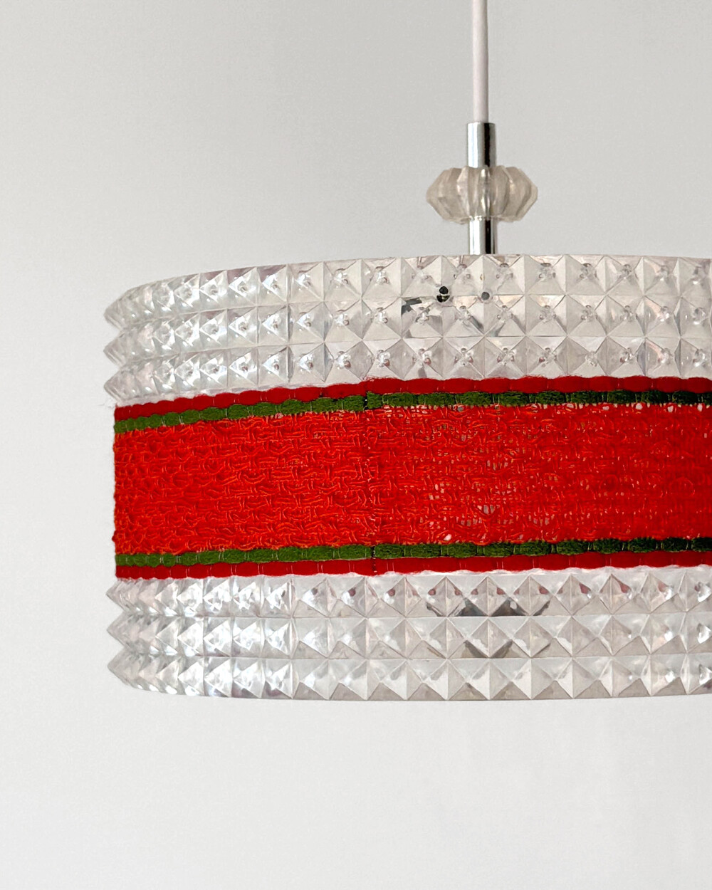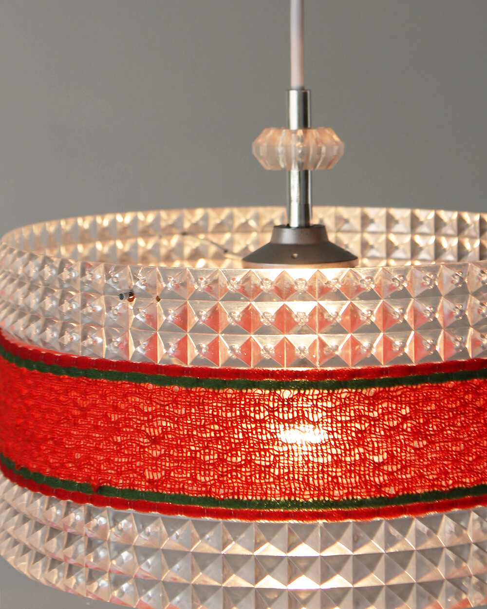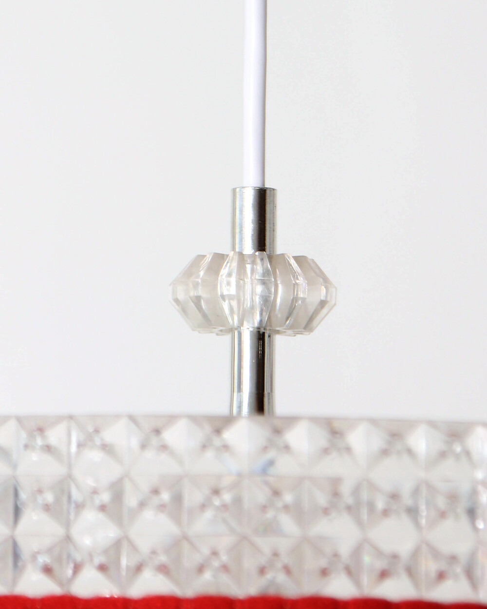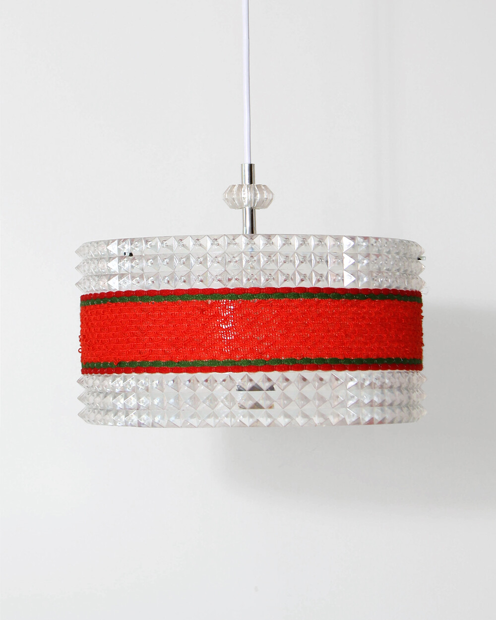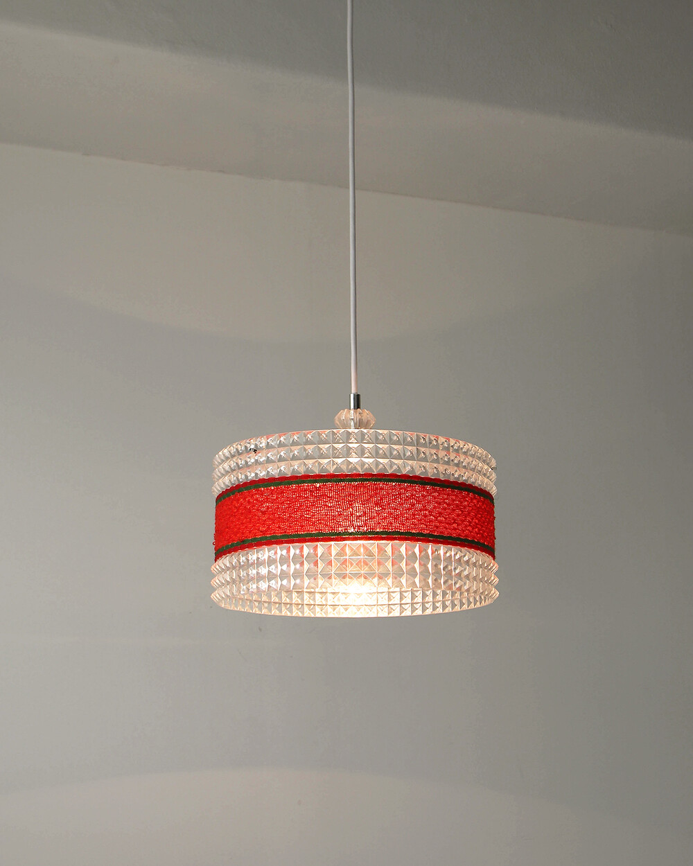 레드 패브릭 밴드 장식이 더해진 플렉시글라스 펜던트 조명으로, 1925년 독일에서 설립된 조명 회사 Marbach Leuchten에서 1970년대 제작되었습니다.