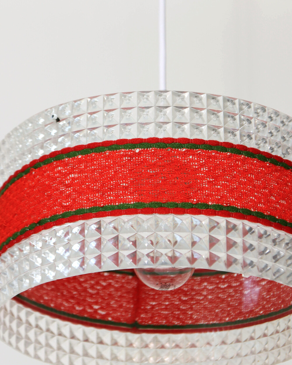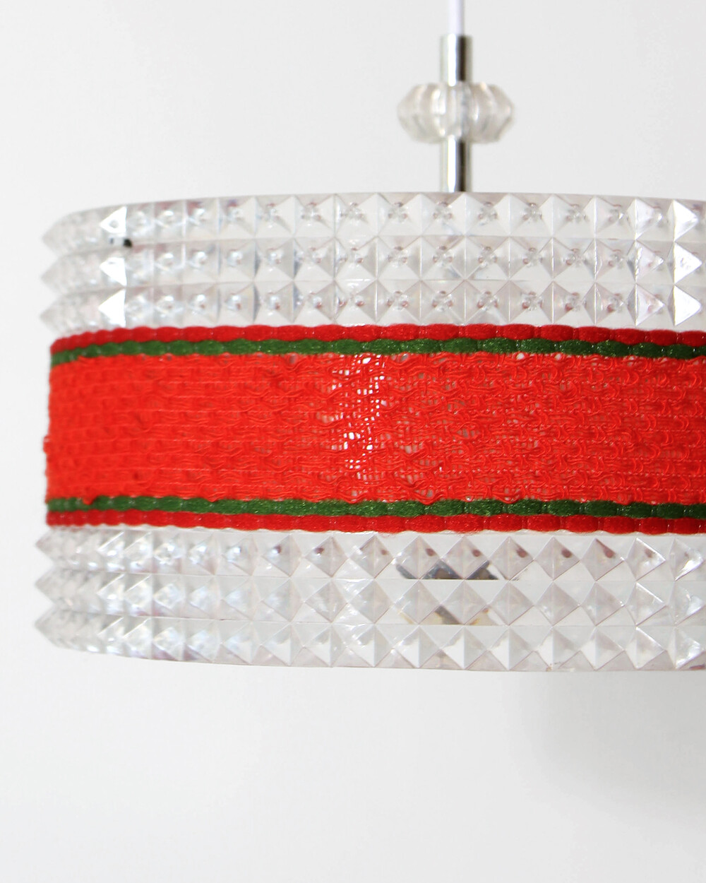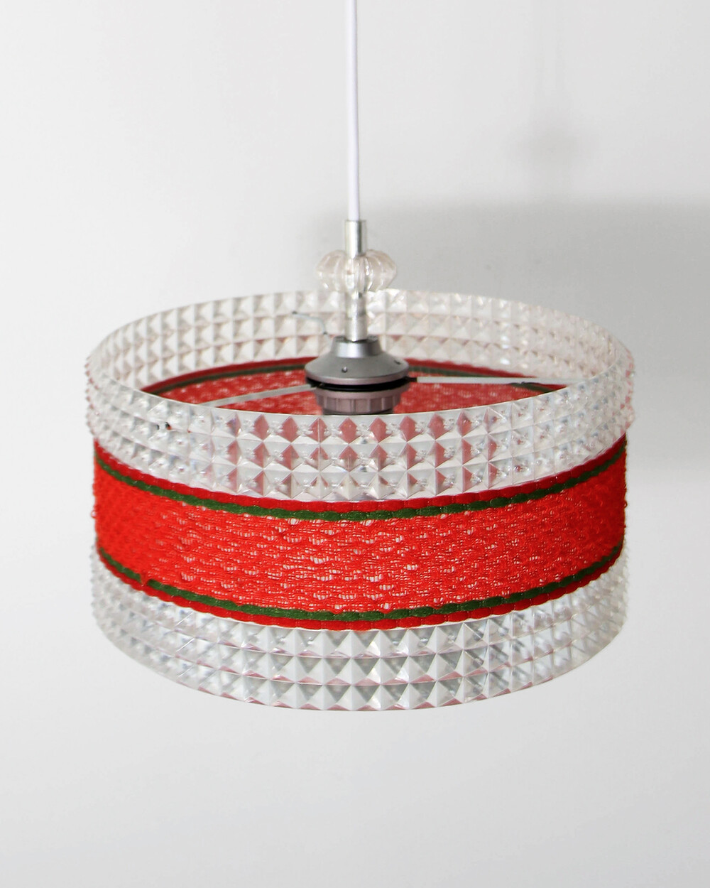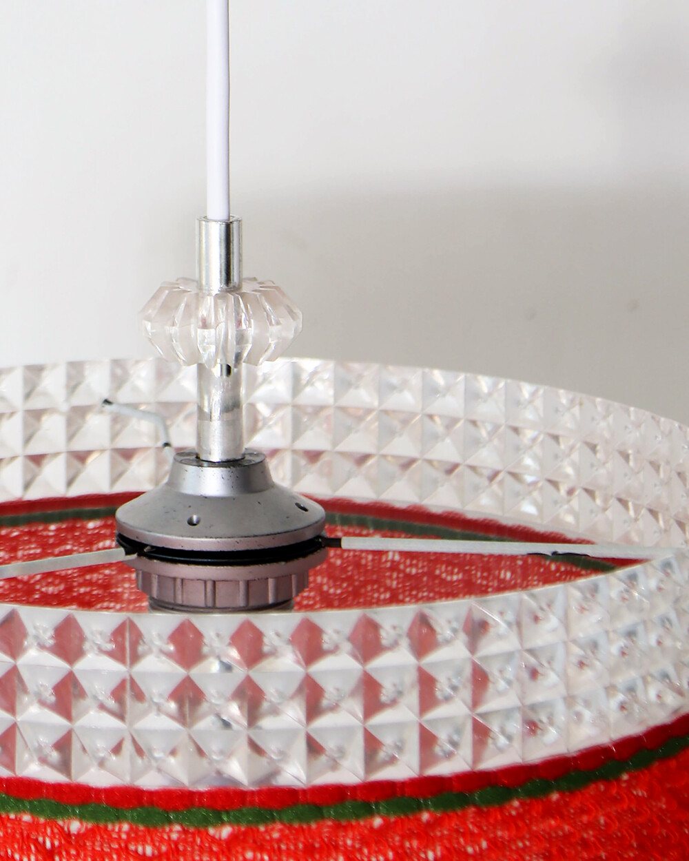 레드 패브릭 밴드 장식이 더해진 플렉시글라스 펜던트 조명으로, 1925년 독일에서 설립된 조명 회사 Marbach Leuchten에서 1970년대 제작되었습니다.