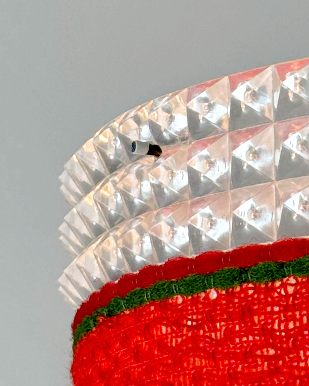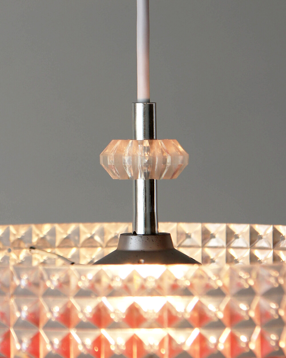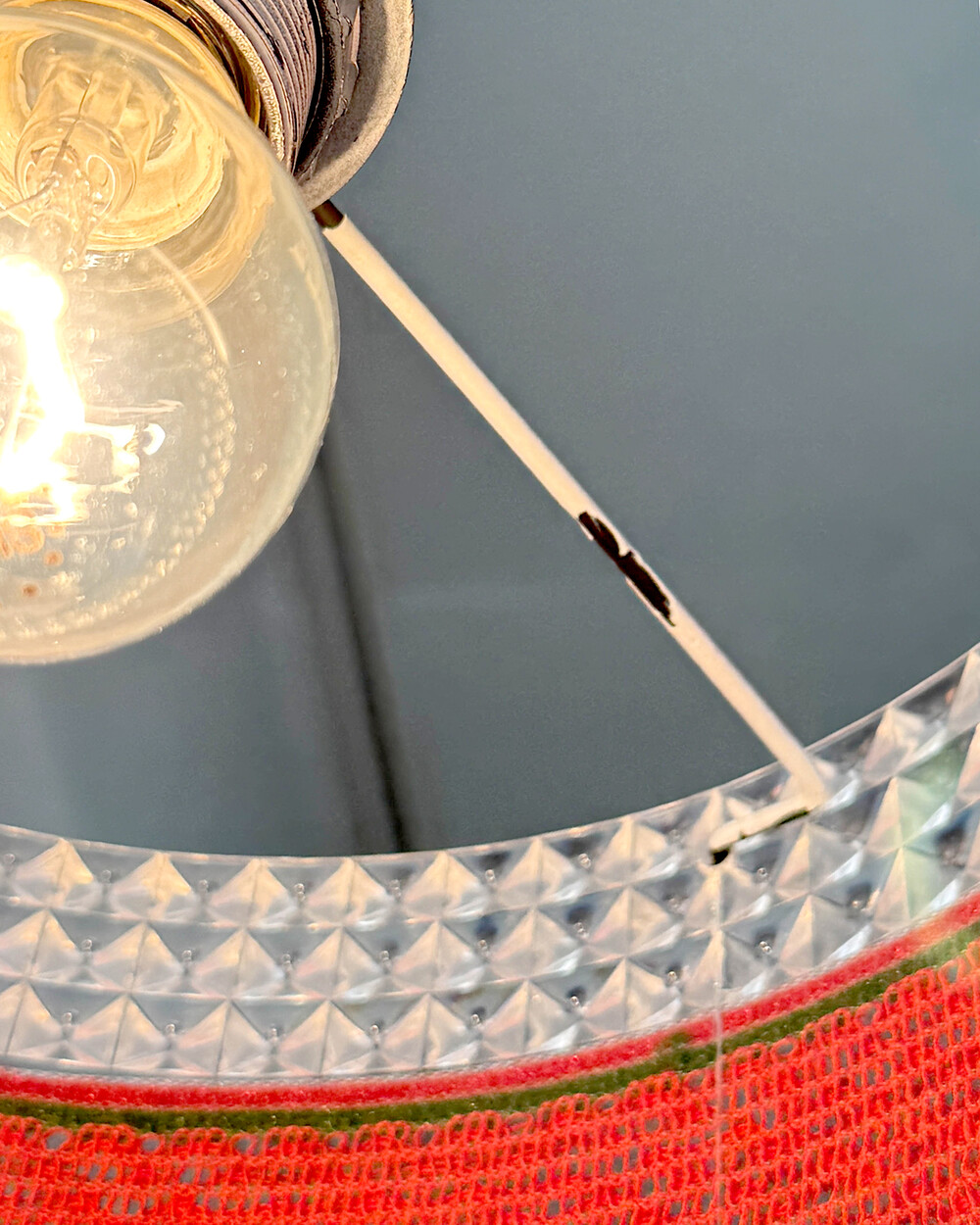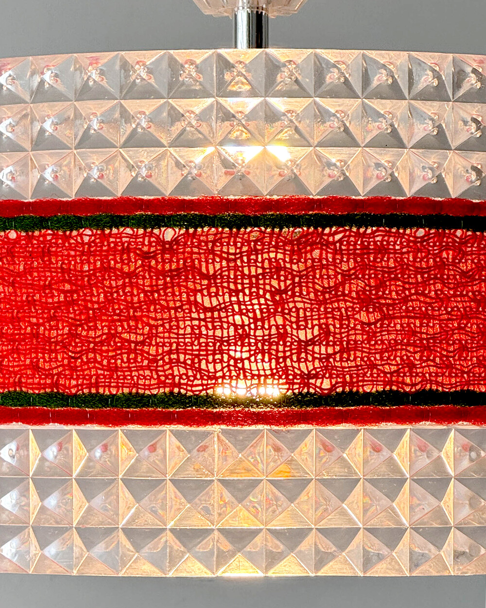 레드 패브릭 밴드 장식이 더해진 플렉시글라스 펜던트 조명으로, 1925년 독일에서 설립된 조명 회사 Marbach Leuchten에서 1970년대 제작되었습니다.