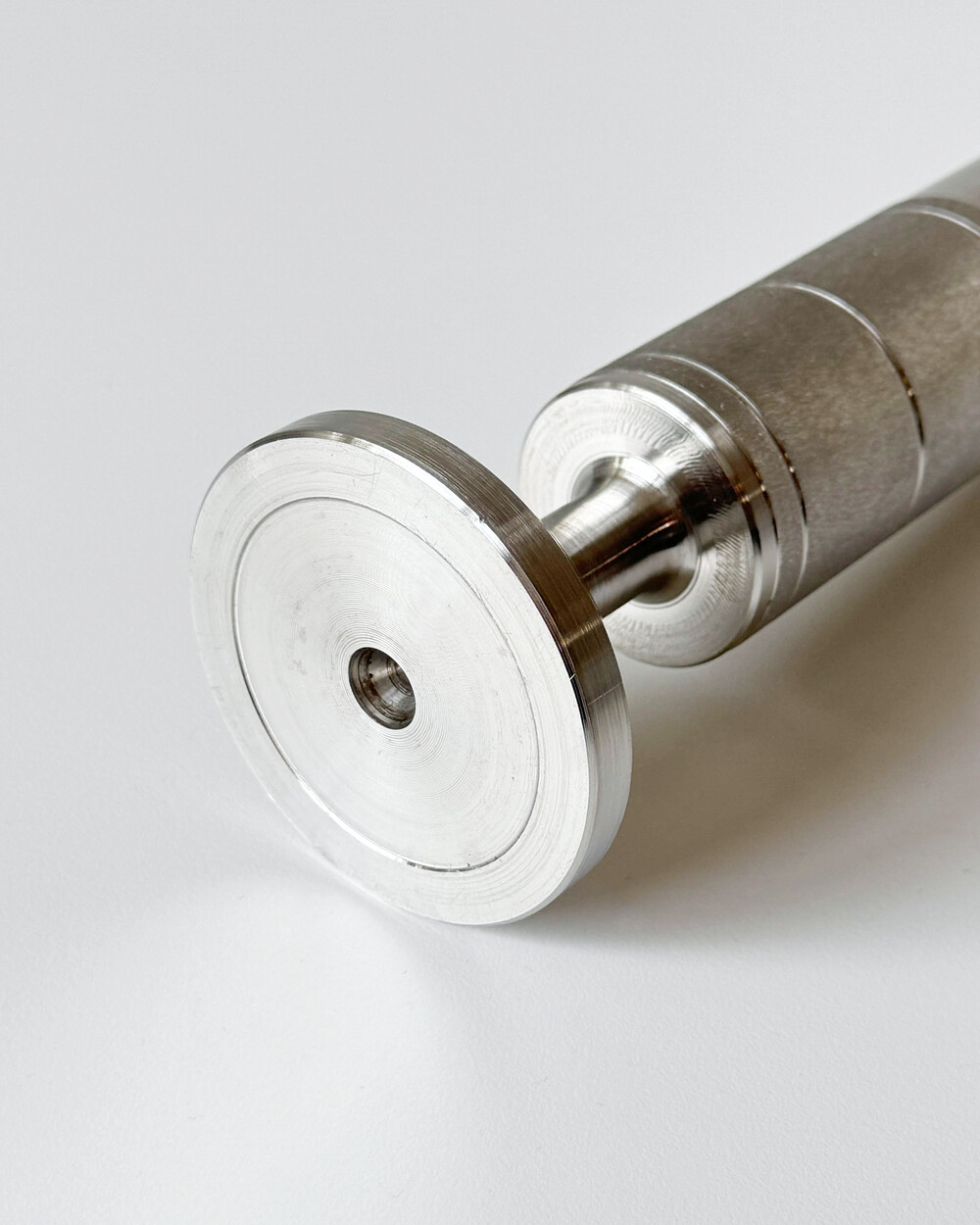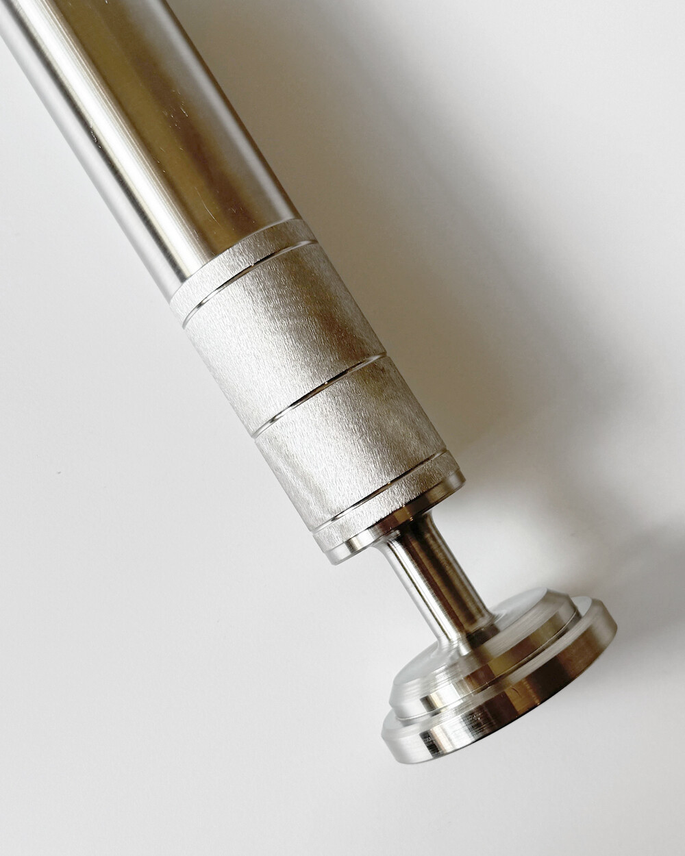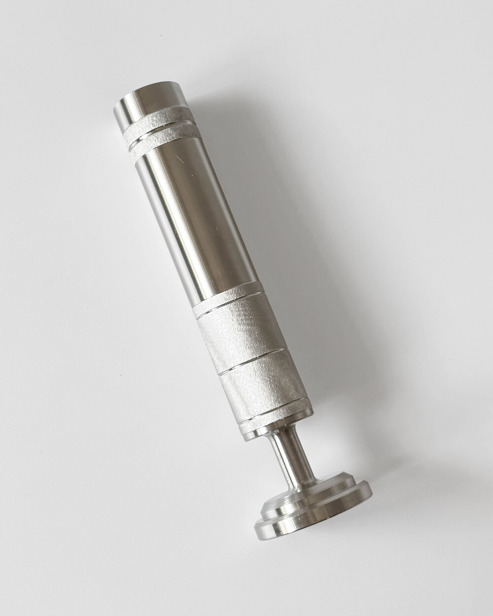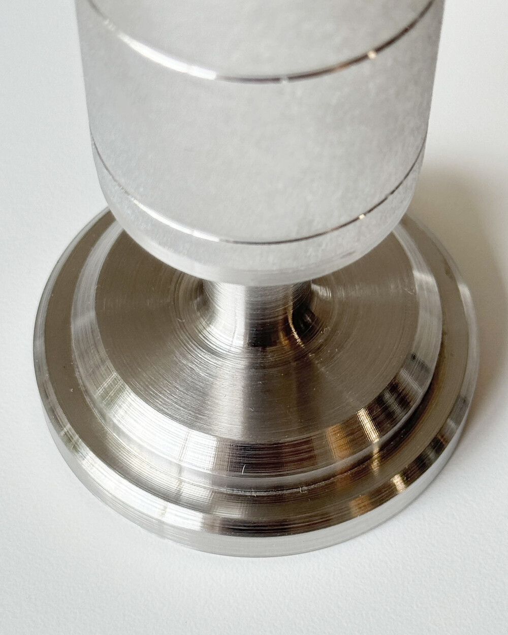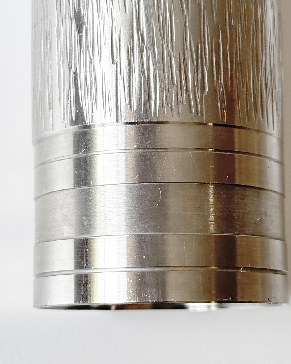 건축 양식에서 비롯된 구조적 아름다움과 금속성이 어우러진 브루탈리스트 스타일의 메탈 실린더 화병입니다. 1970년대 서독의 금속공예 브랜드 BMF(Bayerische Metallwarenfabrik)에서 기능성과 실험적 디자인을 결합해 선보인 오브제입니다.