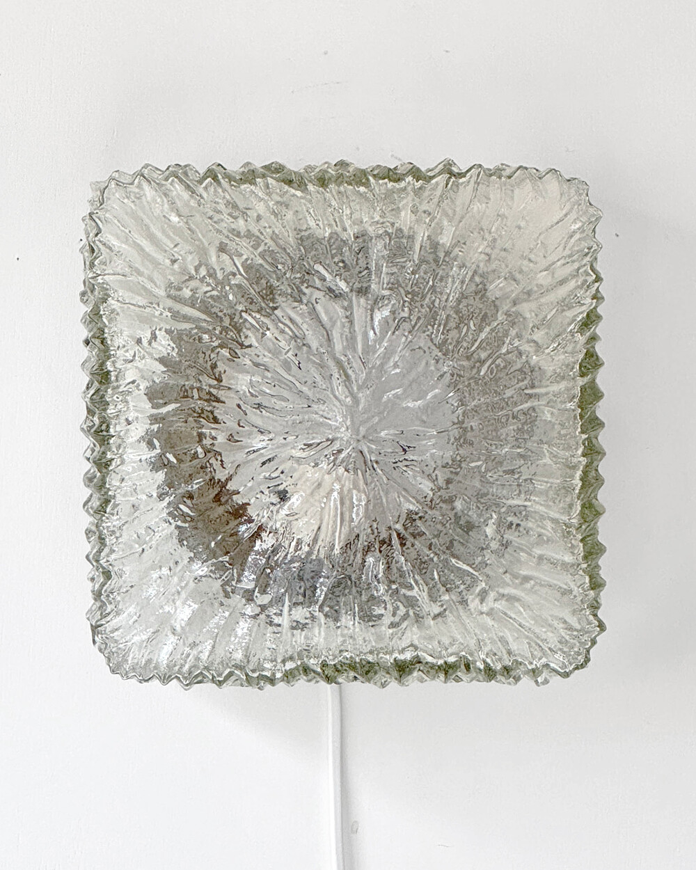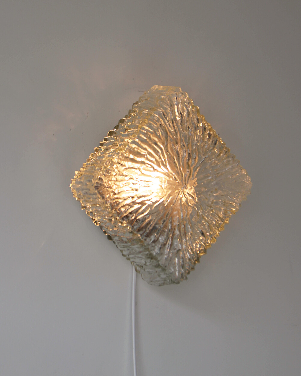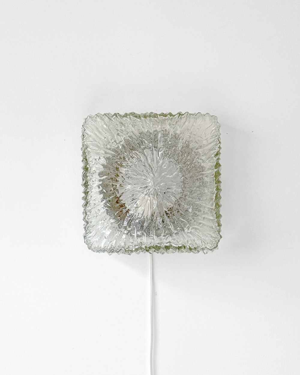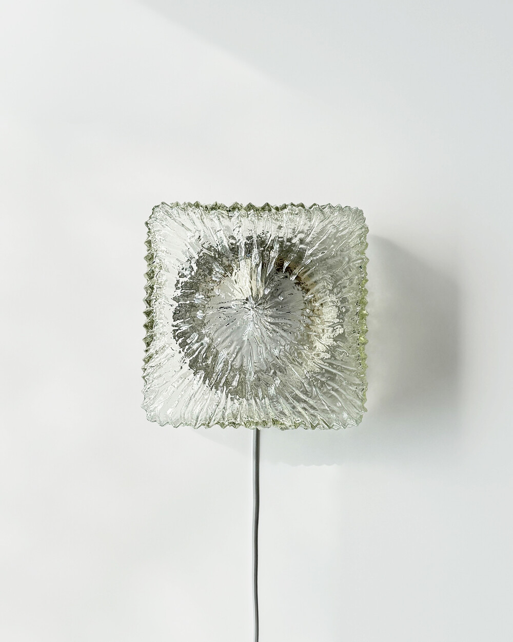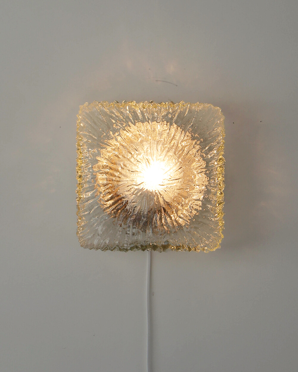 세밀한 주름 텍스처가 돋보이는 스퀘어 글라스 조명으로, 1970년대 독일에서 제작되었습니다. 점등 시 벽면에 풍부한 빛의 그림자를 드리우며, 공간에 섬세한 아름다움을 더해주는 오브제입니다. 벽과 천장에 설치하거나 테이블 조명으로 사용할 수 있습니다.