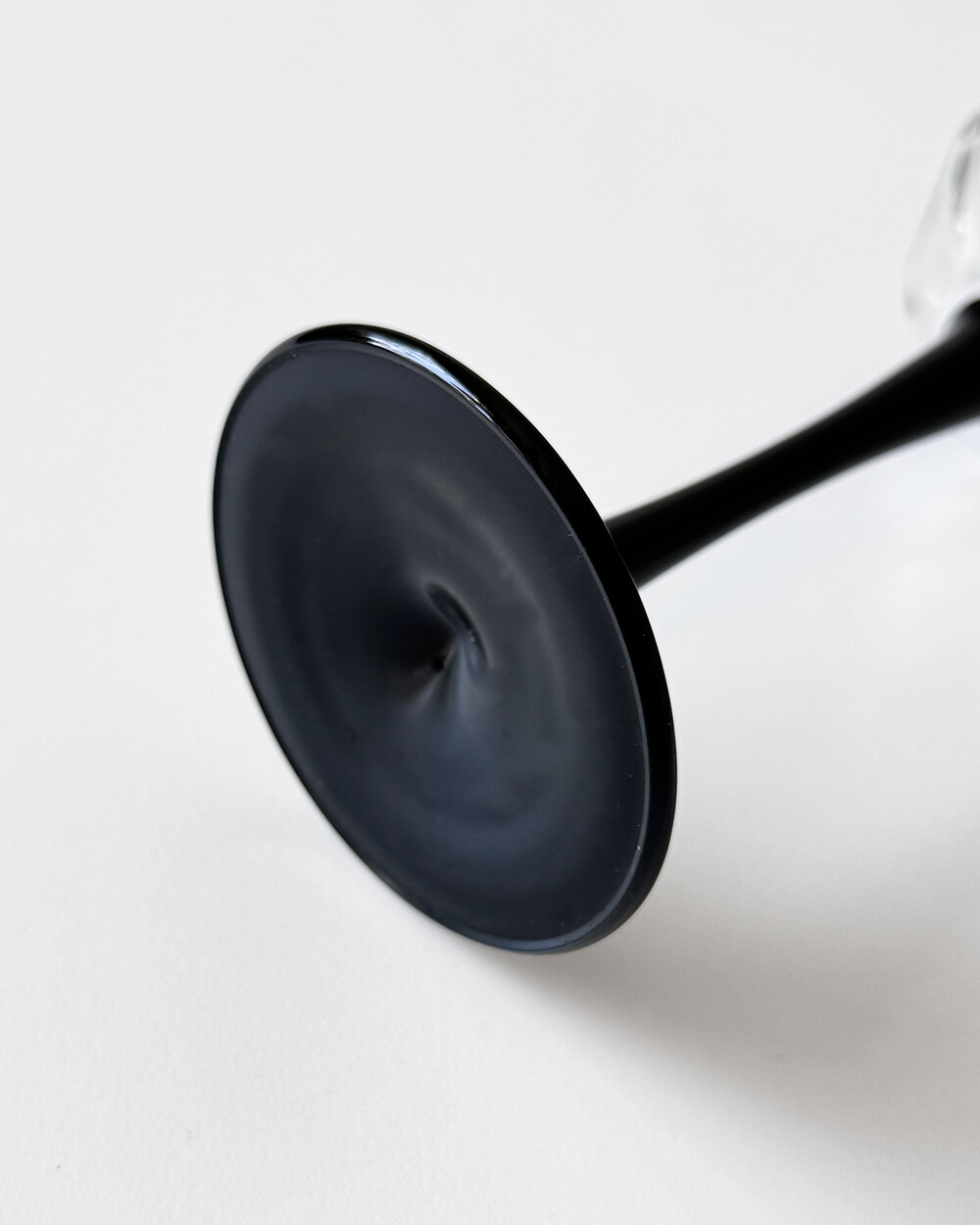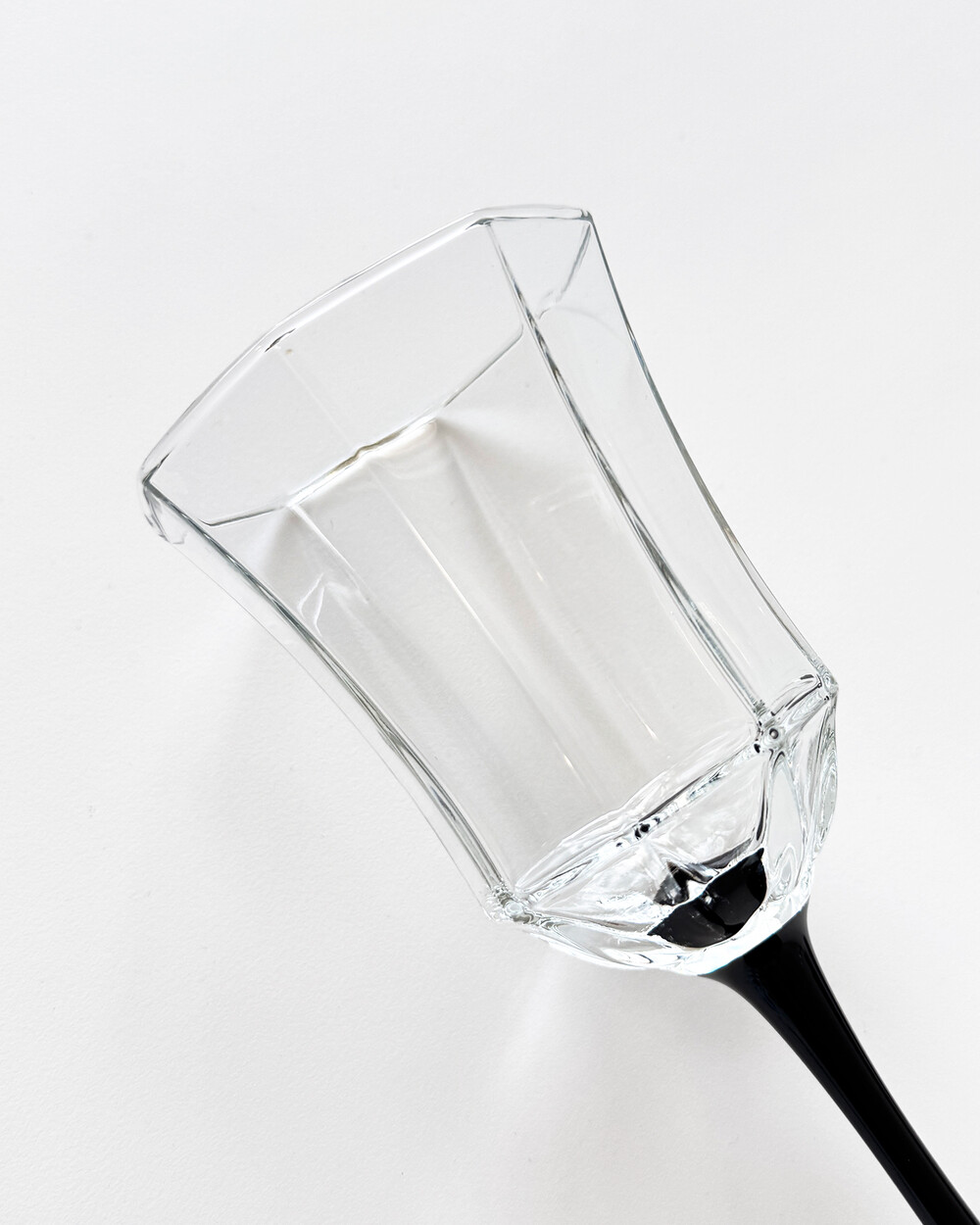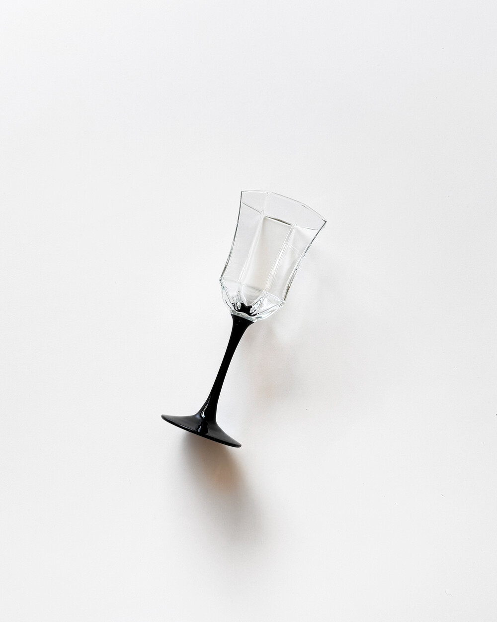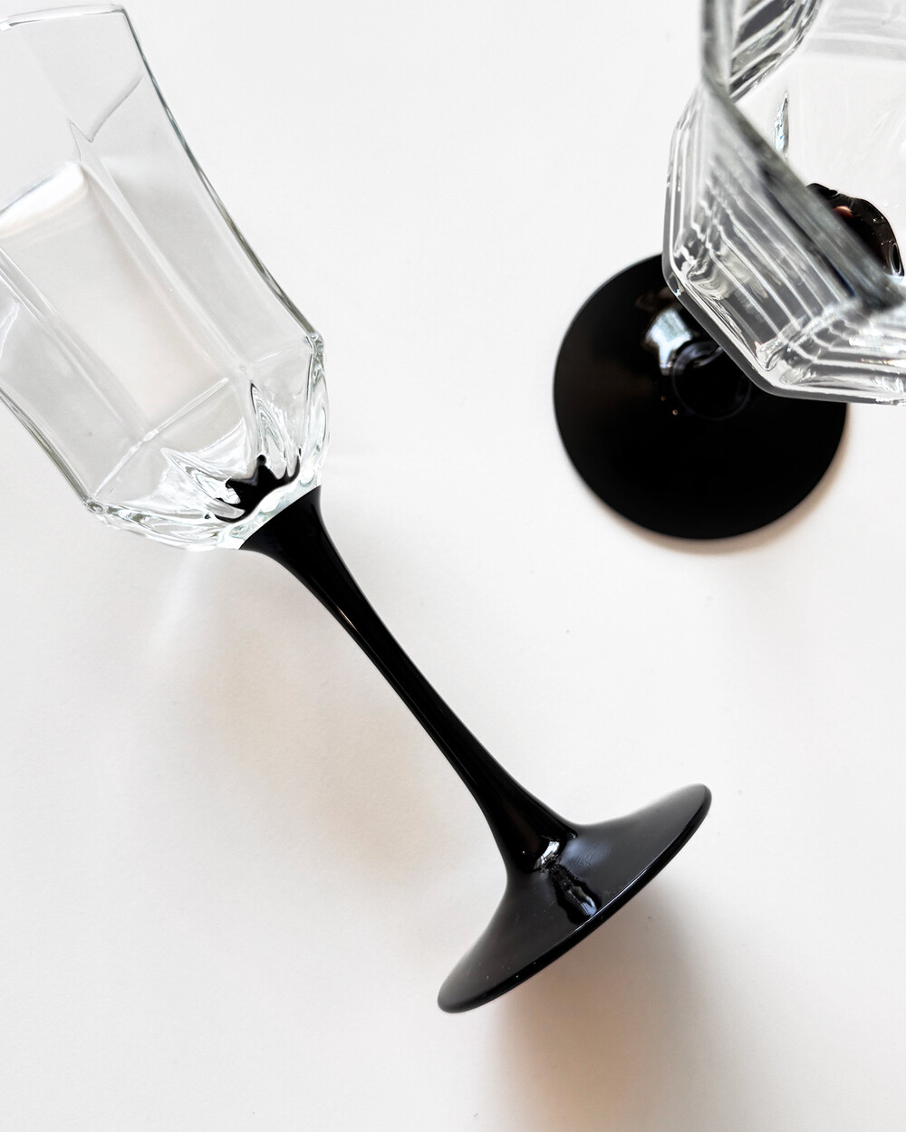팔각 실루엣 글라스에 세련된 블랙 스템으로 이루어진 클래식한 무드의 프렌치 와인 글라스입니다.