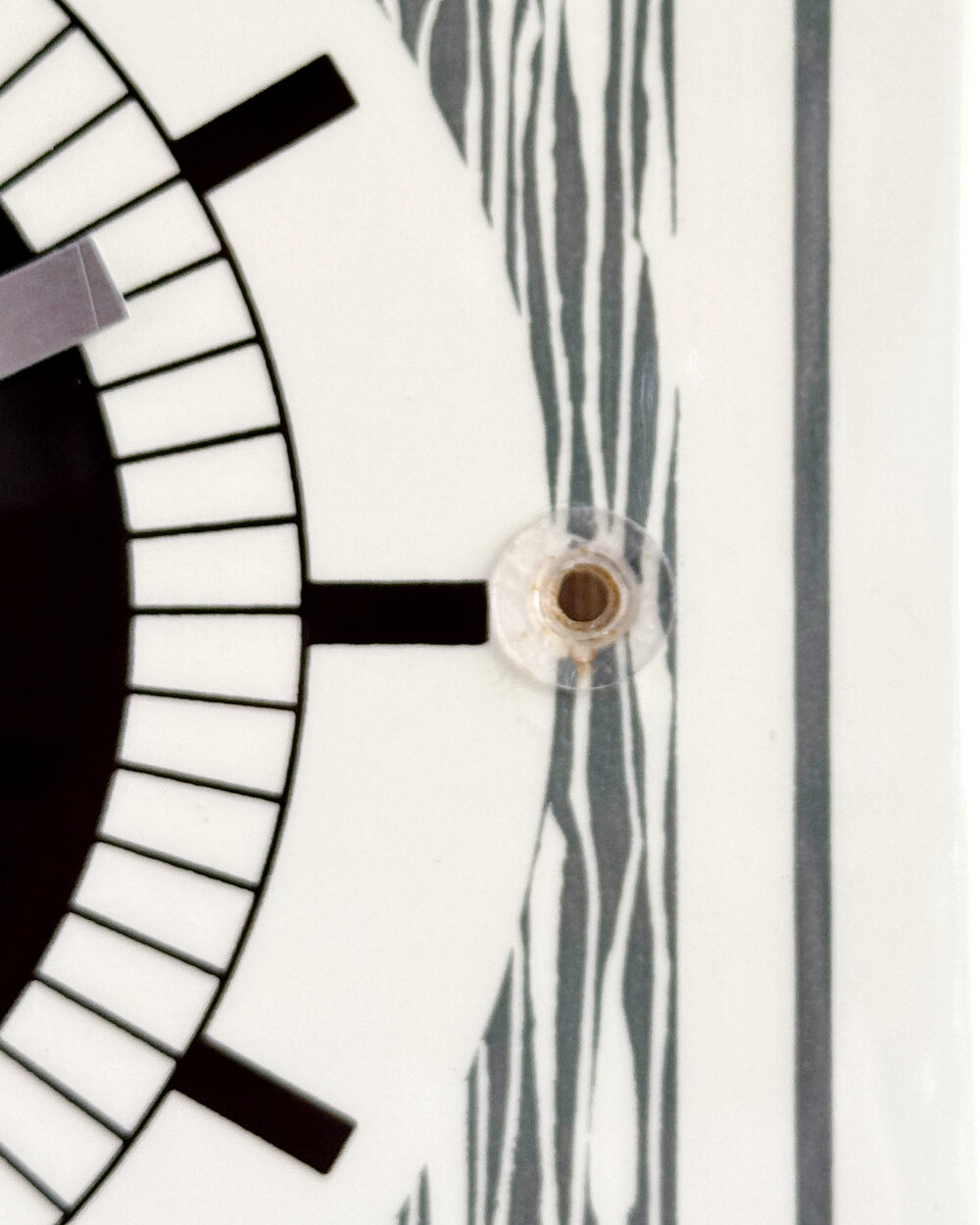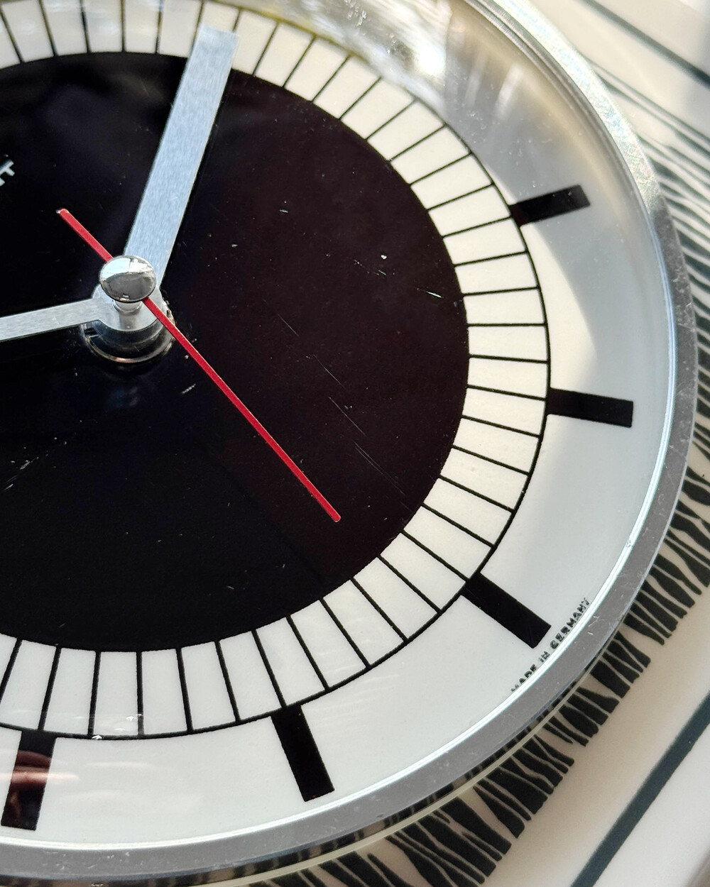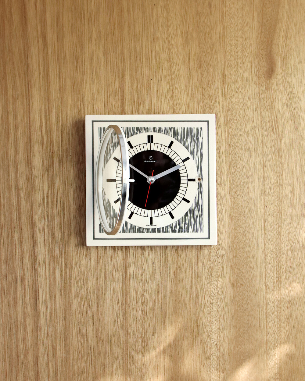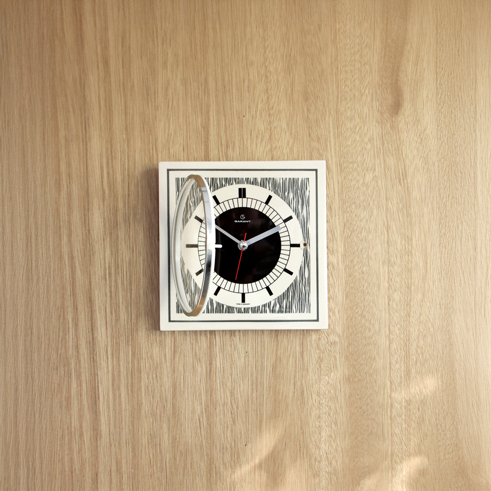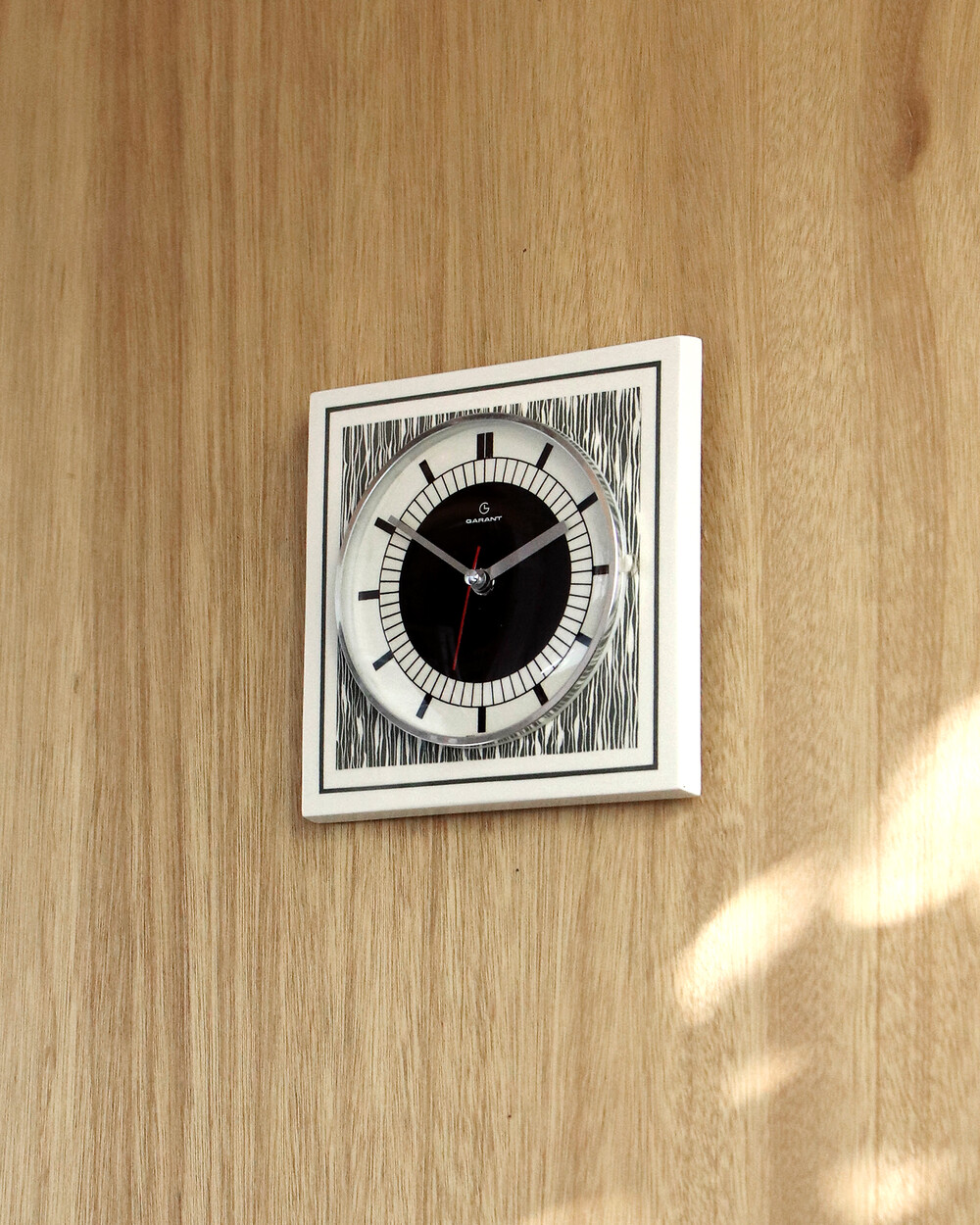 모노톤과 그래픽 패턴이 돋보이는 희소한 디자인의 1970년대 독일 GARANT 세라믹 벽시계입니다. 미니멀한 실루엣과 블랙·화이트 컬러 대비가 어우러져 공간에 세련된 감도를 더해줄 오브제로 추천 드립니다.