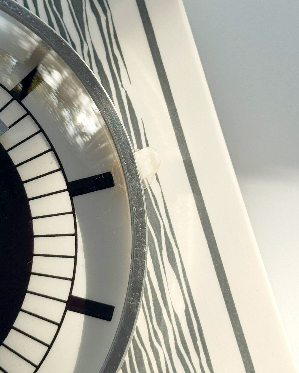 시계 중앙의 블랙 프린트 부분에 보이는 국소적인 칠 벗겨짐