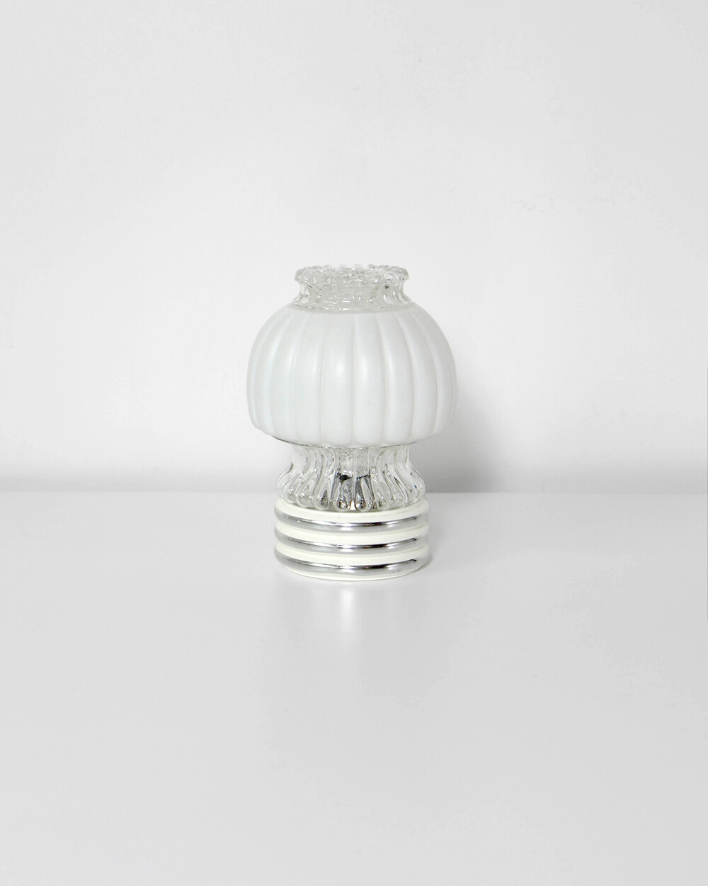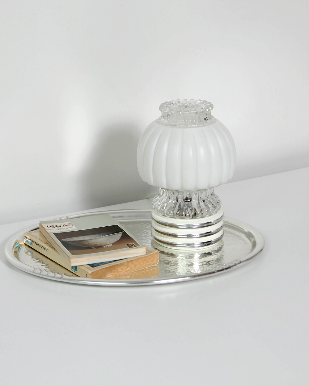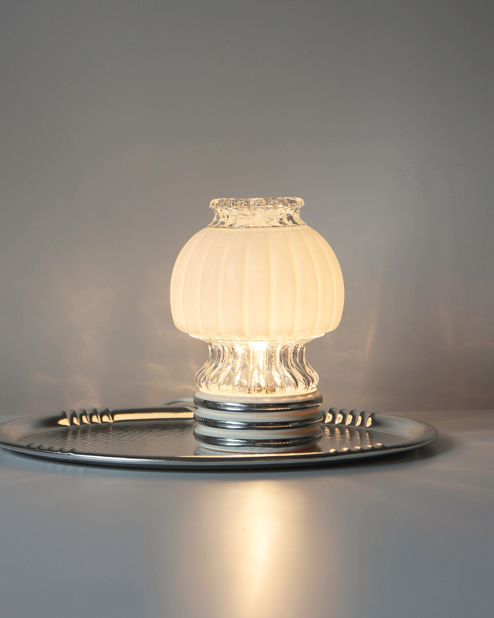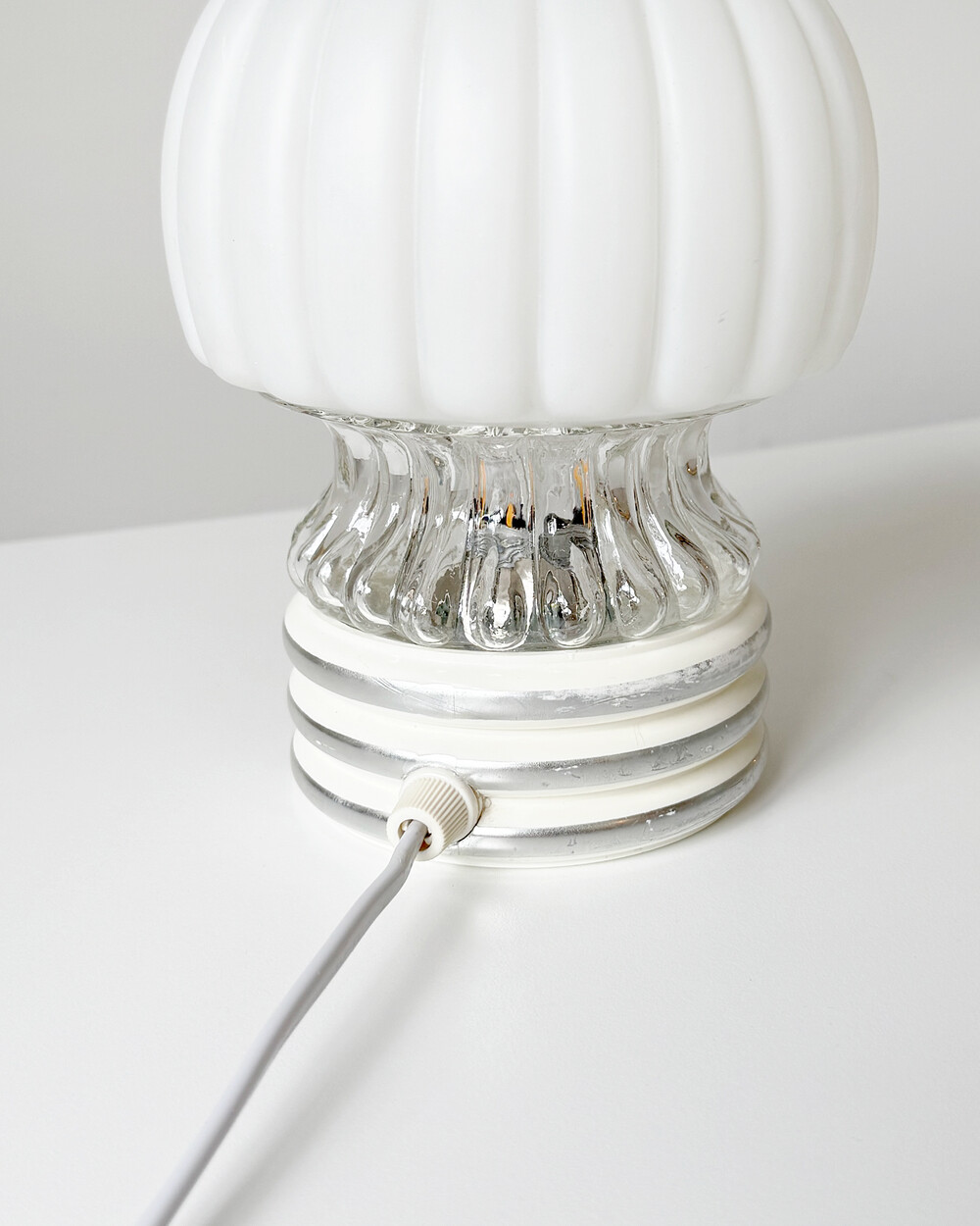 글라스와 플라스틱 소재의 램프 베이스에 보이는 자연스러운 세월감이 있지만 전체적으로 단정한 모습을 유지하고 있습니다.