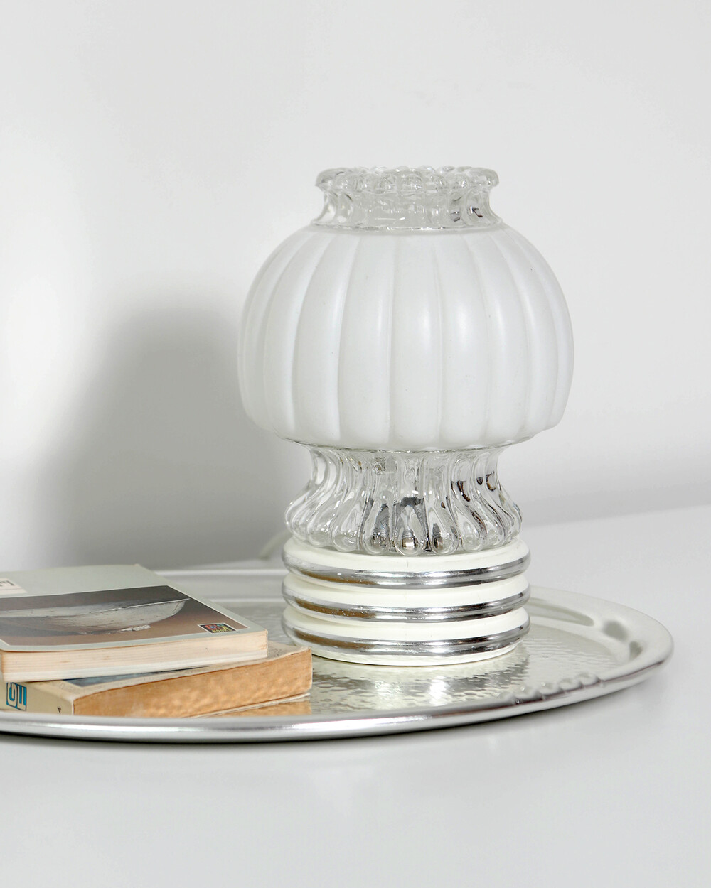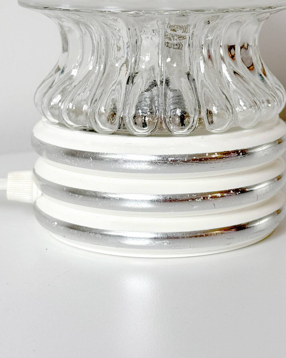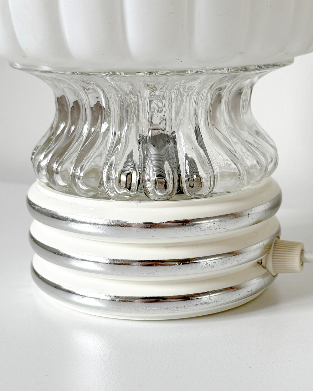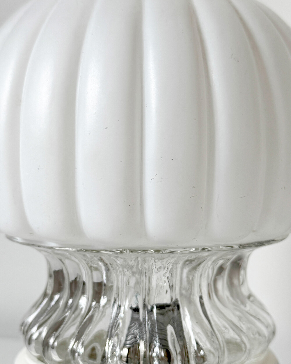 글라스와 플라스틱 소재의 램프 베이스에 보이는 자연스러운 세월감이 있지만 전체적으로 단정한 모습을 유지하고 있습니다.