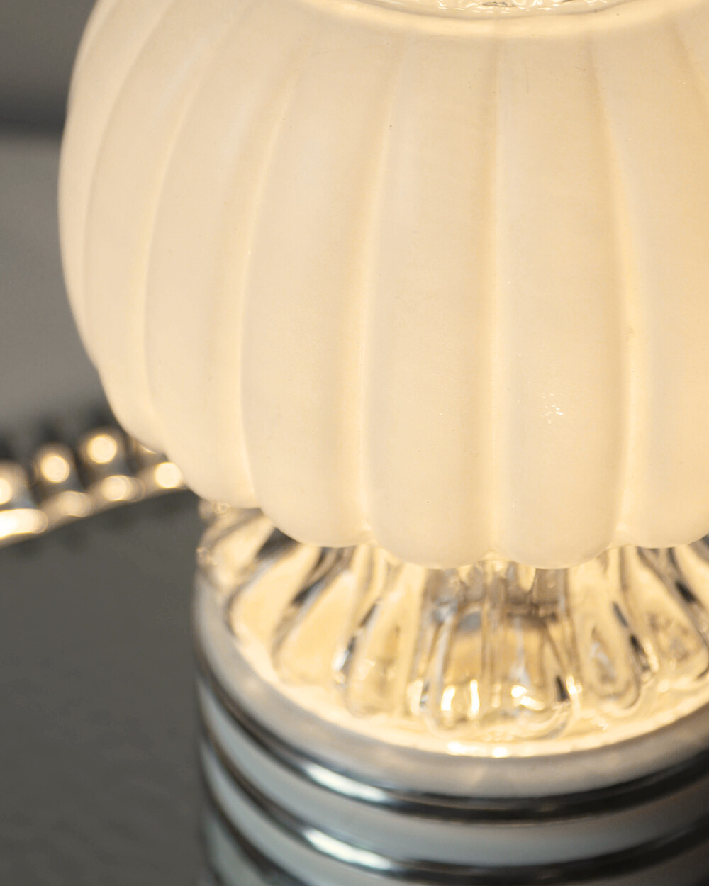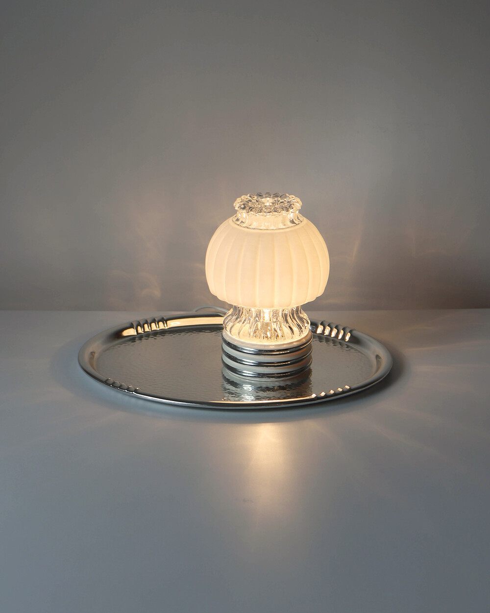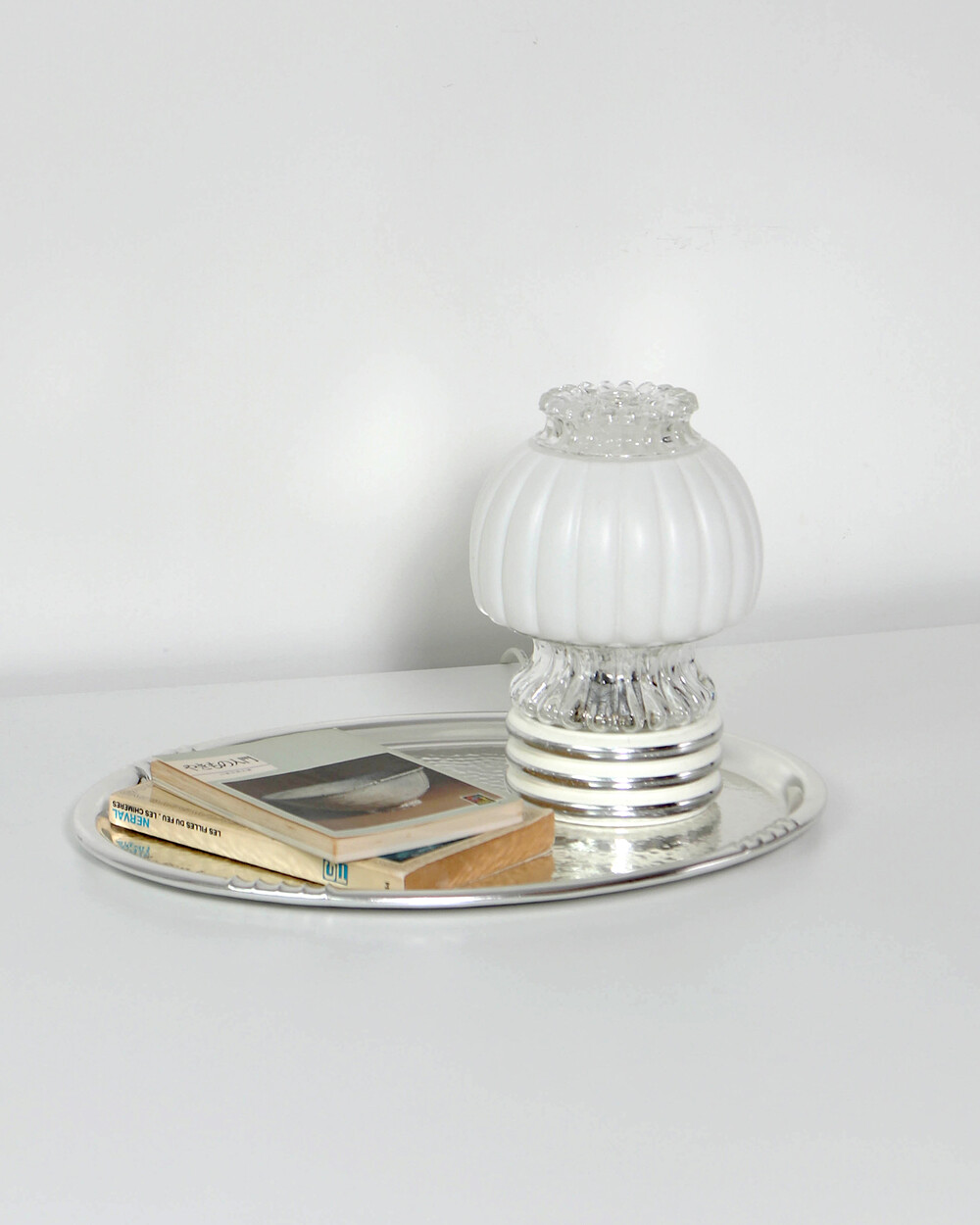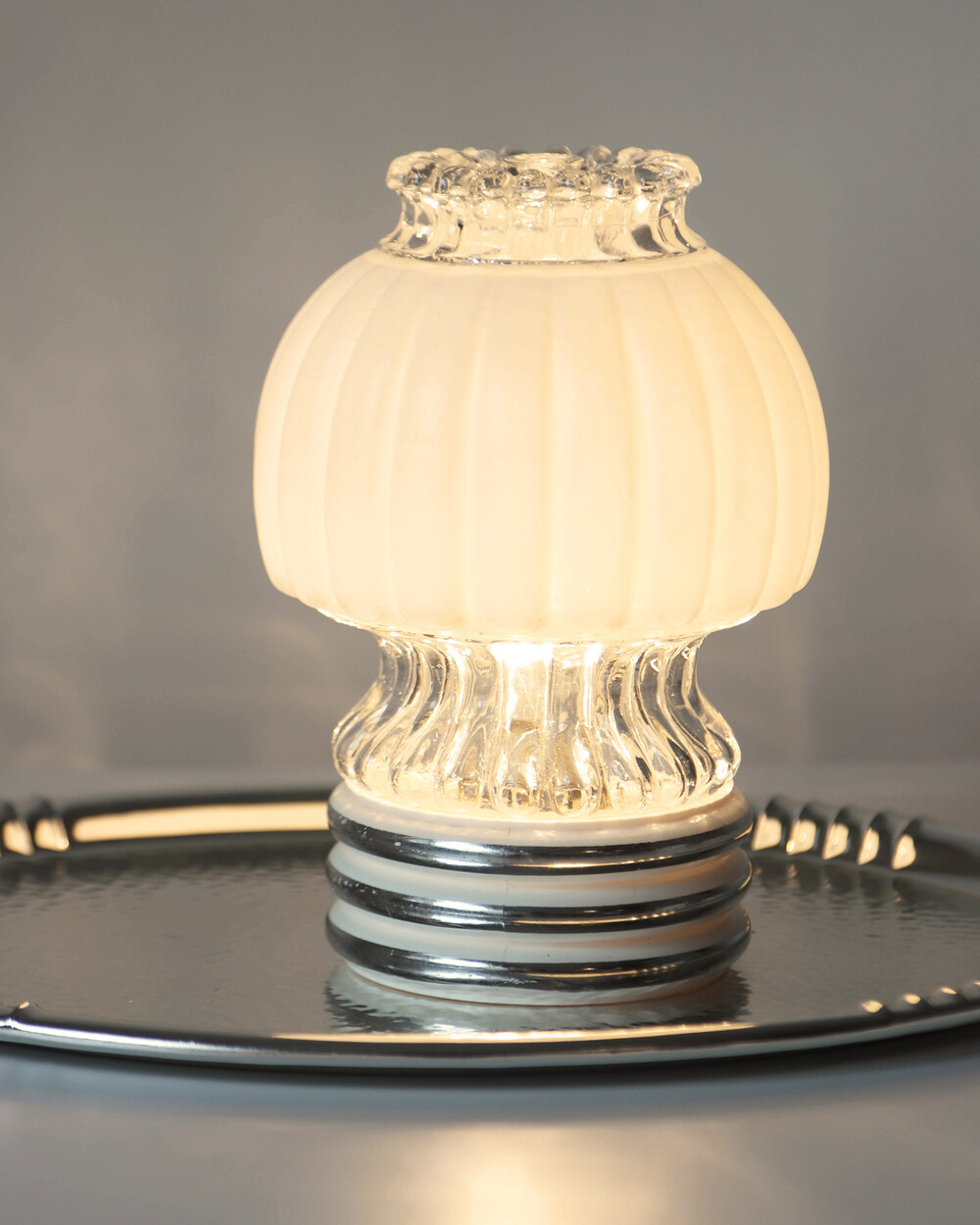 글라스와 플라스틱 소재의 램프 베이스에 보이는 자연스러운 세월감이 있지만 전체적으로 단정한 모습을 유지하고 있습니다.