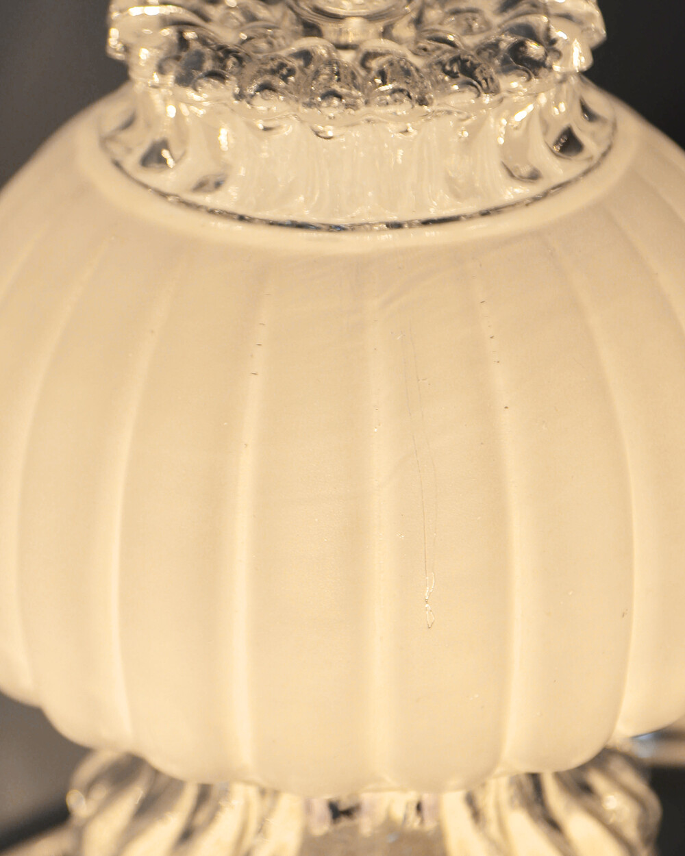 글라스 셰이드의 윗 부분은 전구로 인한 눈부심을 덜기 위해 화이트 컬러가 입혀져 있습니다.