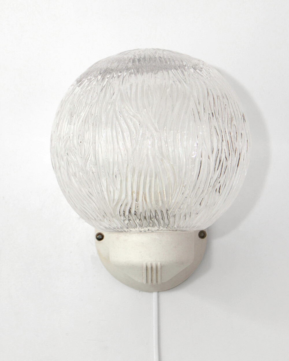1970s Italy Large Wall Lamp With Textured Glass Shade