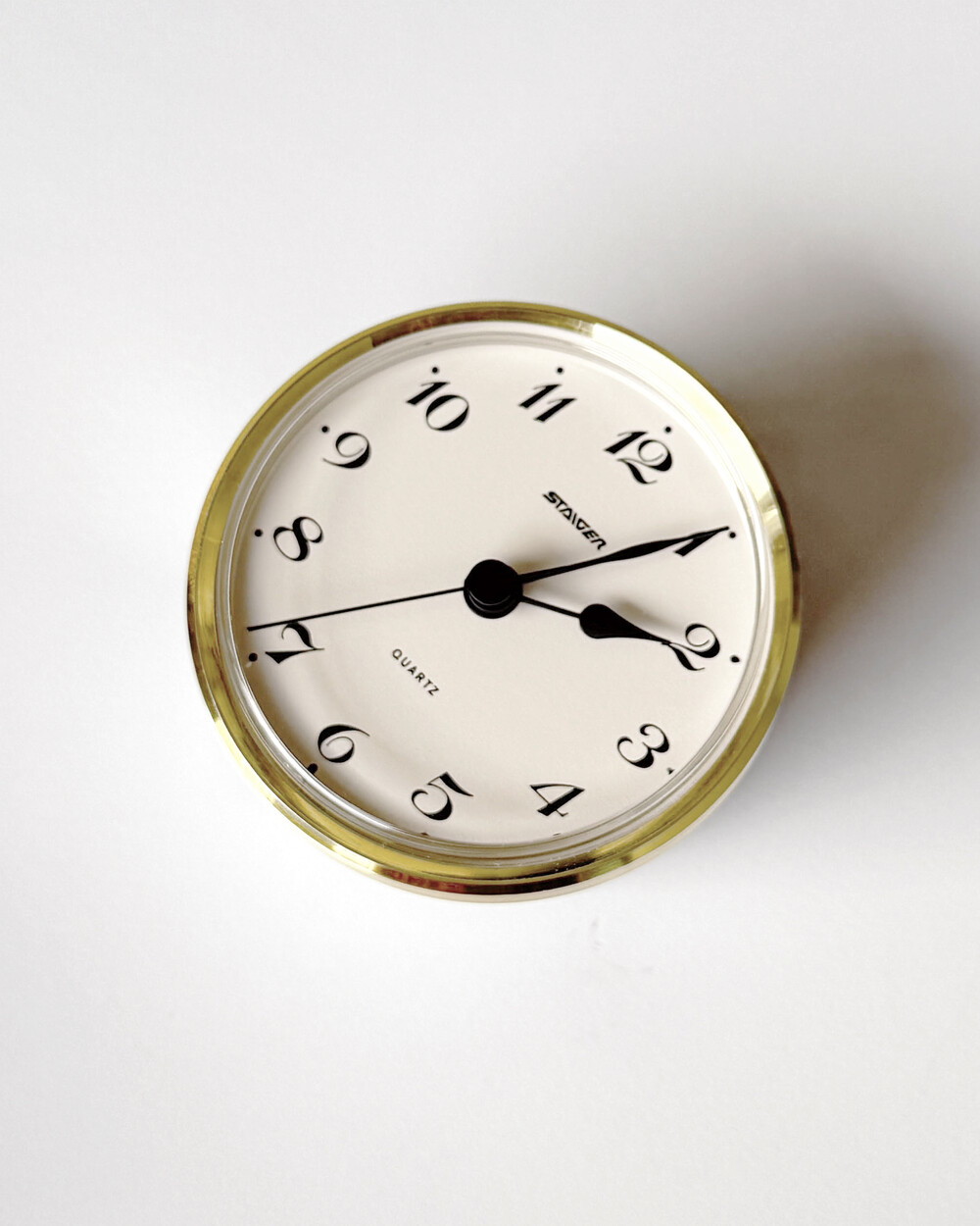 실사용감이 크게 느껴지지 않는 단정한 모습이 유지되어 있으며, 정상 작동되는 빈티지 탁상시계입니다.