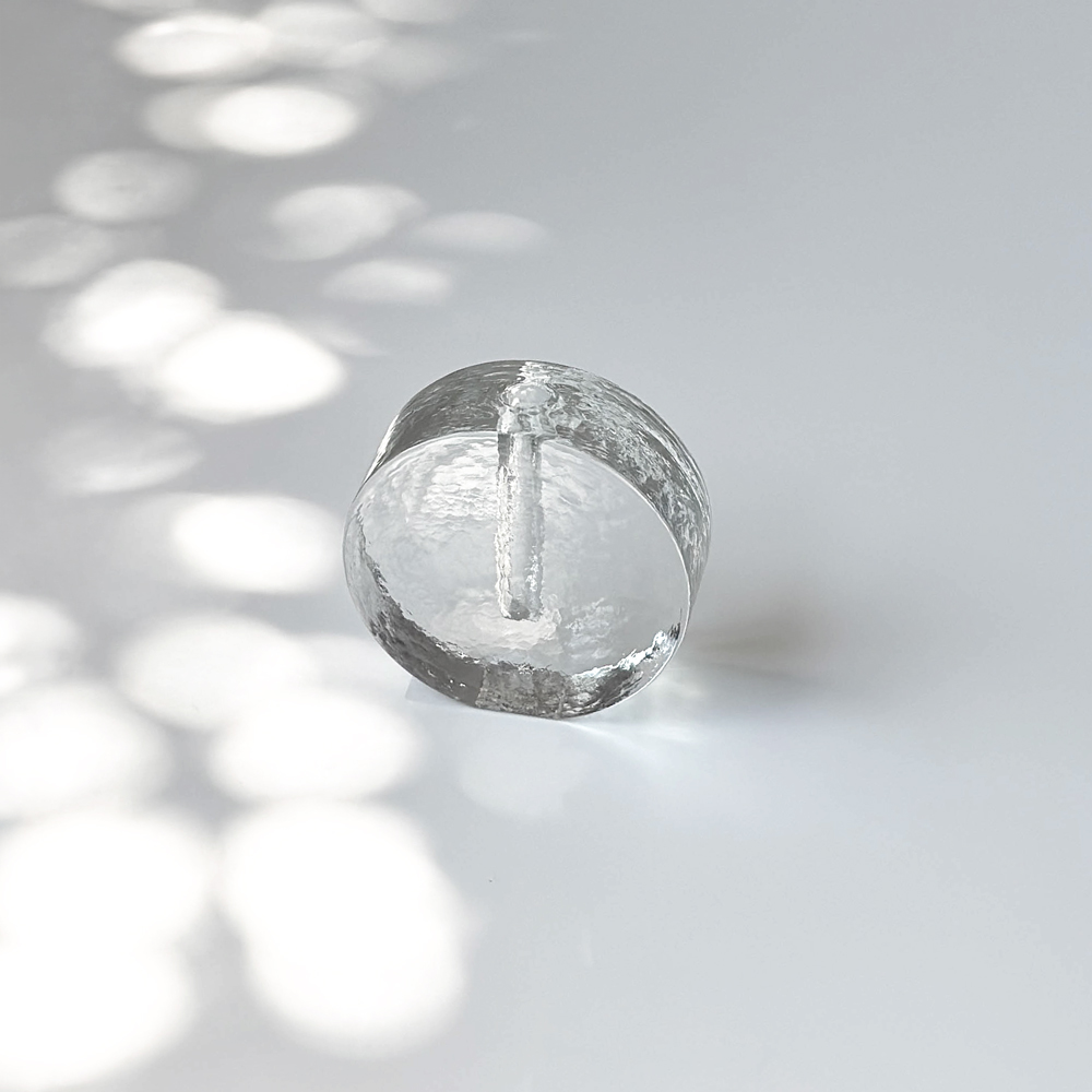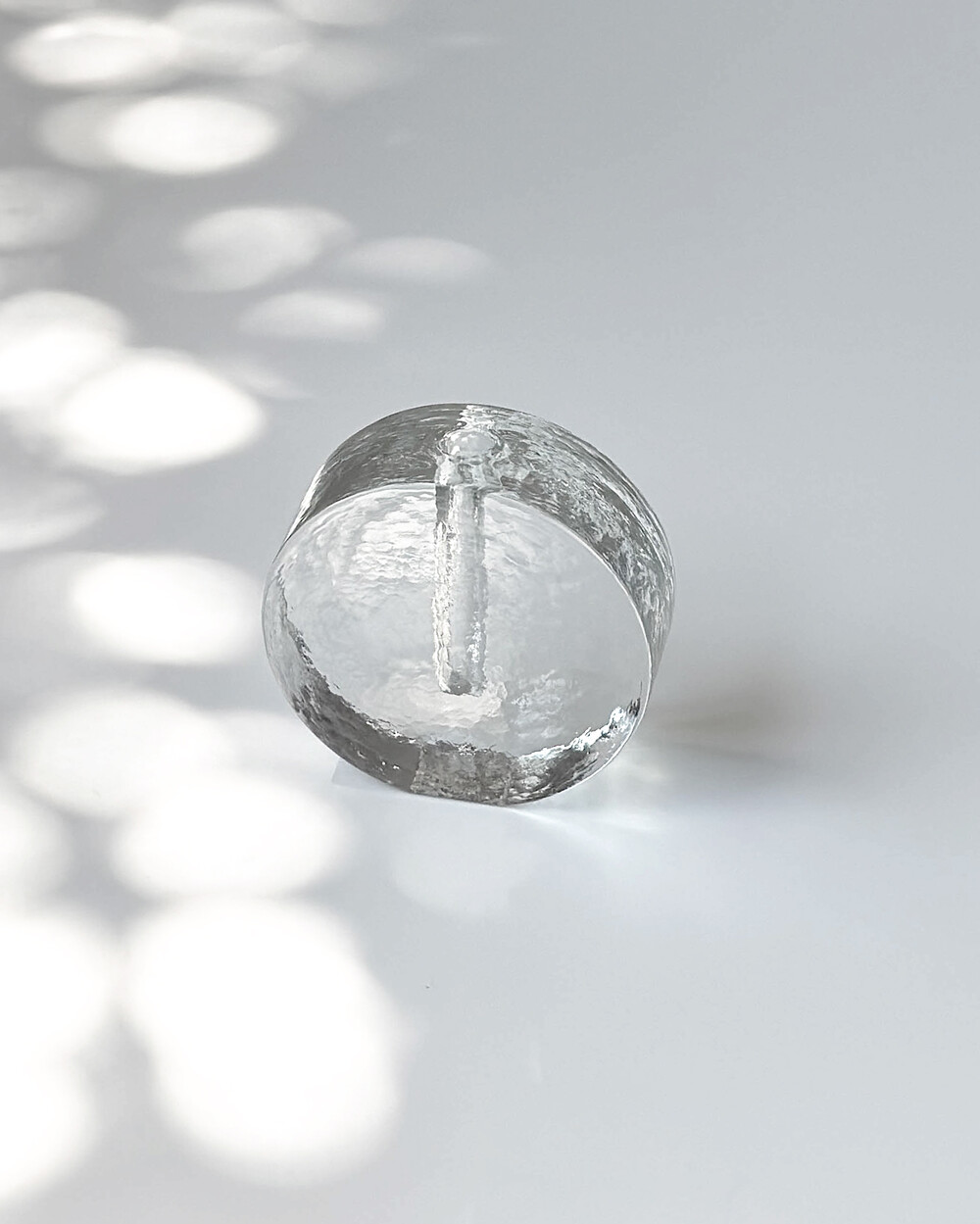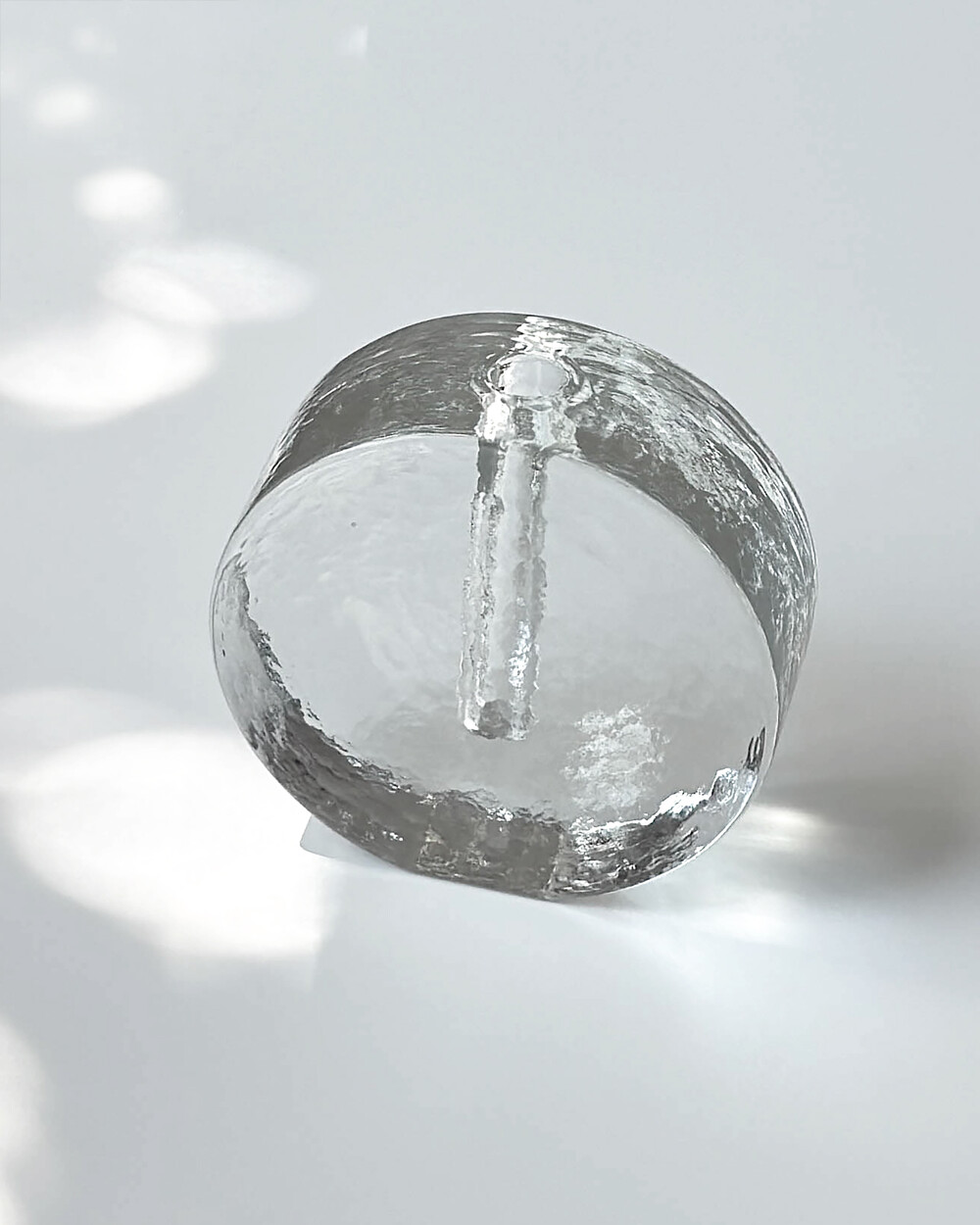 수작업으로 만들어진 글라스 오브제입니다. 기포, 유리 주름 등 제작과정에서 생기는 흔적이 일부 있으며, 가까이에서 보이는 옅은 세월감이 있습니다.