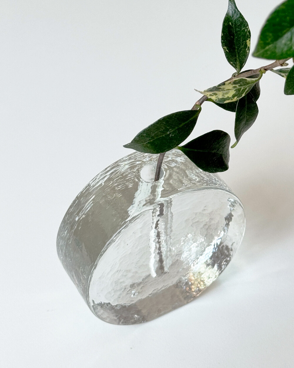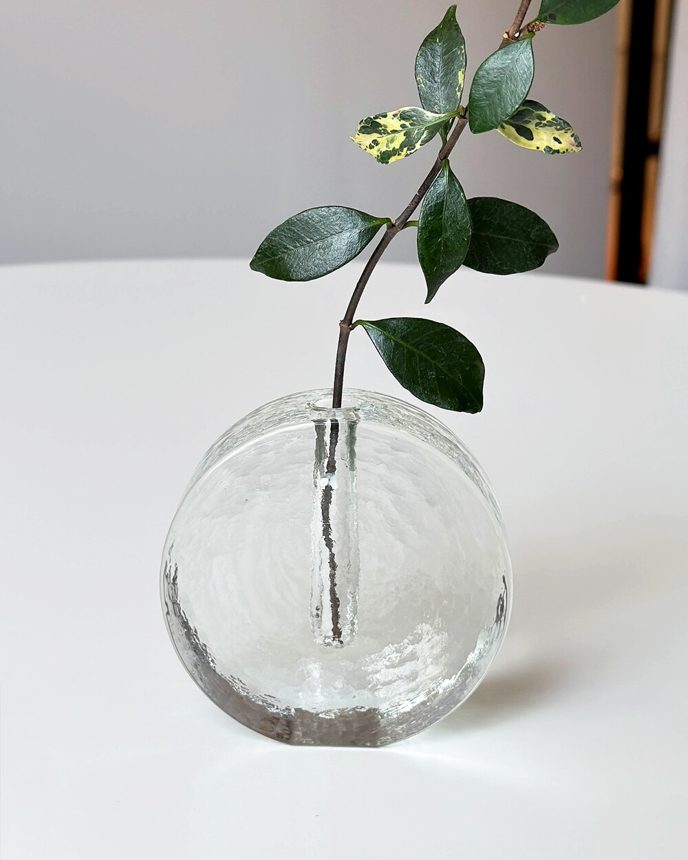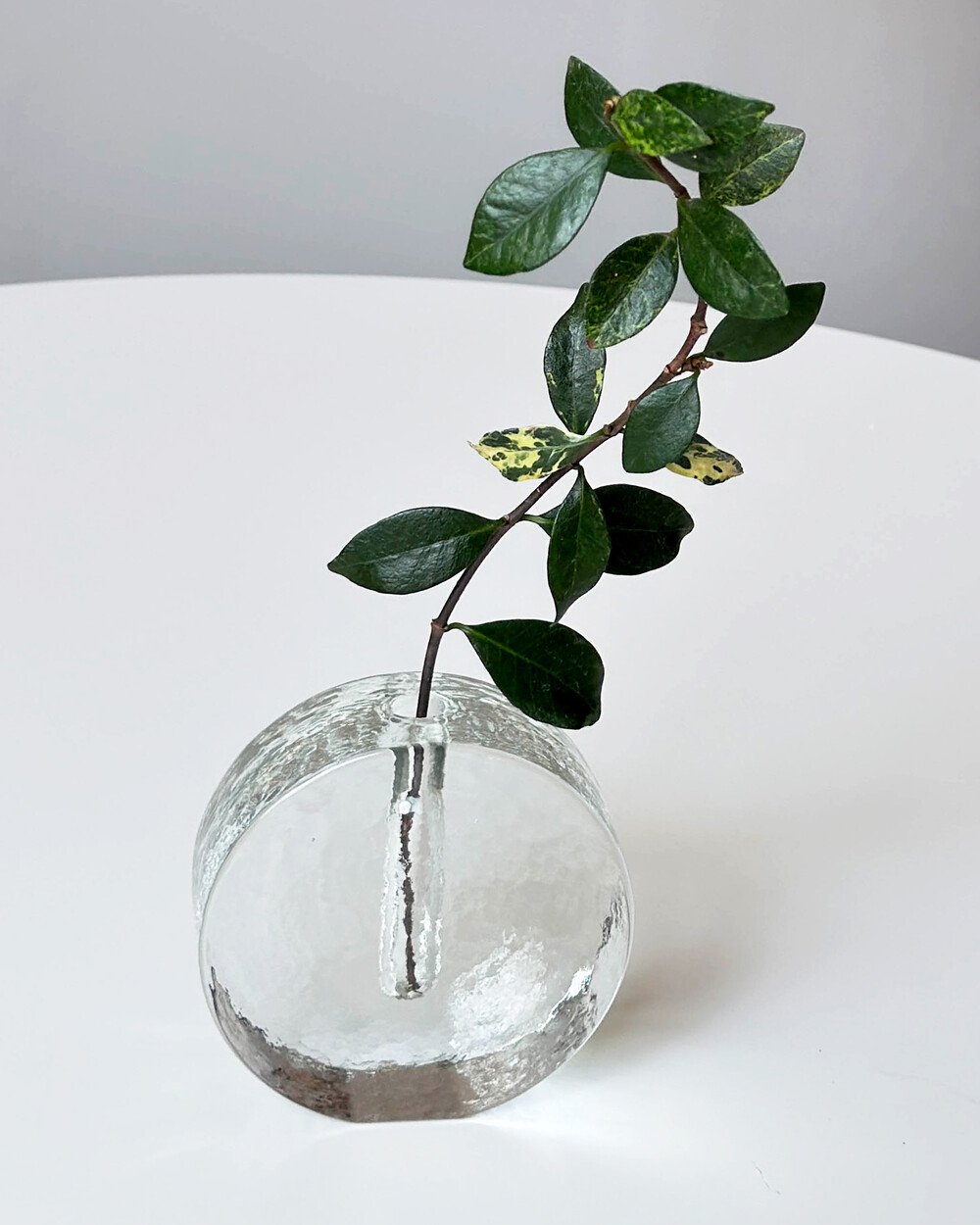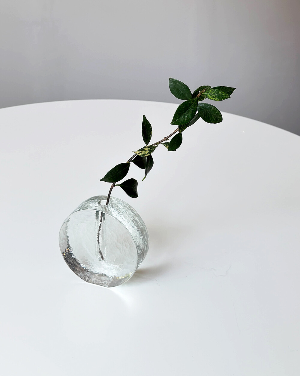 한 송이 또는 가지 한 줄을 꽂았을 때 형태와 여백이 또렷하게 드러나는 구조로, 오브제처럼 단정하게 놓이면서도 빛에 따라 표정이 달라지는 크리스탈 특유의 밀도가 느껴집니다.