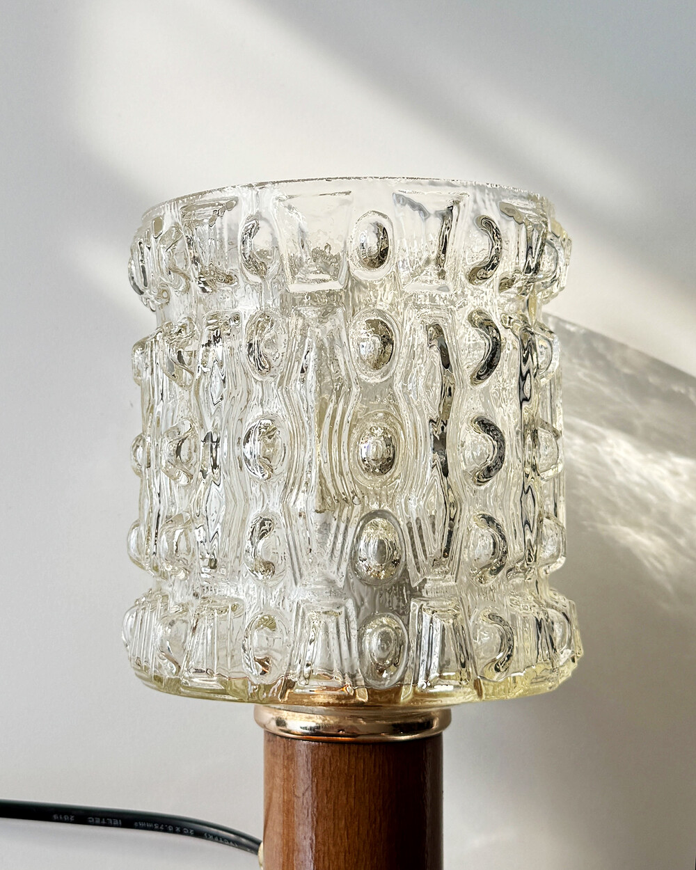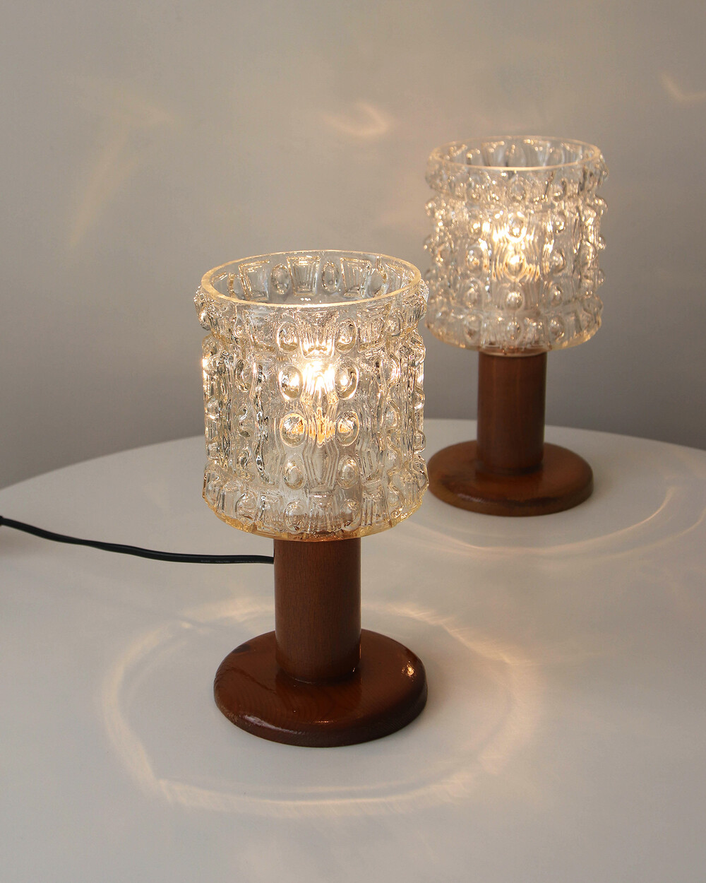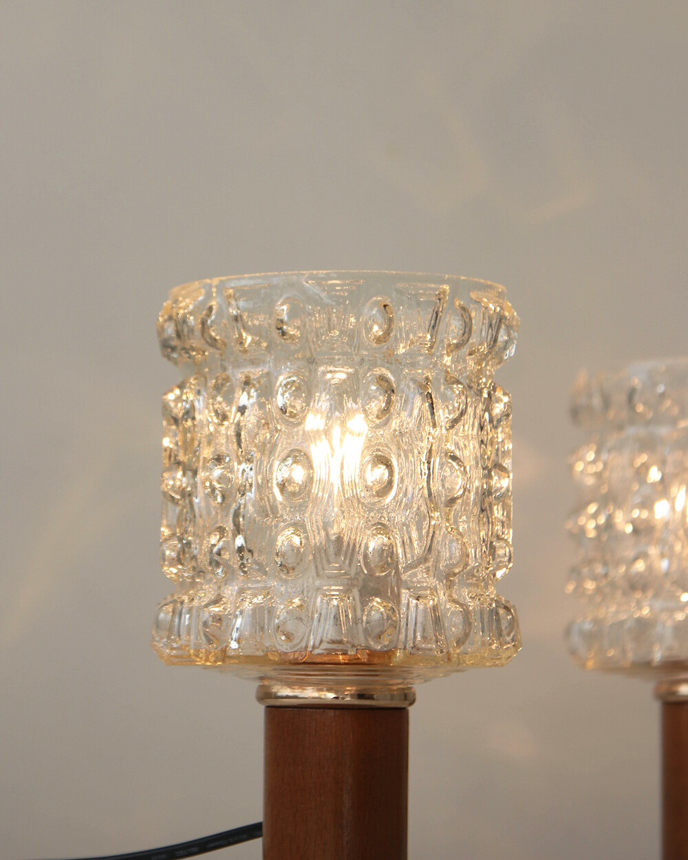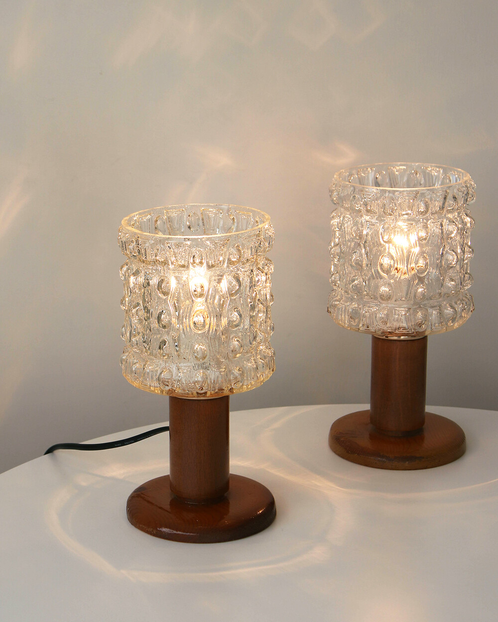 글라스 셰이드는 투명한 컬러를 띄고 있으며, 입고된 두 램프 중 우드 베이스에 세월감이 비교적 남아 있습니다.