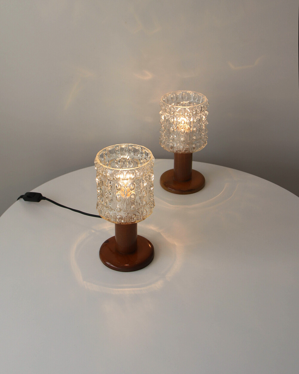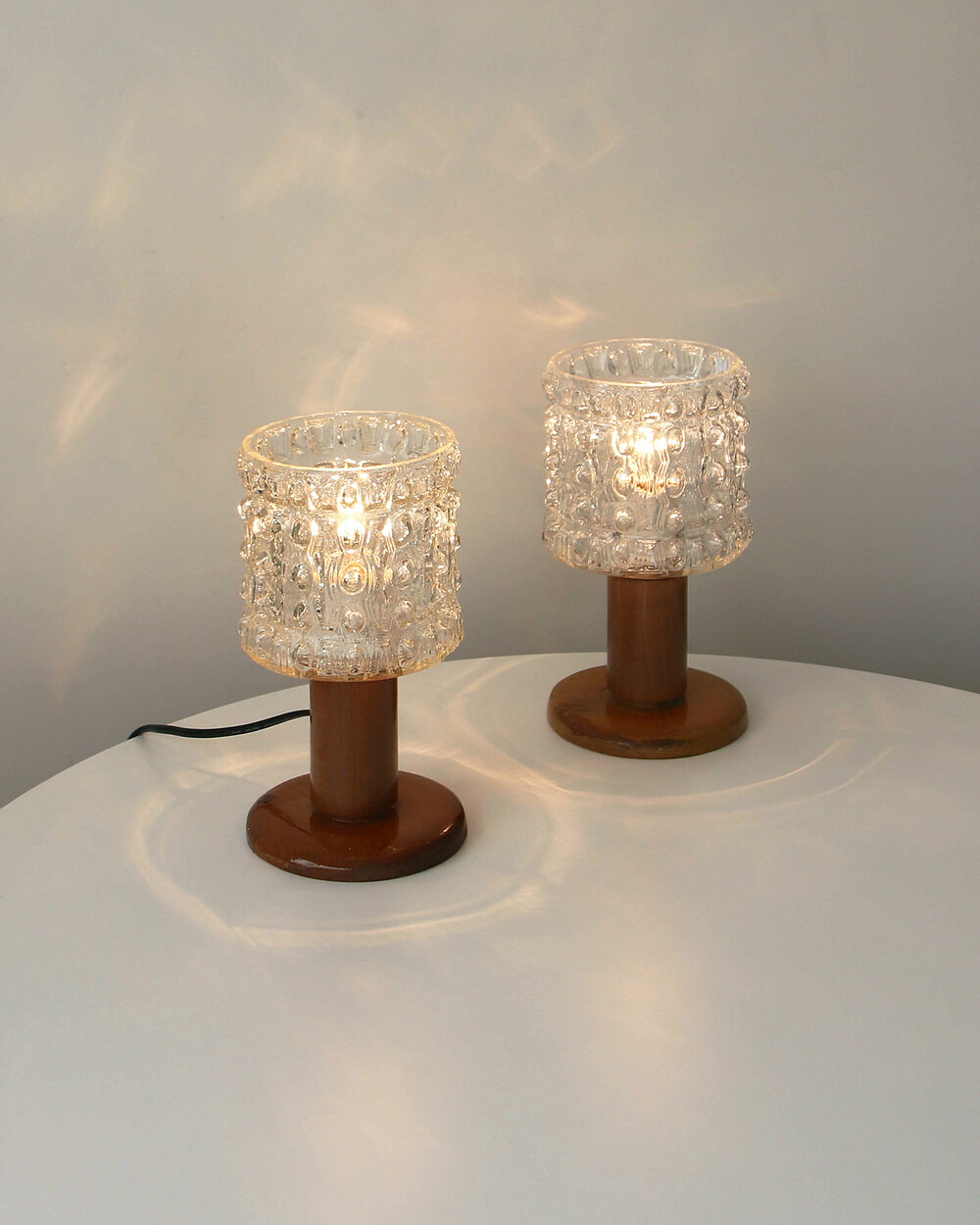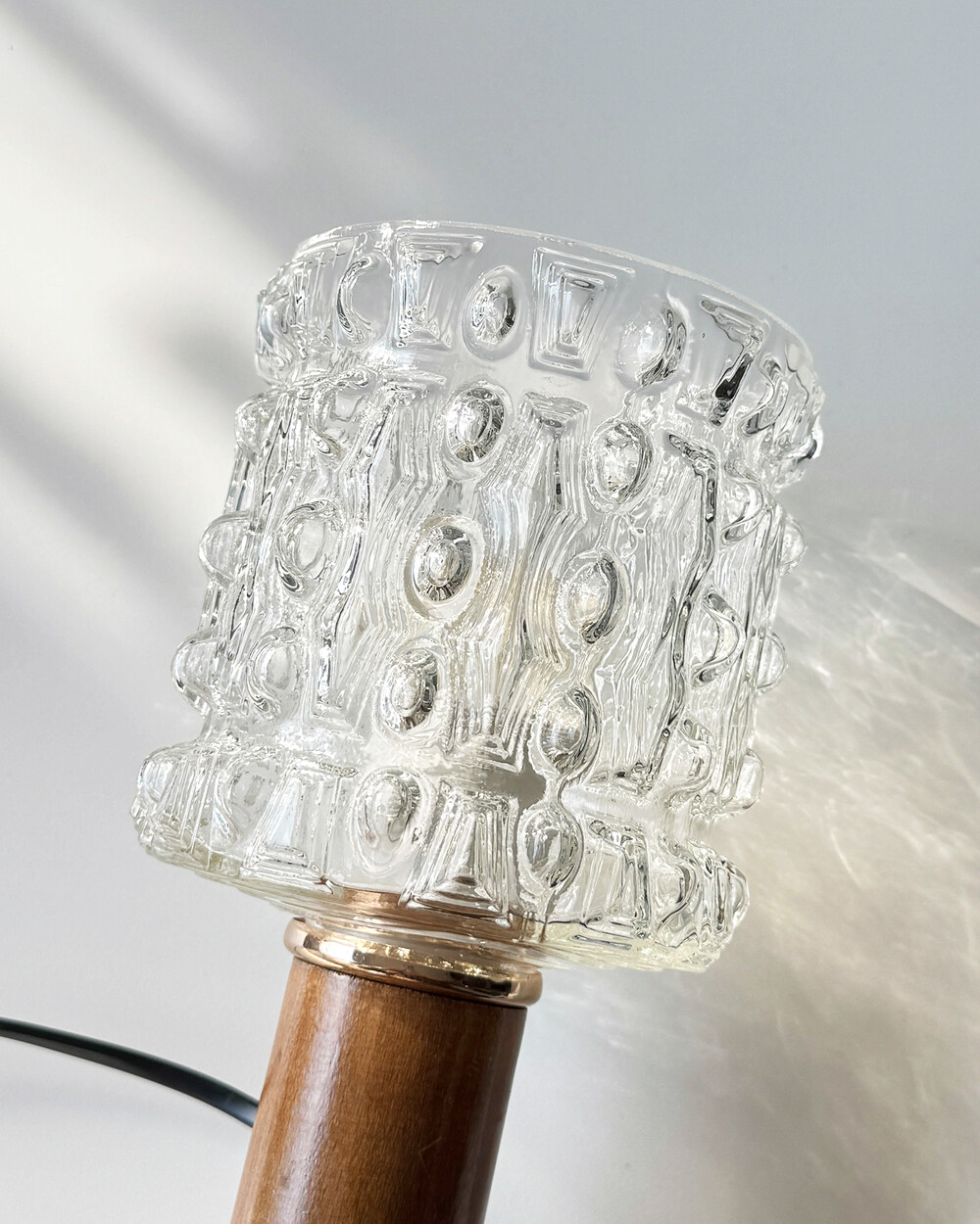 글라스 셰이드는 투명한 컬러를 띄고 있으며, 입고된 두 램프 중 우드 베이스에 세월감이 비교적 남아 있습니다.