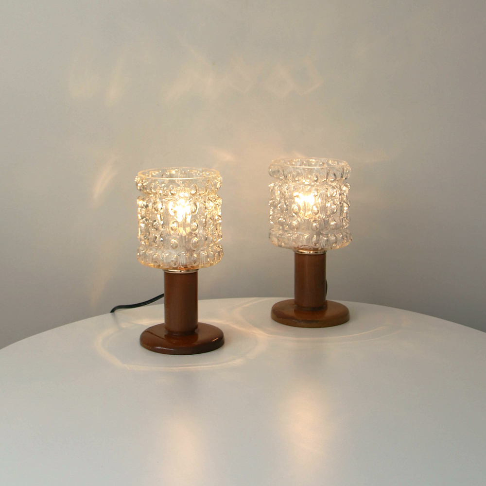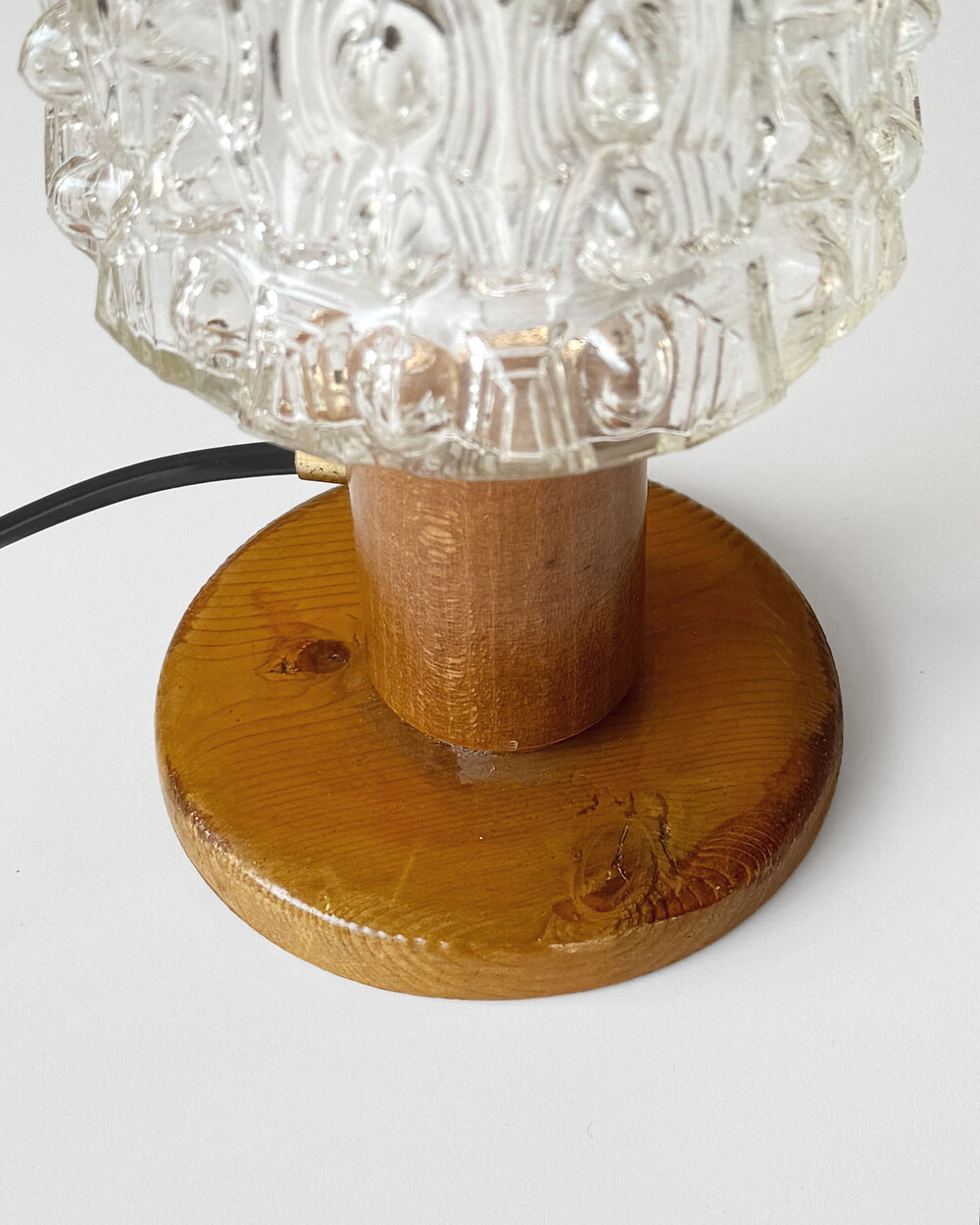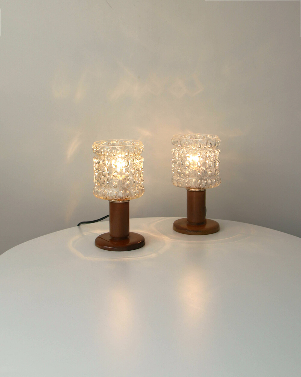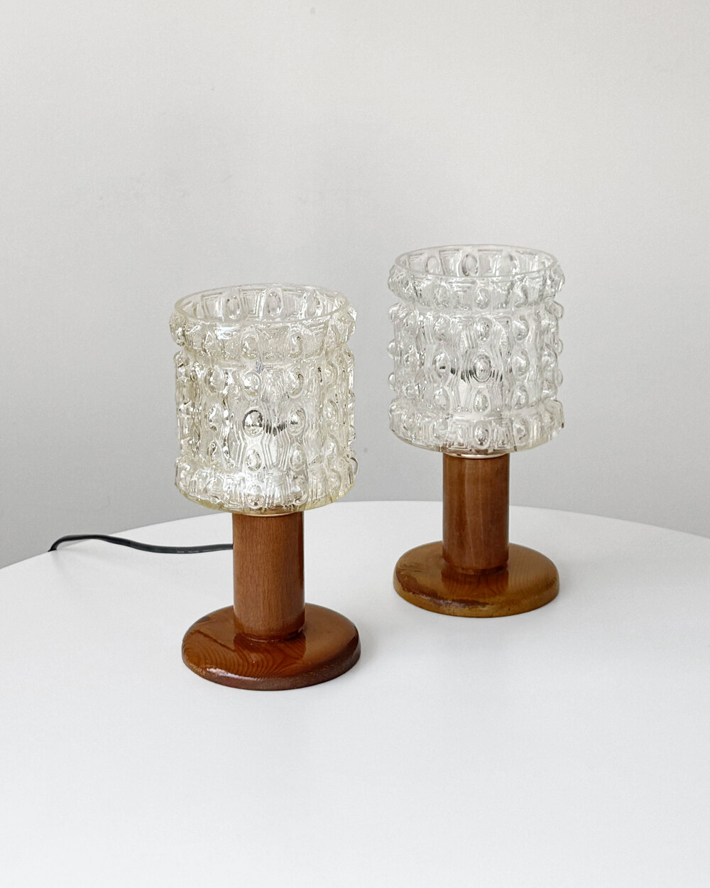 글라스 셰이드는 투명한 컬러를 띄고 있으며, 입고된 두 램프 중 우드 베이스에 세월감이 비교적 남아 있습니다.