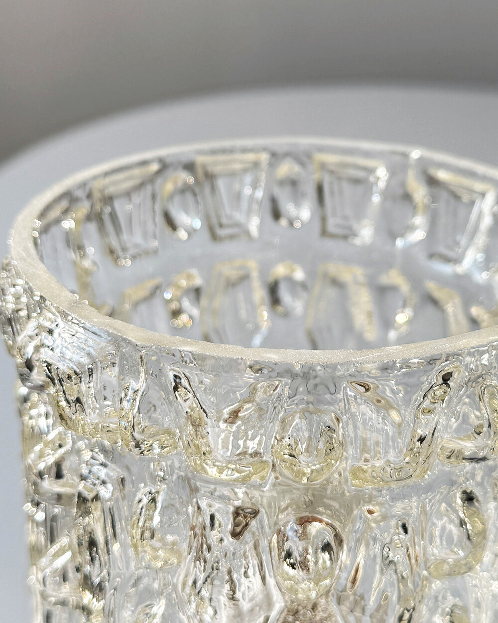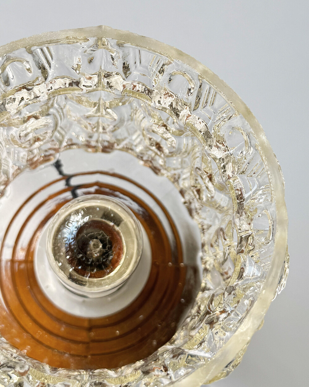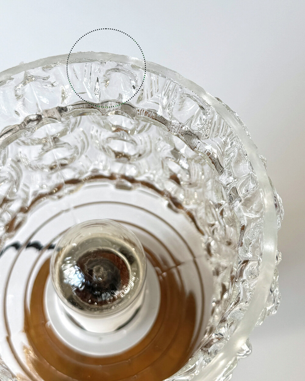 투명한 글라스 셰이드에는 기하학적인 입체 패턴이 장식되어 있습니다.