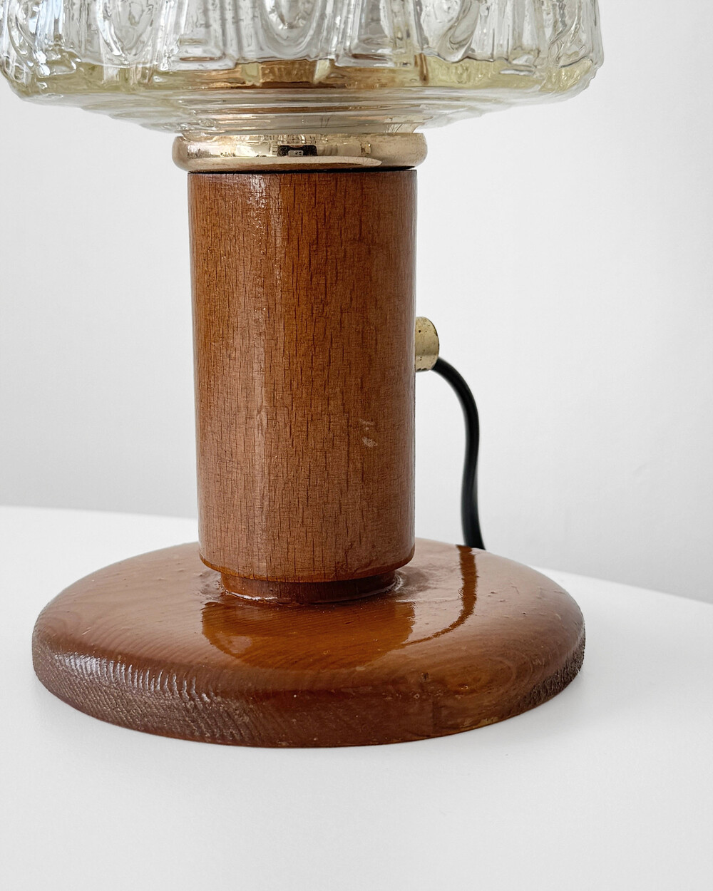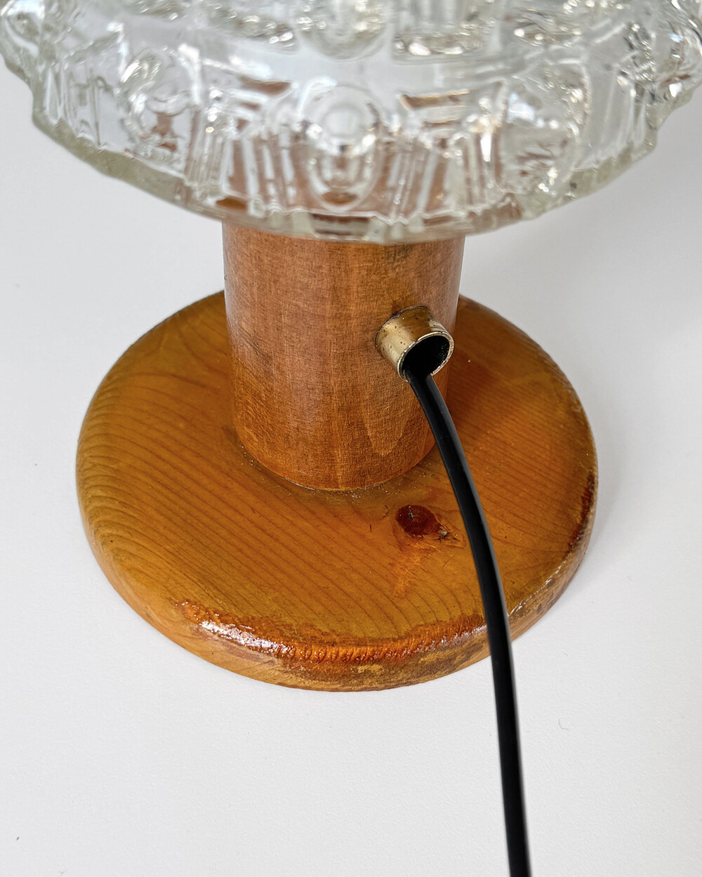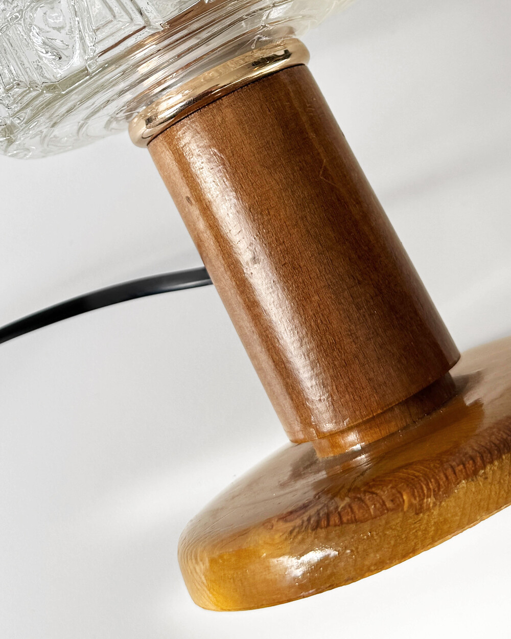 글라스 셰이드는 옅은 노란빛이 감도는 투명한 컬러를 띄고 있으며, 입고된 두 램프 중 우드 베이스의 컨디션이 비교적 단정한 편입니다.
