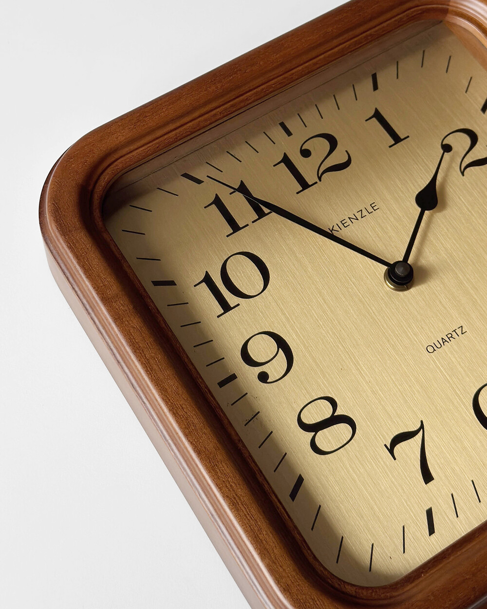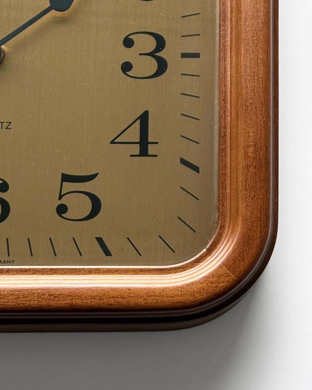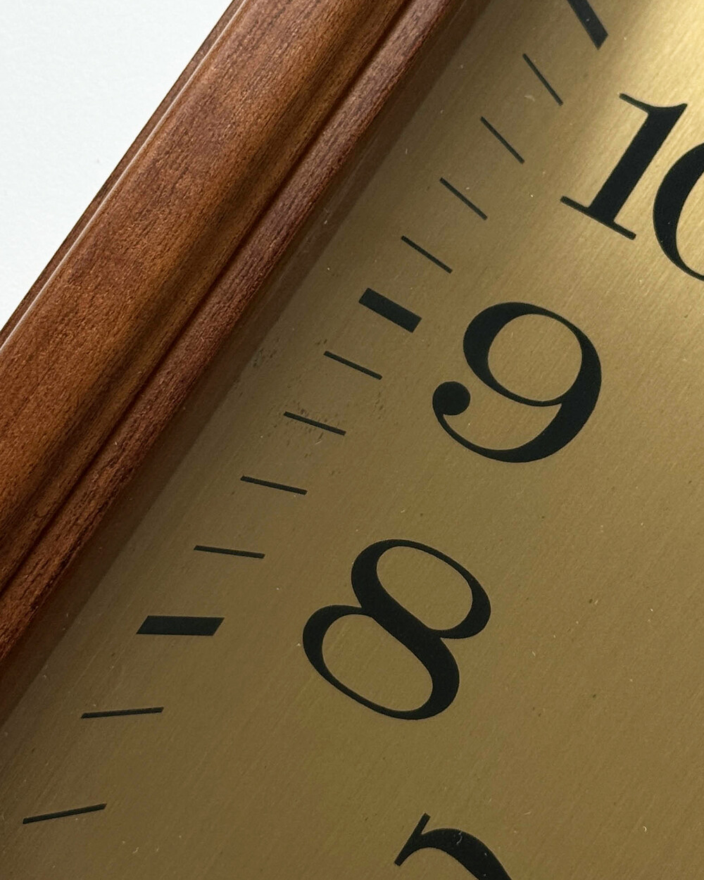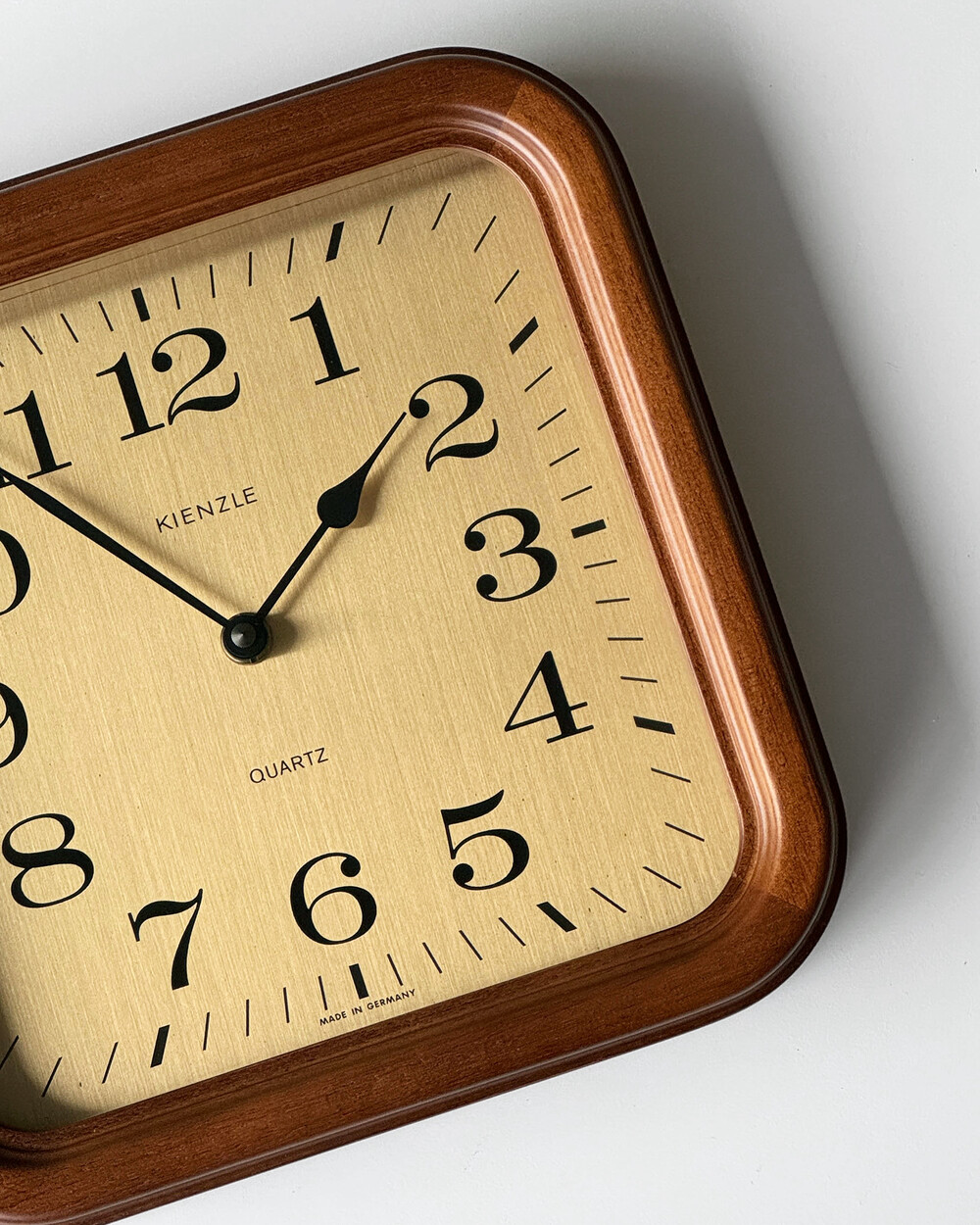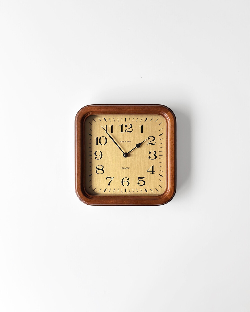 클래식한 아름다움을 지닌 브라운 우드 프레임과 브라스 메탈 다이얼이 어우러진 1970년대 빈티지 벽시계입니다. 1822년 설립된 독일의 시계 브랜드 Kienzle에서 제작된 모델로, 박스에 보관된 미사용 상태로 입고되었습니다. 부드러운 곡선으로 이어지는 단정한 실루엣과 시간의 깊이가 느껴지는 소재가 조화를 이루는 디자인입니다.