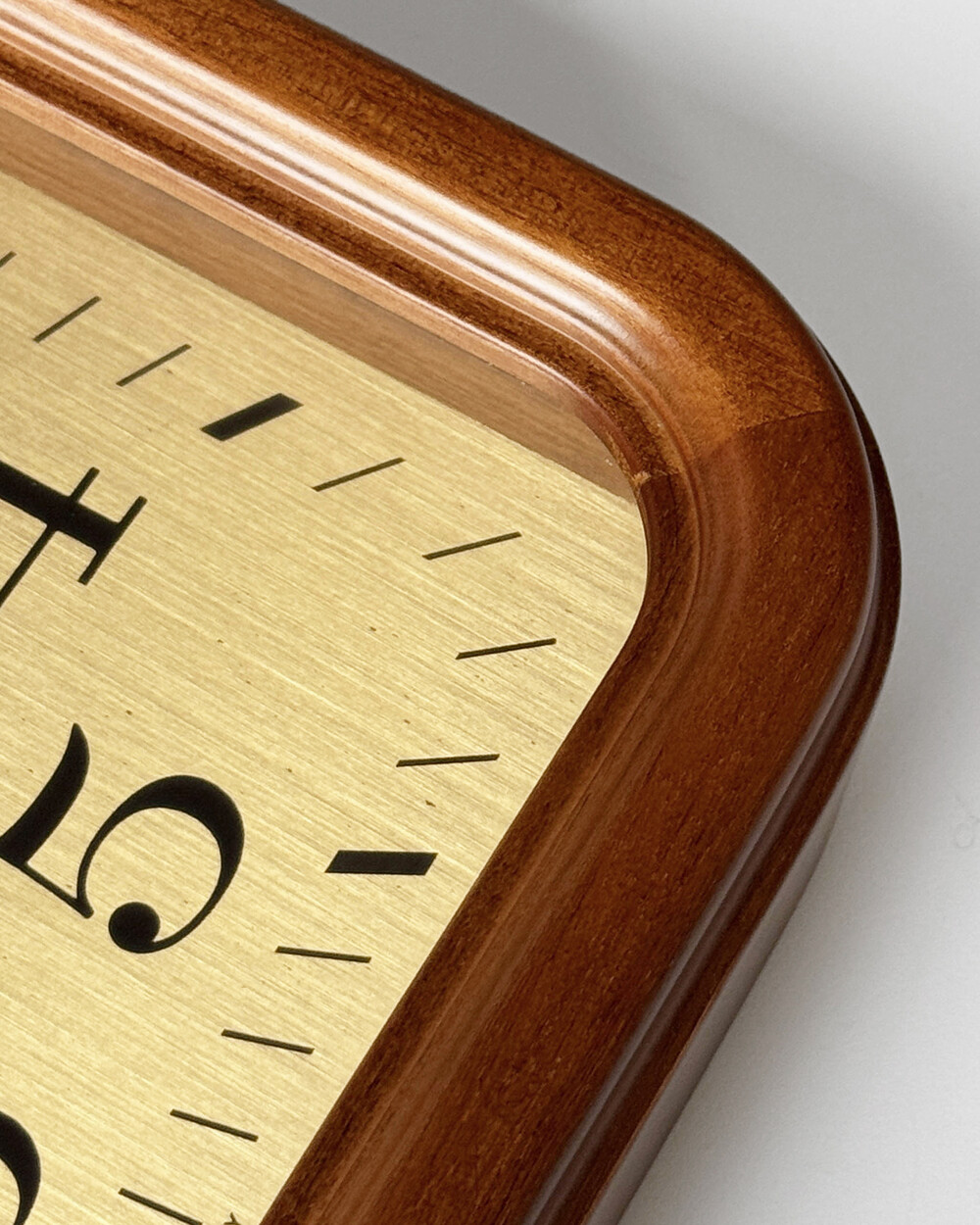 클래식한 디자인의 인덱스, 중앙의 메탈 시계판은 차분한 골드 컬러를 띄고 있습니다