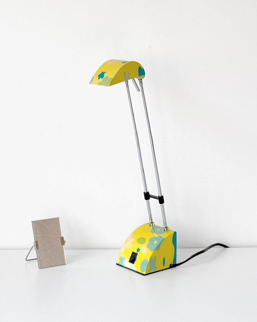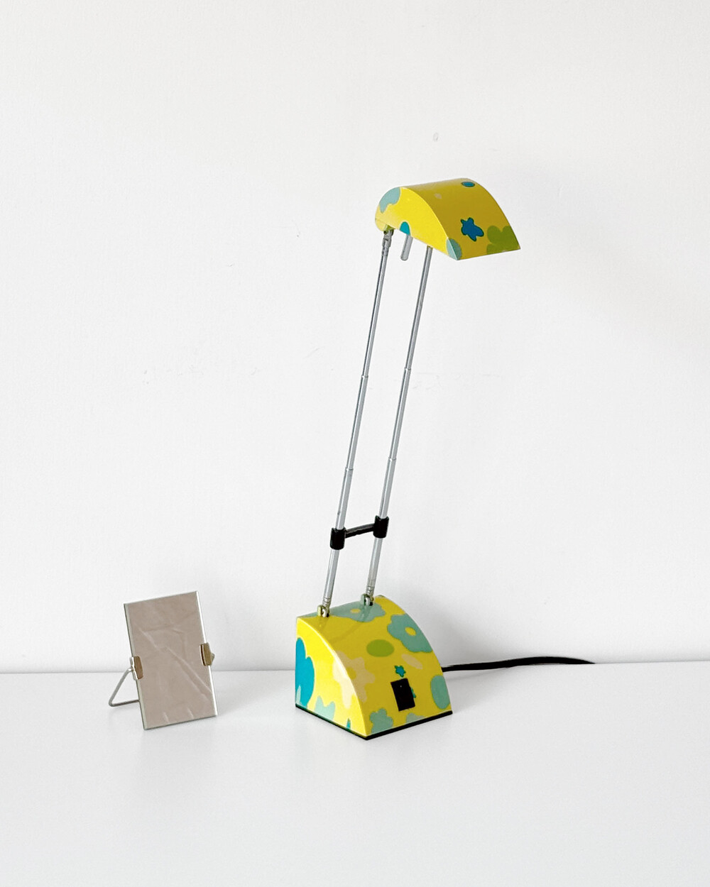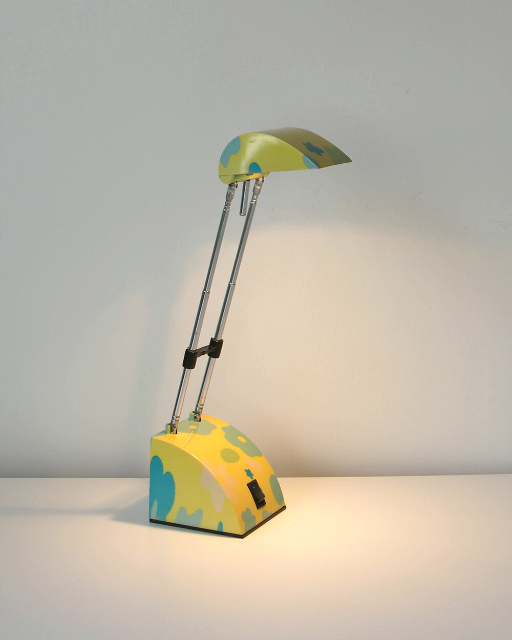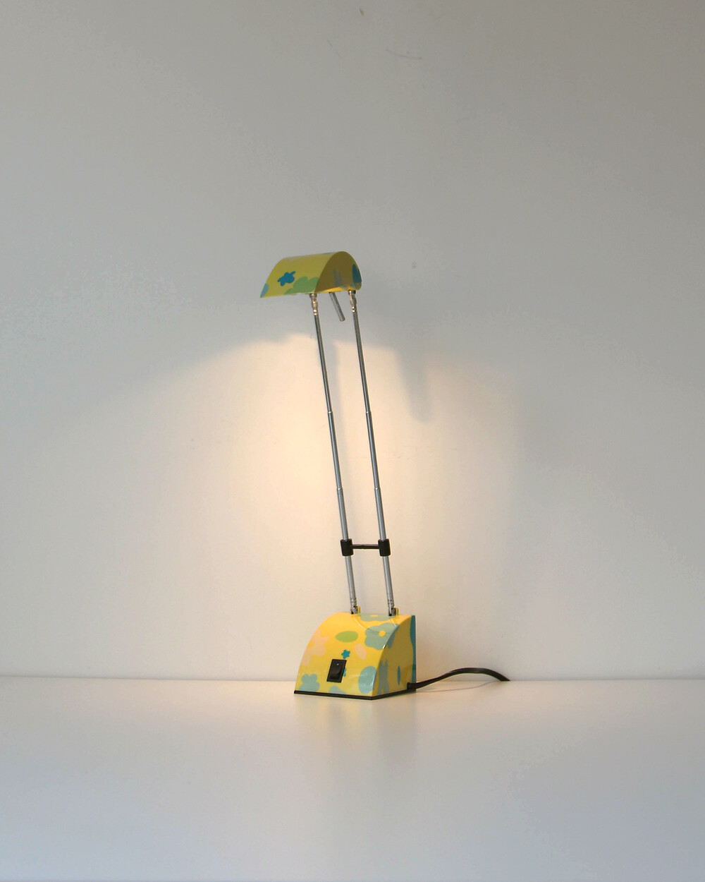 팝아트 무드의 플라워 패턴과 경쾌한 개성이 돋보이는 1980년대 독일 데스크 램프입니다