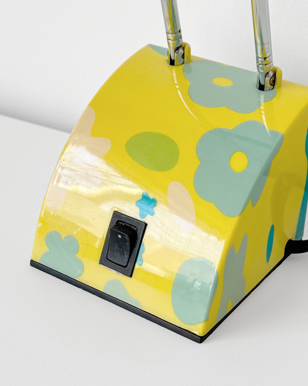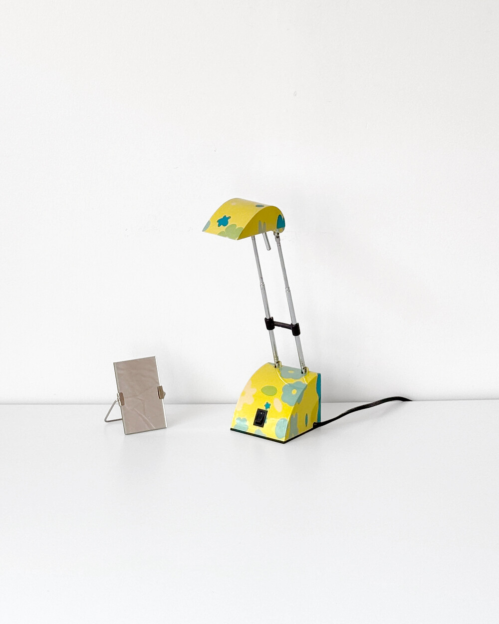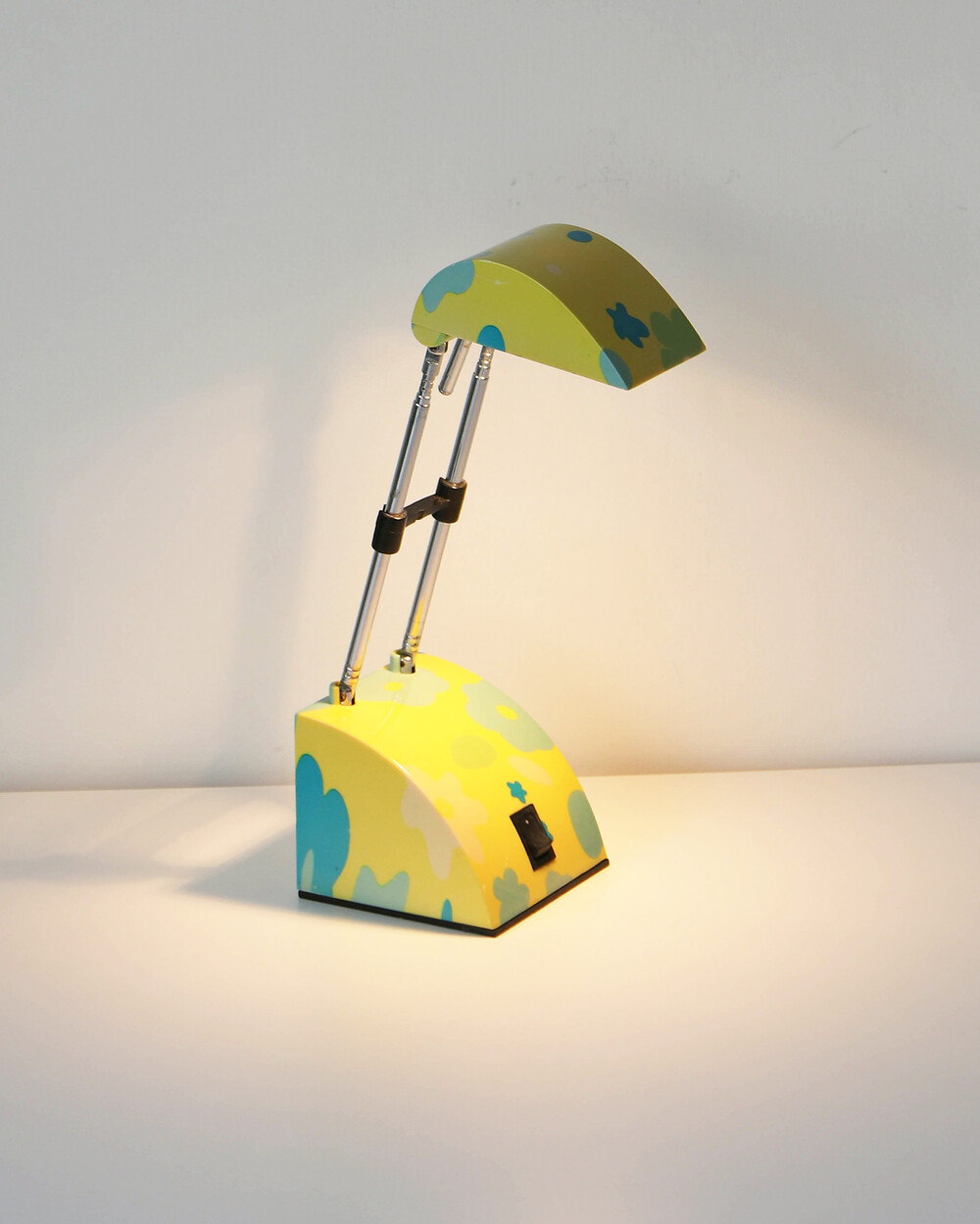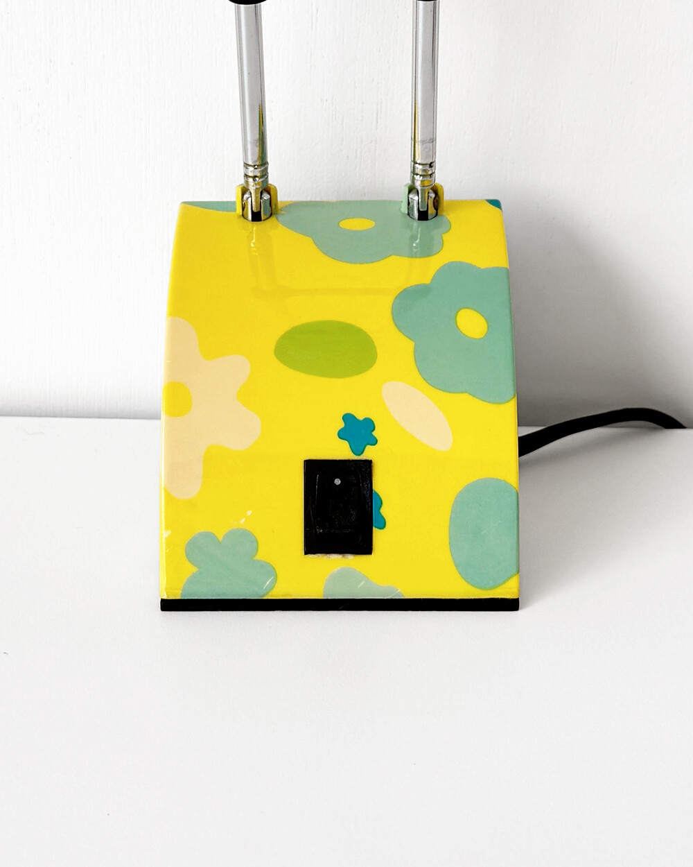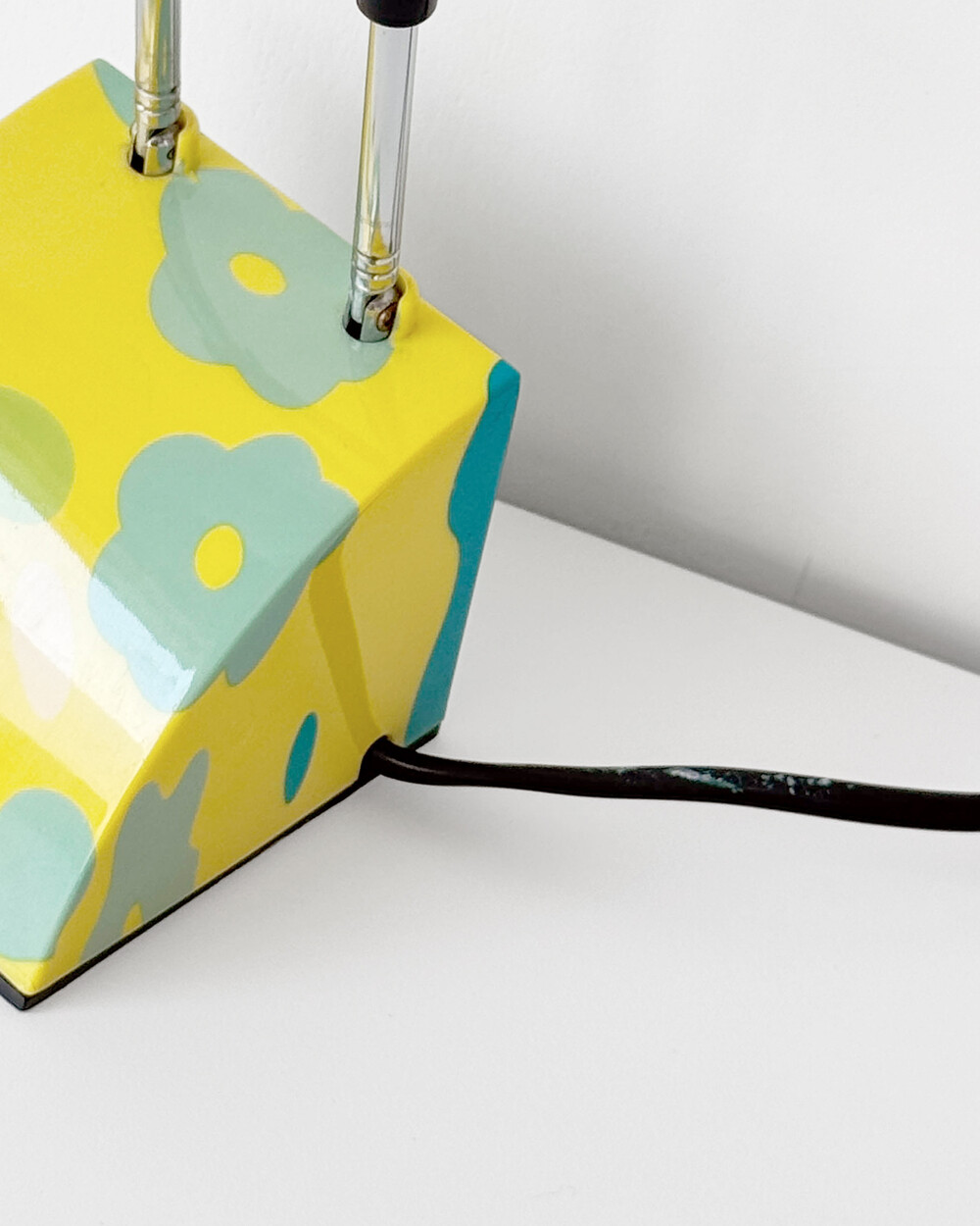 팝아트 무드의 플라워 패턴과 경쾌한 개성이 돋보이는 1980년대 독일 데스크 램프입니다