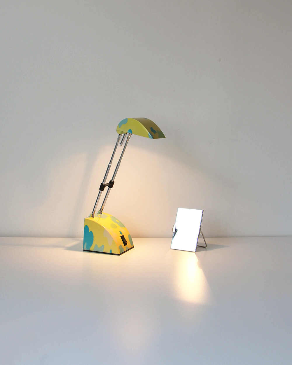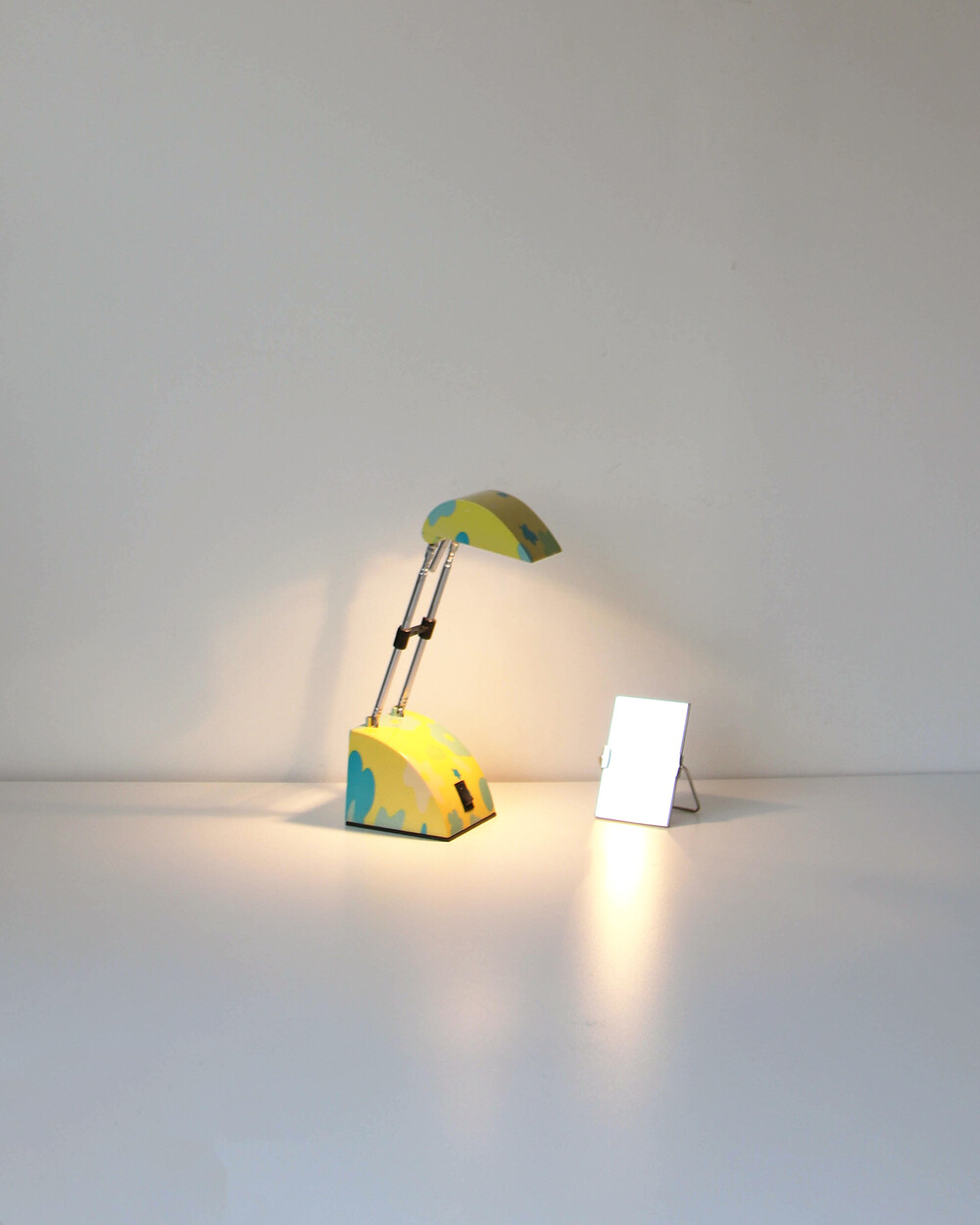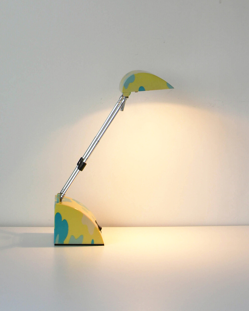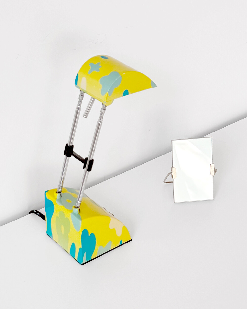 팝아트 무드의 플라워 패턴과 경쾌한 개성이 돋보이는 1980년대 독일 데스크 램프입니다