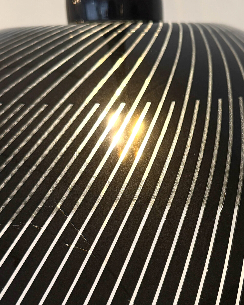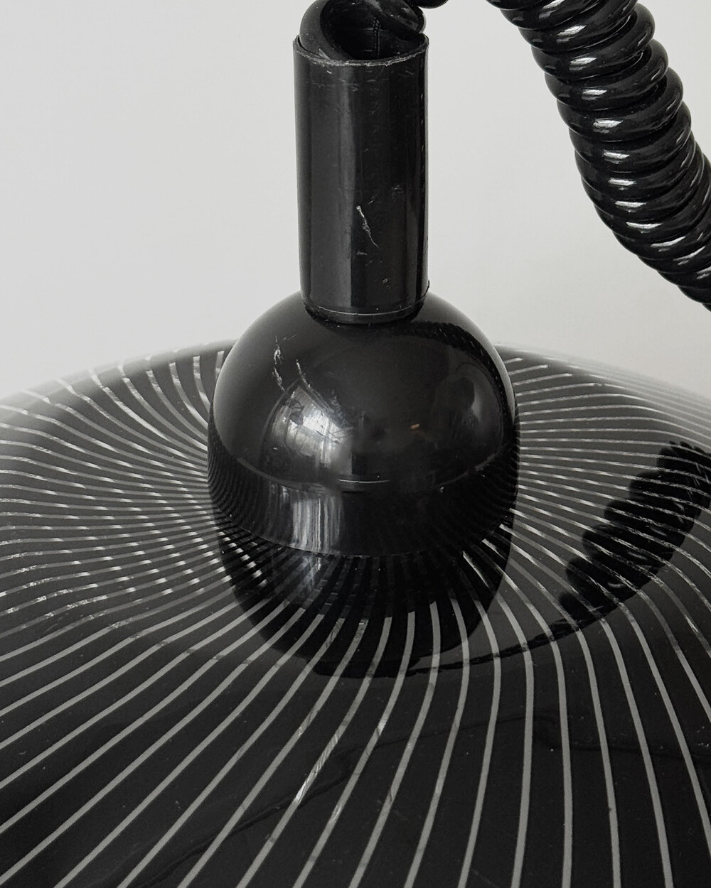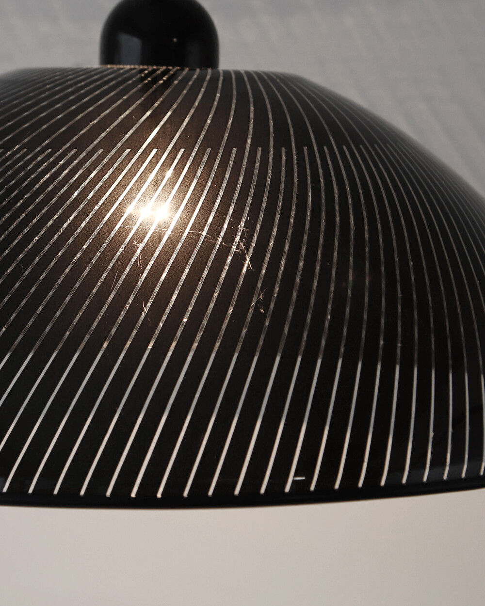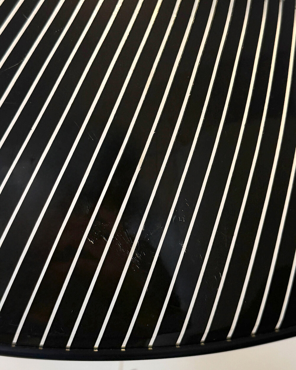 셰이드 윗 부분과 천장 캐노피는 블랙 컬러의 플라스틱 소재로 제작되었으며, 스크래치가 남아 있습니다.
