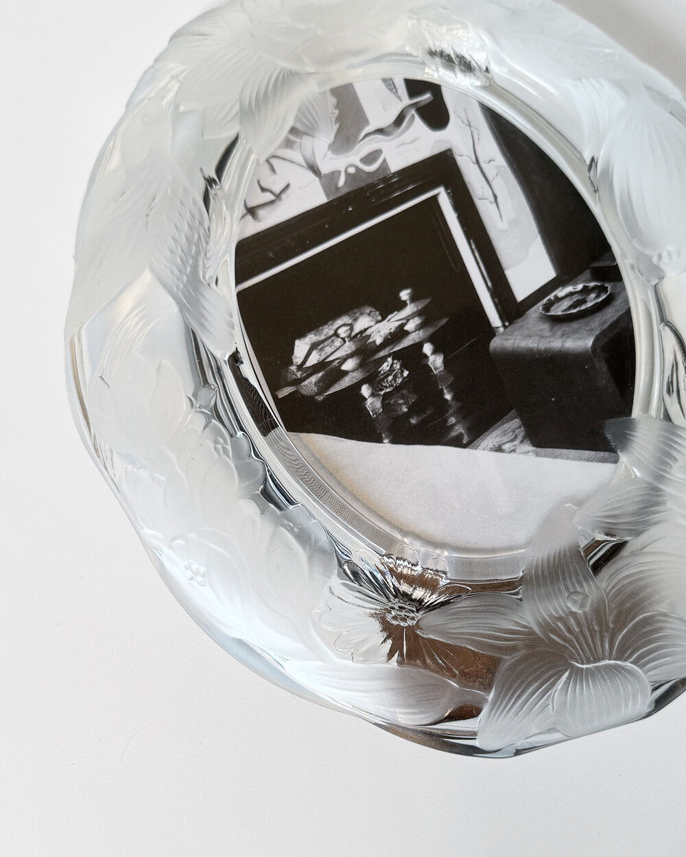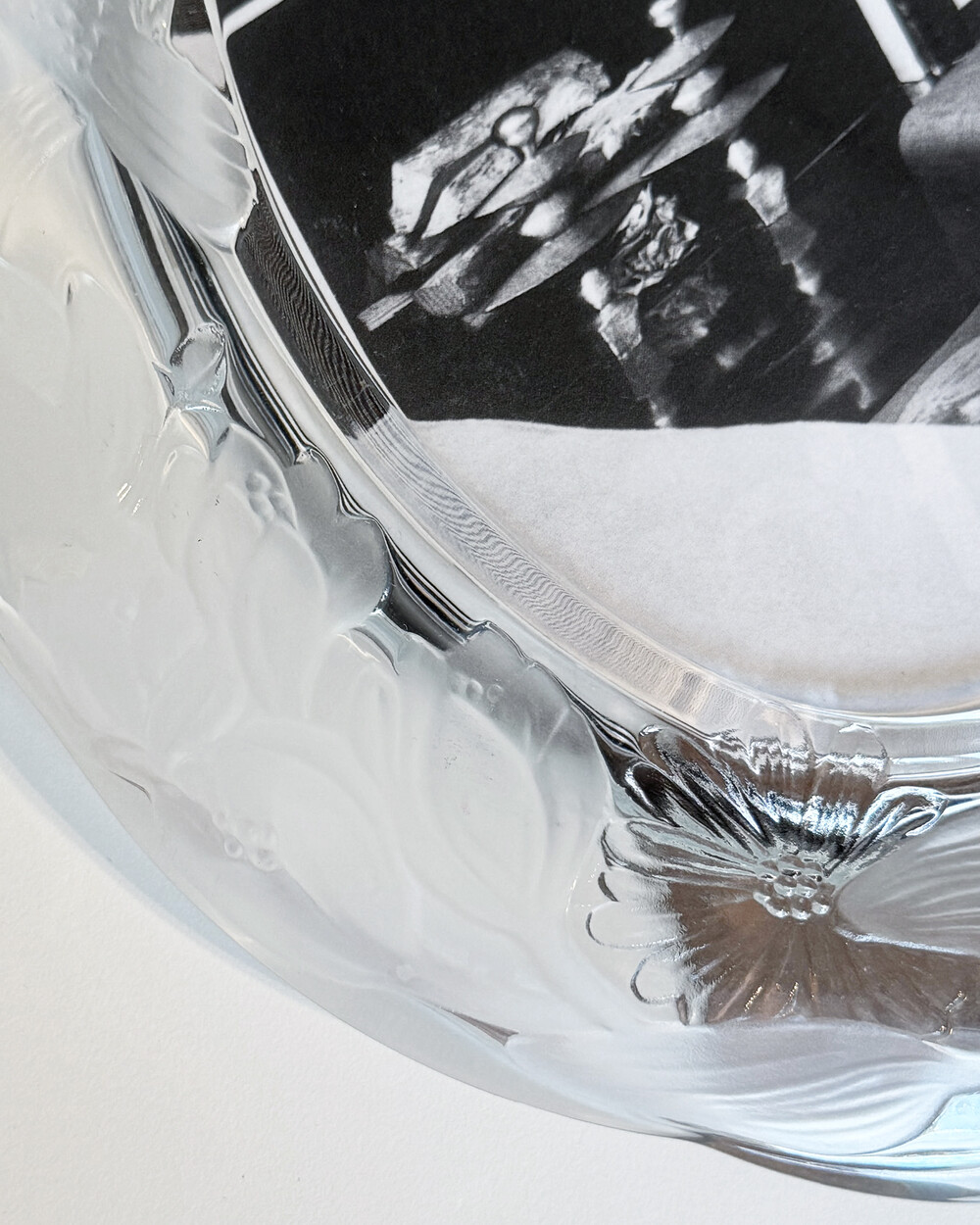 투명도 높은 견고한 크리스탈 글라스에 반무광으로 표현된 디테일이 빛에 따라 은은한 깊이감을 더합니다.