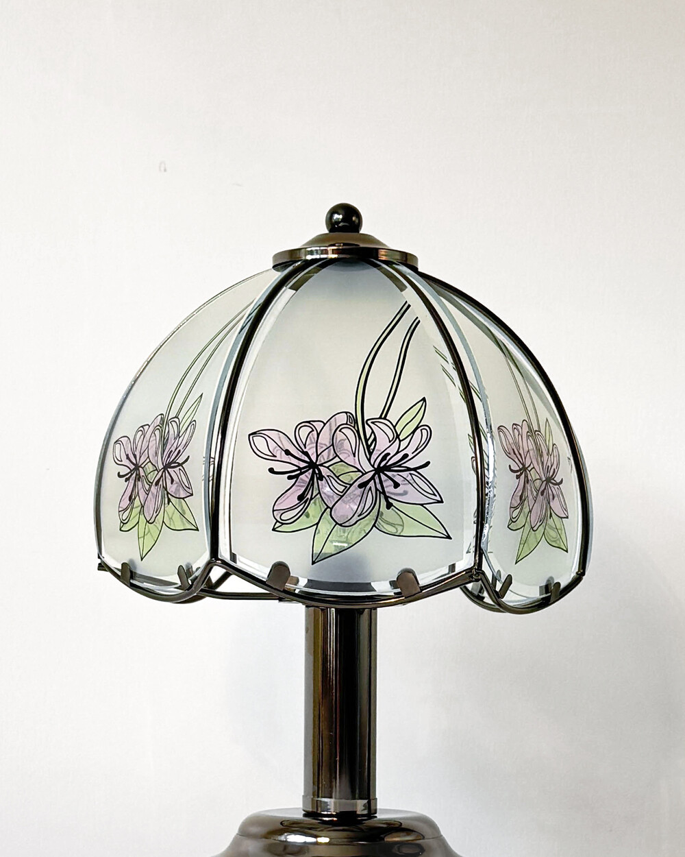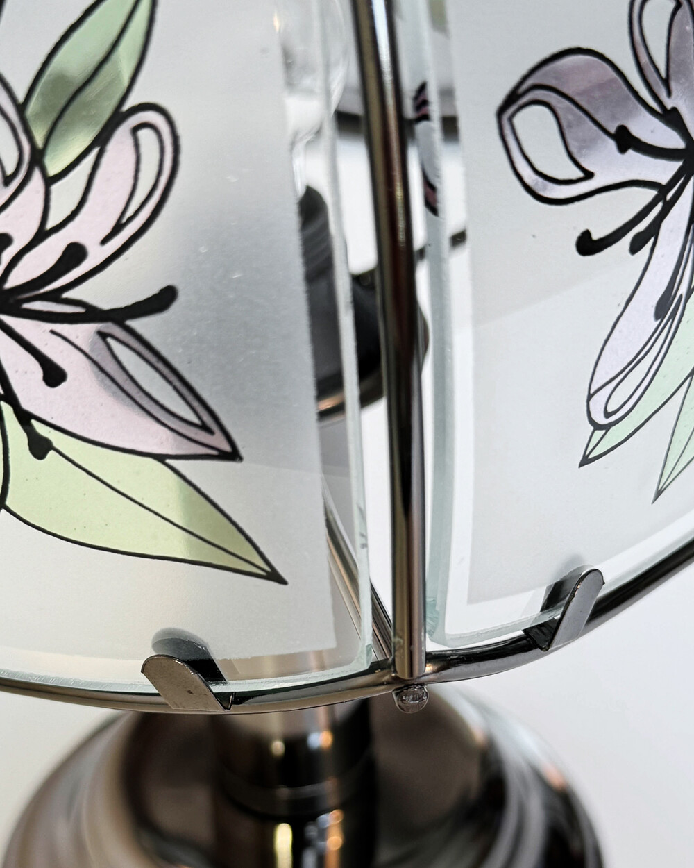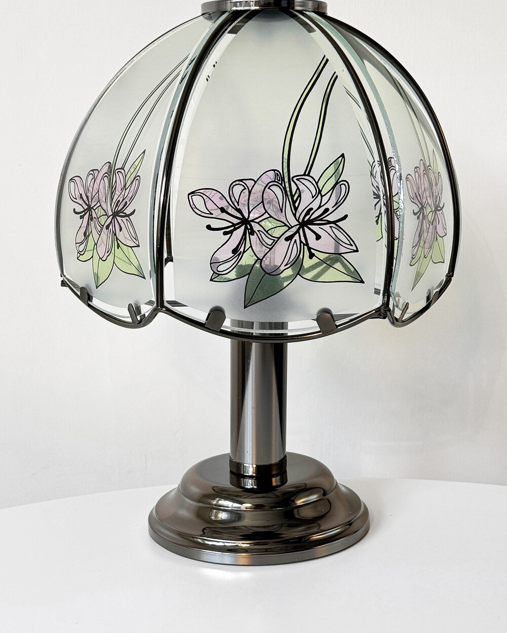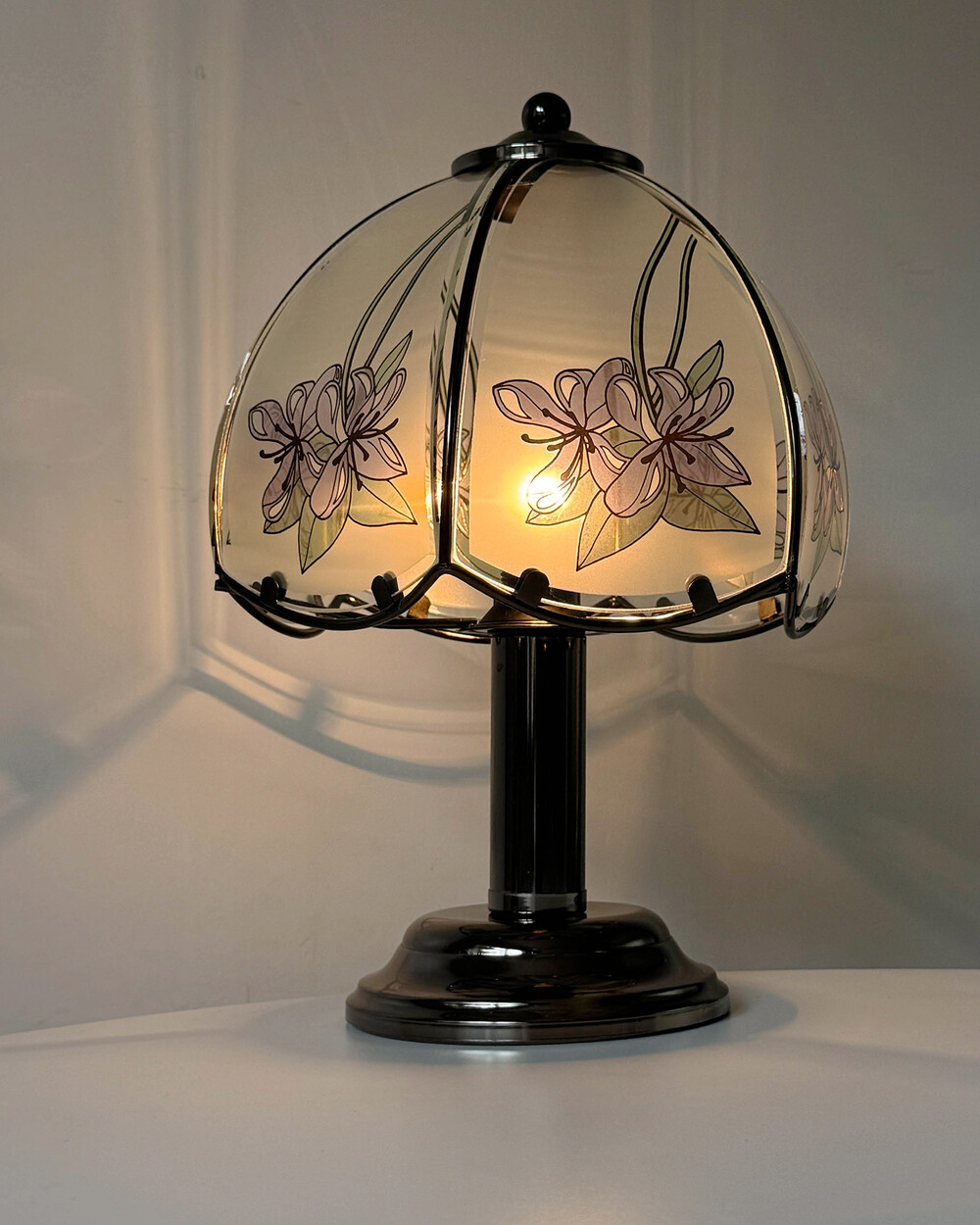 1980s Massive Floral Glass Panel Metal Table Lamp